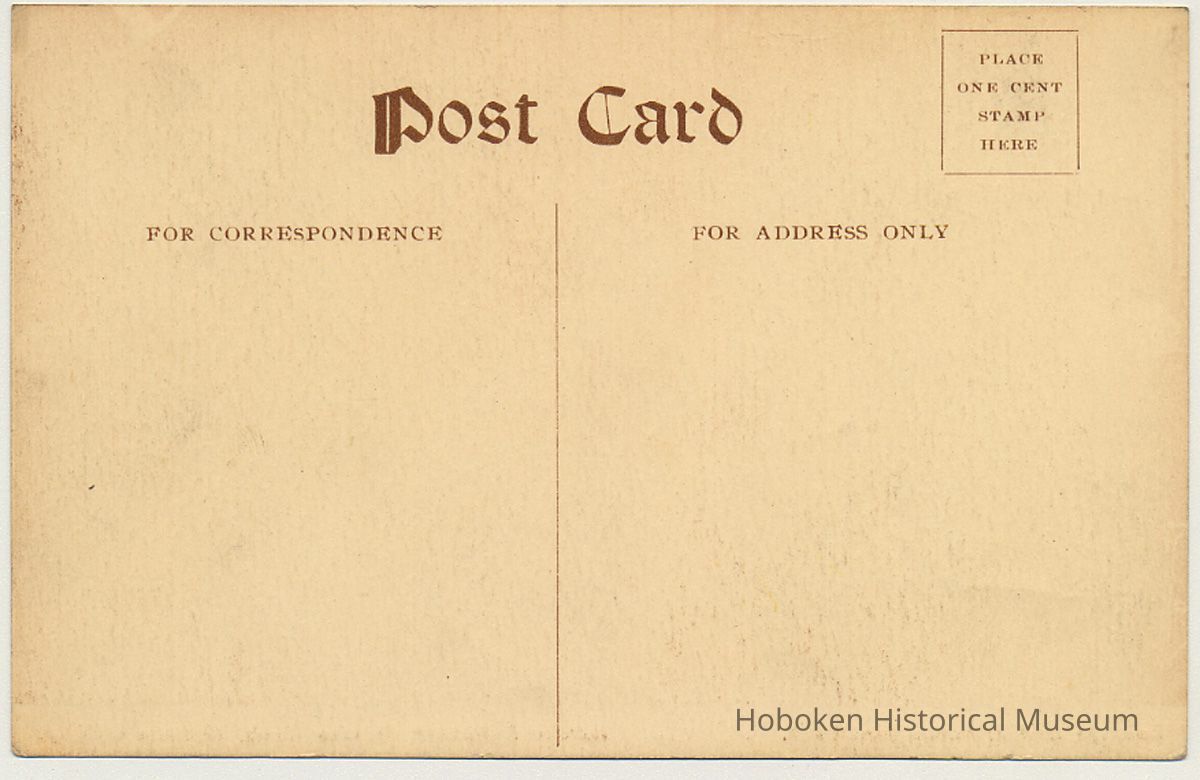 Postcard: photo view of the Lounge and Information Desk, Admiral Benson Service Club, Hoboken, N.J., no date, ca. 1918-1919. Divided back, unused. 3-11/16" high x 5-5/8" wide. One cent postage required.