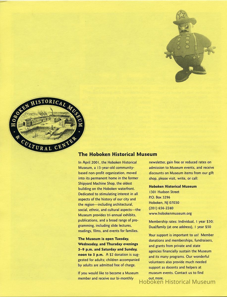 Brochure: Macy*s Studio, Hoboken, New Jersey. An Exhibit at the Hoboken Historical Museum. Nov. 15, 2001-Feb. 24, 2002.