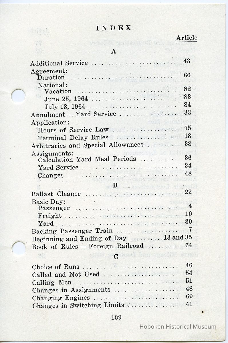 Notes: 2010.007.0002 Delaware, Lackawanna & Western Railroad Company. Rules of the Operating Department. Effective April 27, 1952. TABLE OF CONTENTS Order Putting Rules Into Effect 5 General Notice 6 General Rules 7 Definitions 12 Letter Symbols Used as Signs 18 Operating Rules: Standard Time 19 Timetables 20 Signals: Color Signals 22 Hand, Flag and Lamp Signals 23 Engine Whistle Signals 27 Communicating Signals...29 Train Signals 30 Use of Signals 39 Superiority of Trains 41 Movement of Trains and Engines 41 Instructions on Rule 99 48 Rules for Movement of Trains by Train Order 69 Forms of Train Orders: Fixed Meeting Point for Opposing Trains---------------- 80 Directing a Train to Pass or Run Ahead of Another Train Giving Right Over an Opposing Train 81 Giving Right Over Another Train in the Same Direction 82 Time Orders 83 For Sections 84 Extra Trains 86 Work Extra 86 Holding Order 89 Annulling a Schedule or a Section 89 Annulling an Order 90 Annulling Part of an Order 90 Superseding an Order or a Part of an Order 90 Issuance of a New Timetable ..91 Providing for a Movement Against the Current of Traffic 91 Providing for the Use of a Section of Two Tracks or More Tracks as Single Track 92 Clearance Form "A" 93 Clearance Form "B" 94 Train Order Blank "19" 95 Rules Governing the Movement of Trains or Engines with The Current of Traffic on Two or More Tracks by Block Signals 96 Rules Governing the Movement of Trains or Engines on Reversible Tracks by Block Signals 97 Rules Governing Movements in Centralized Traffic Control (CTC) Territory 98 Fixed Signals 101 Automatic Block System Rules 122 Automatic Block System Rules, Enginemen and Trainmen 122 Absolute Permissive Block System 123 Preliminary-Overlap Block System 124 Position Light Telephone Train Order Signal 124 Automatic Block System Rules, General 125 Automatic Cab Signal Rules 127 Dual Control Switches 130 Electrically Locked, Hand Operated Switches 132 Interlocking Rules: Emergency Signals at Interlocking Stations and Other Designated Points (Whistle or Horn) 133 Operators 134 Engine and Train Crews 140 Signal Maintainers 143 Additional General Rules: Air Brakes 144 Regulating Steam Heat and Air Conditioning on Passenger Trains 149 Personal Injuries 152 Hours of Service 155 Railroad Radio Communication 156 Highway Grade Crossing Protection 159 Temporary Slow Order 161 Permanent Slow-Speed Signs 162 Special Protection of Trains, Bridges, Wires and Tracks 163 General Regulations for Employees: Transportation Department: Trainmasters 165 Road Foremen of Engines 165 Chief Train Dispatchers 166 Train Dispatchers 166 General Yardmasters 167 Yardmasters and Assistant Yardmasters 168 Stationmasters 168 Station Agents 169 Towermen and Operators 171 Conductors and Switch Foremen 174 Passenger Conductors 176 Freight Conductors and Switch Foremen 177 Train Baggagemen 180 Trainmen and Flagmen 180 Enginemen and Firemen 182 Switchmen and Switchtenders 185 Car Inspectors 186 Maintenance of Way and Structures Department- General 189 Roadmasters 191 Track Foremen 193 General Foremen of Bridges and Buildings 194 Bridge and Building Foremen 195 Signal Department: Signal Supervisors 196 Assistant Signal Supervisors 197 Signal Foremen 197 Electrical Department: Division Electrical Supervisors 198 Electric Traction Catenary Supervisor 198 Electric Traction Power Dispatchers 199 Electric Traction Substation Supervisor 200 Engineer of Communication 201 Telegraph and Telephone Foremen 201 Status: OK Status By: dw Status Date: 2015-06-01