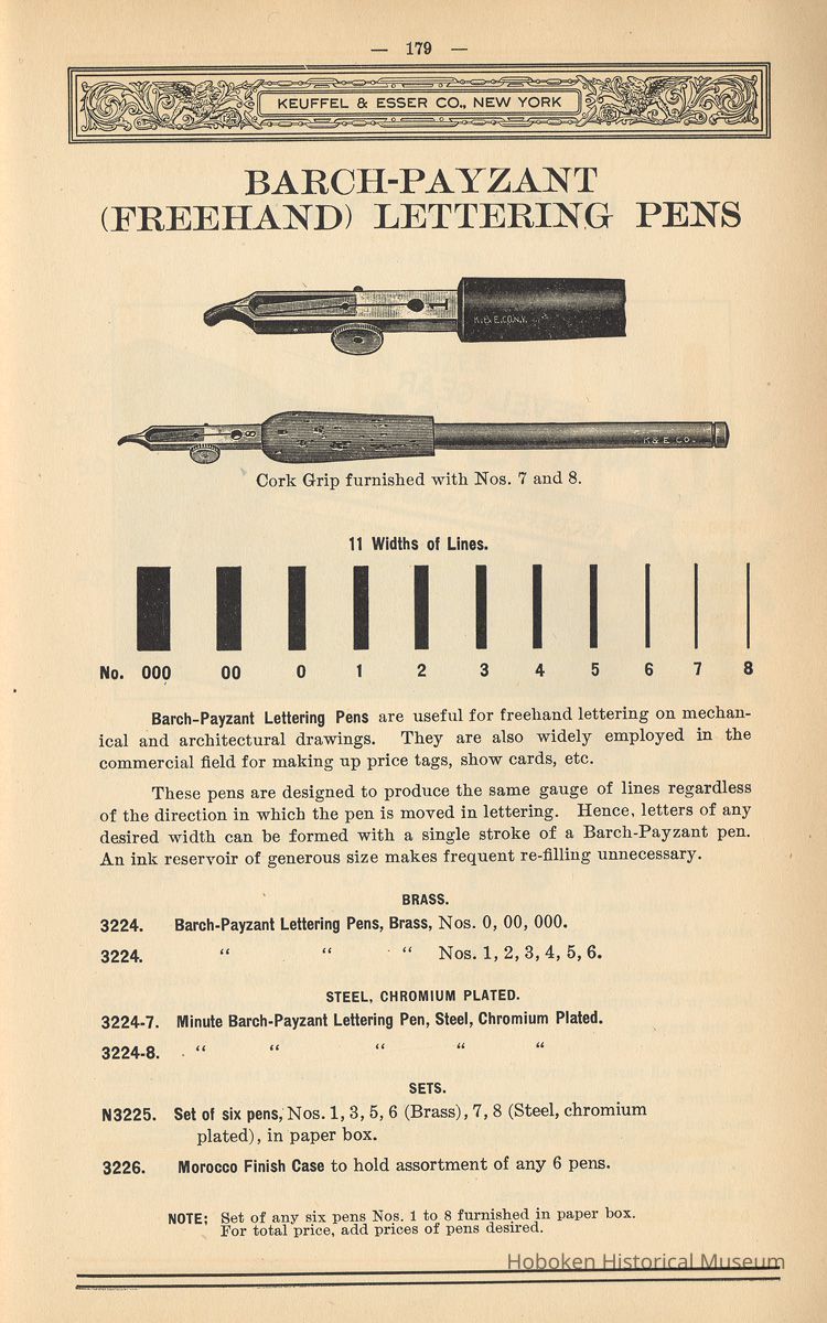 These ink pens were typically intended for "freehand lettering on mechanical and architectural drawings. They are also widely employed in the commercial field for marking up price tags, show cards, etc."