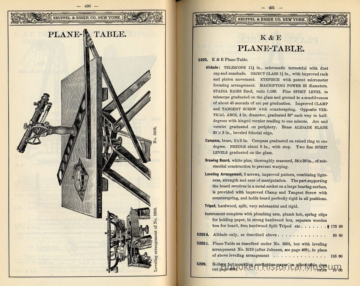 Also known as a high-post alidade. This model was the least expensive of the three offered in the 35th edition catalog of 1915. It is depicted and described on pages 400-401 of that catalog.
