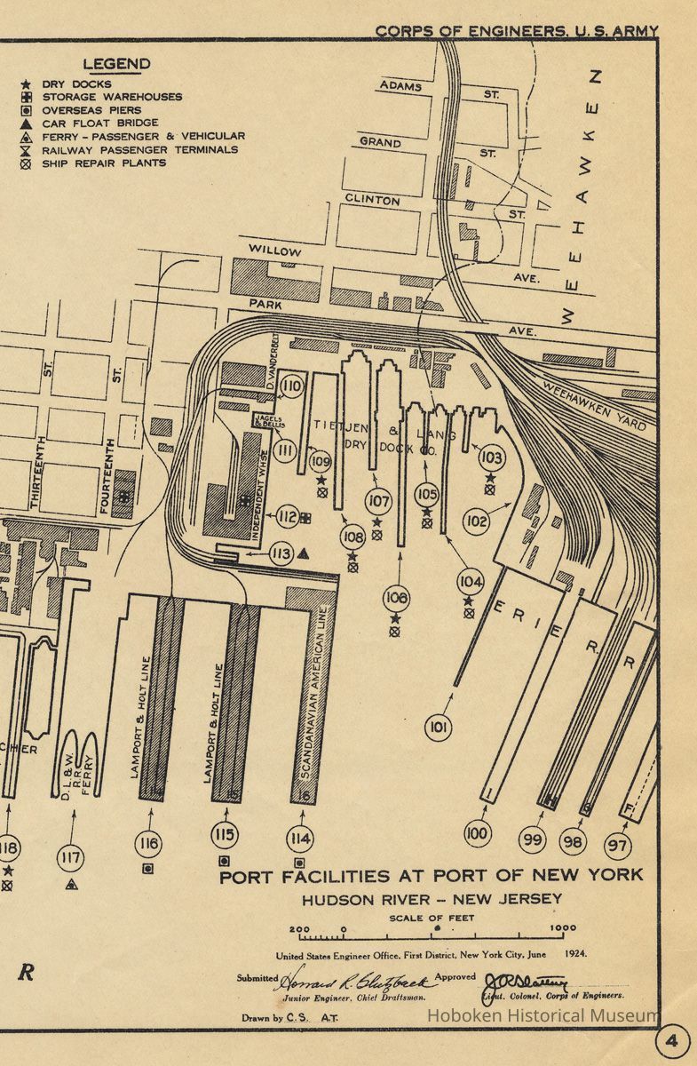 Map: Hoboken port facilities, U.S. Army Corps of Engineers, June 1924.