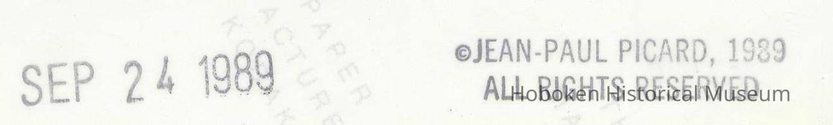 Color photo of Bloomfield Street looking north to Ninth Street, Hoboken, September 24, 1989. 4" x 5-3/4" wide print. Reverse has photographer's copyright stamp and a date stamp. Photograph by Jean-Paul Picard.