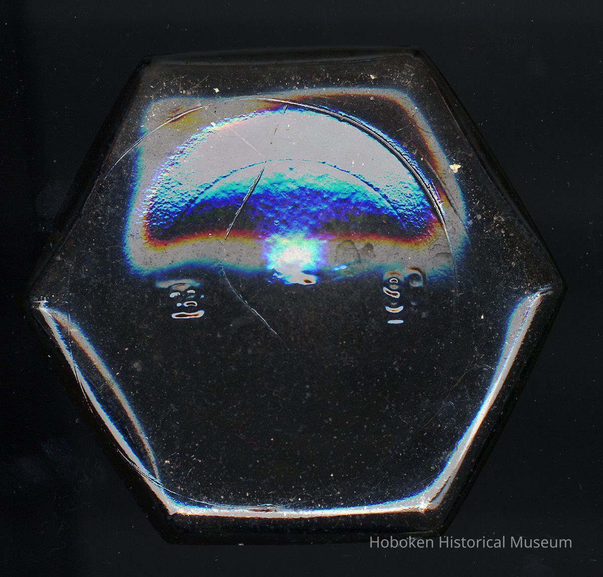 This bottle, made for retail packaging and distribution, is believed to be from the period when the Log Cabin Products Division of General Foods which was based in Hoboken (beginning in 1926 or 1927.)