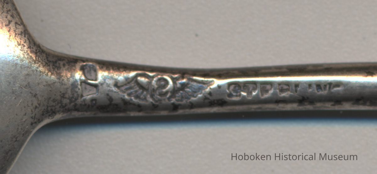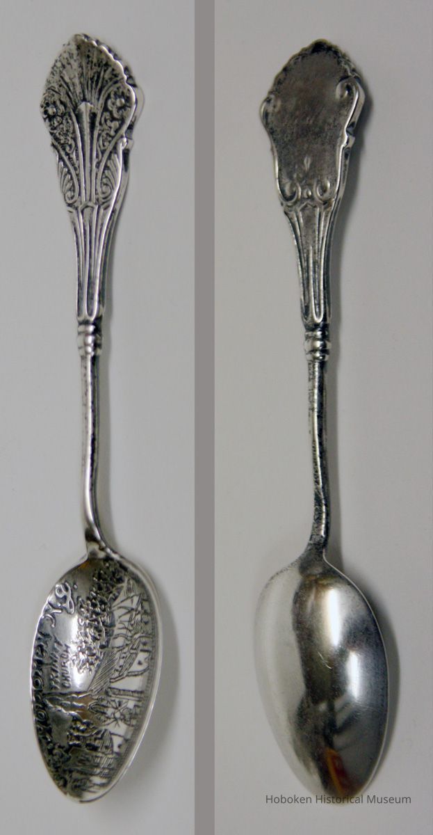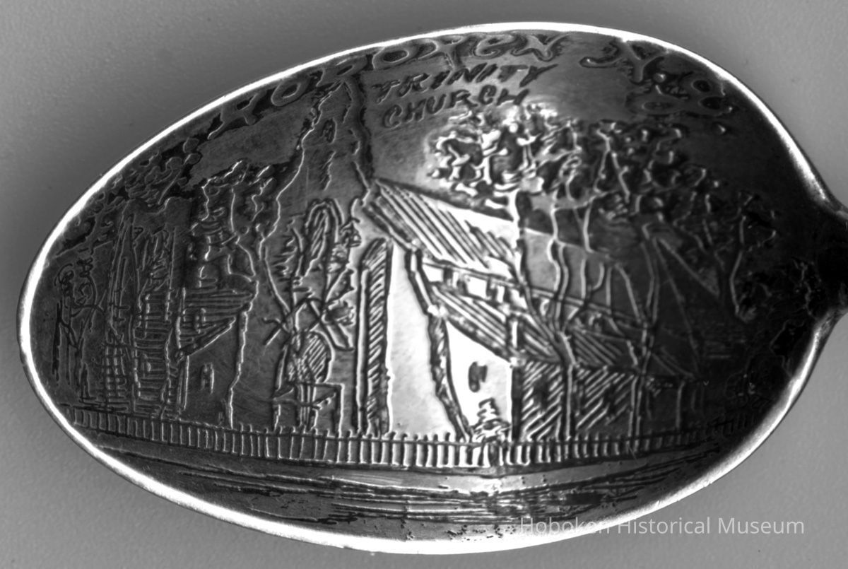 Spoon, sterling silver souvenir, depicting Trinity Church, Hoboken,ca. 1890-1905.