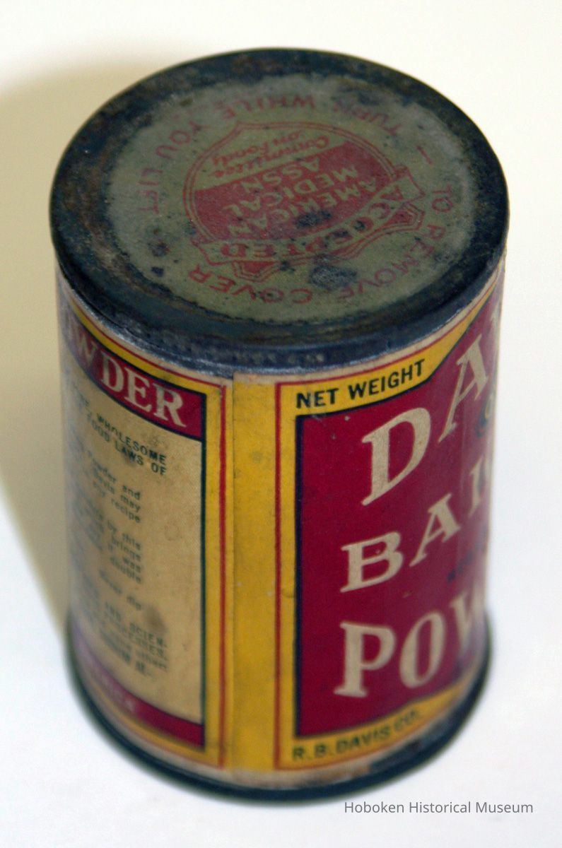 Can: Davis OK Baking Powder. 3 oz. R. B. Davis Co., Hoboken, n.d., ca. 1931-1936.