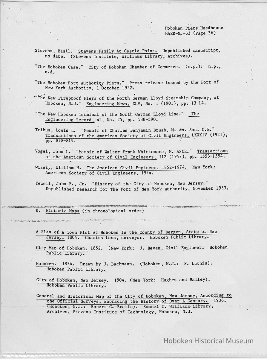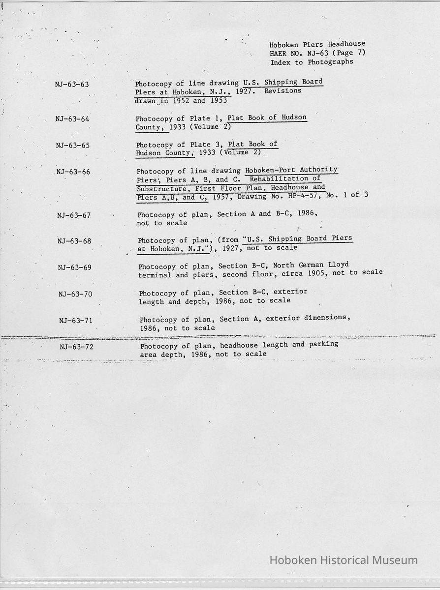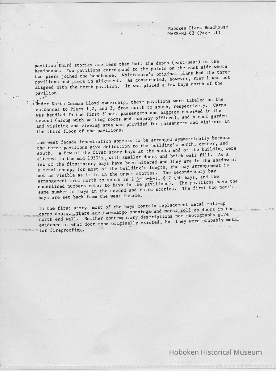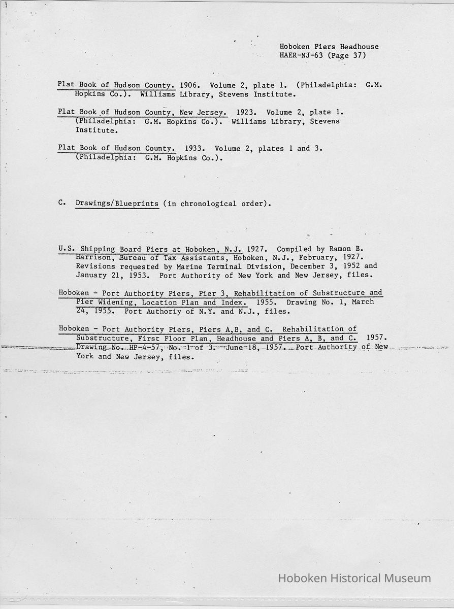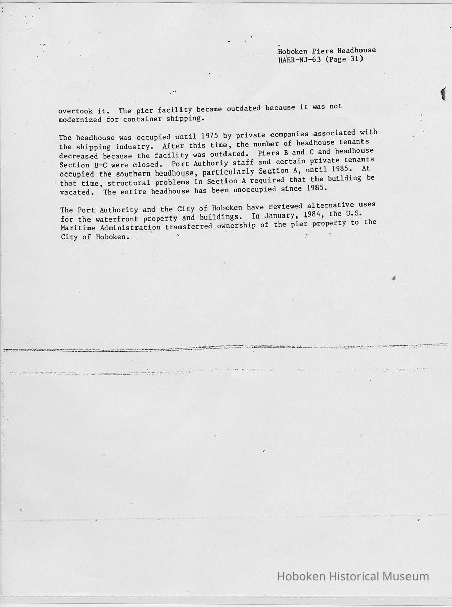 Report: Historic American Engineering Record: Hoboken Piers Headhouse. HAER - NJ - 63. Ca. 1986.