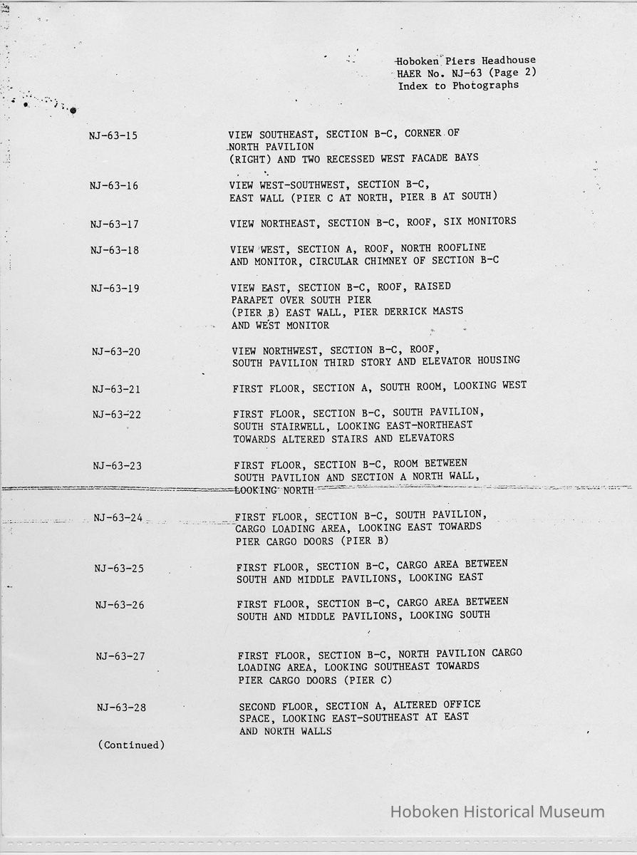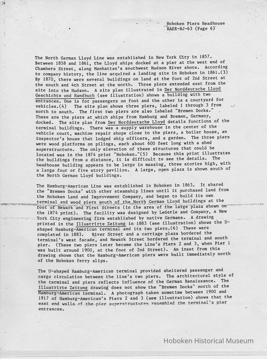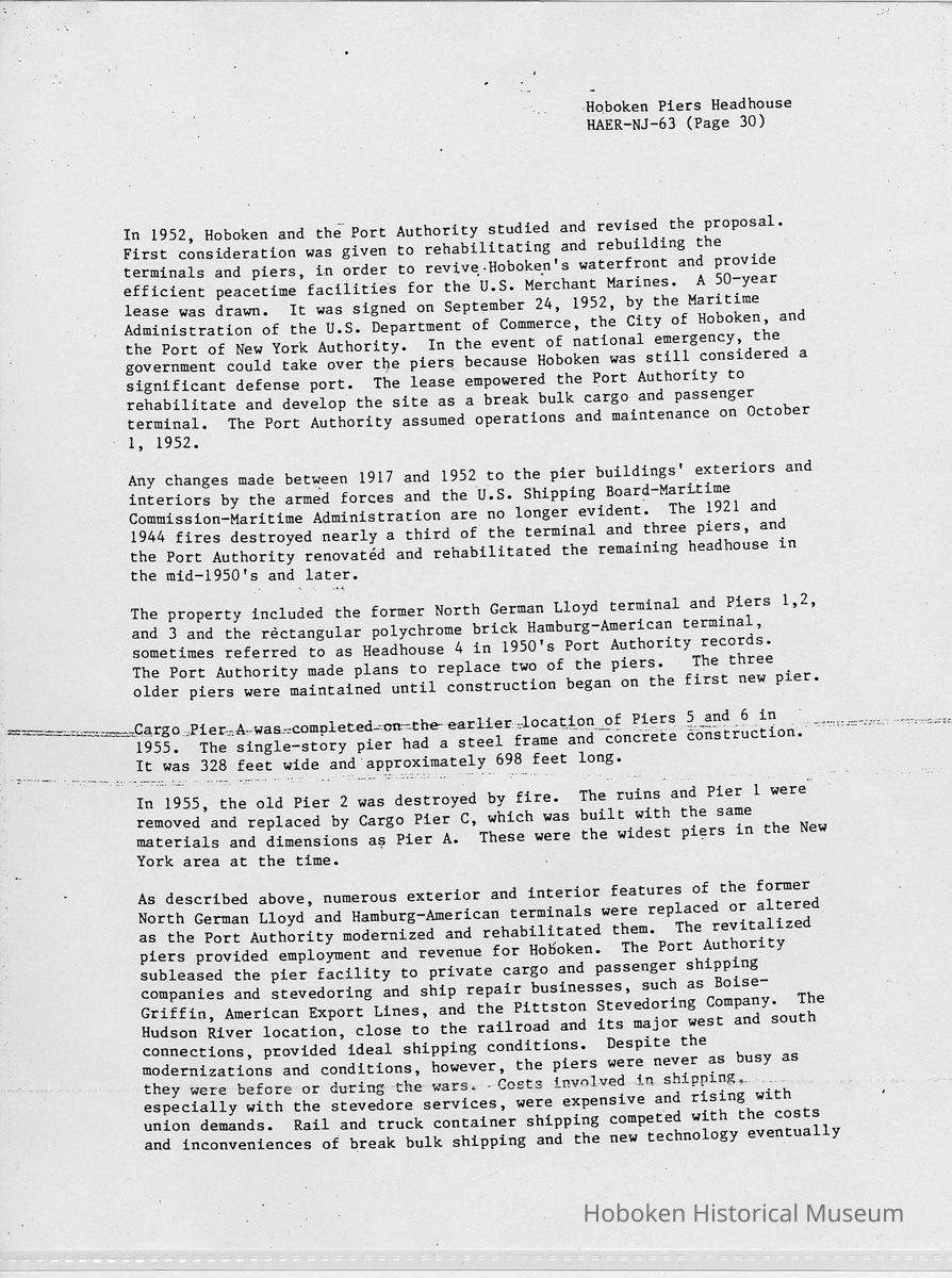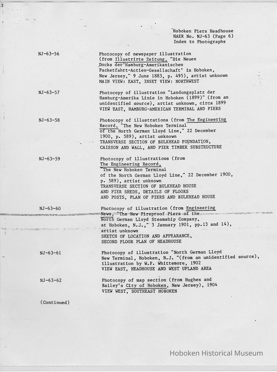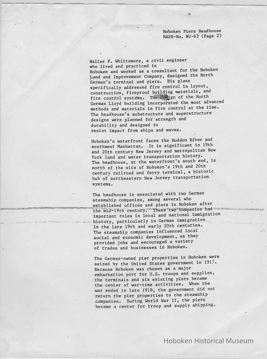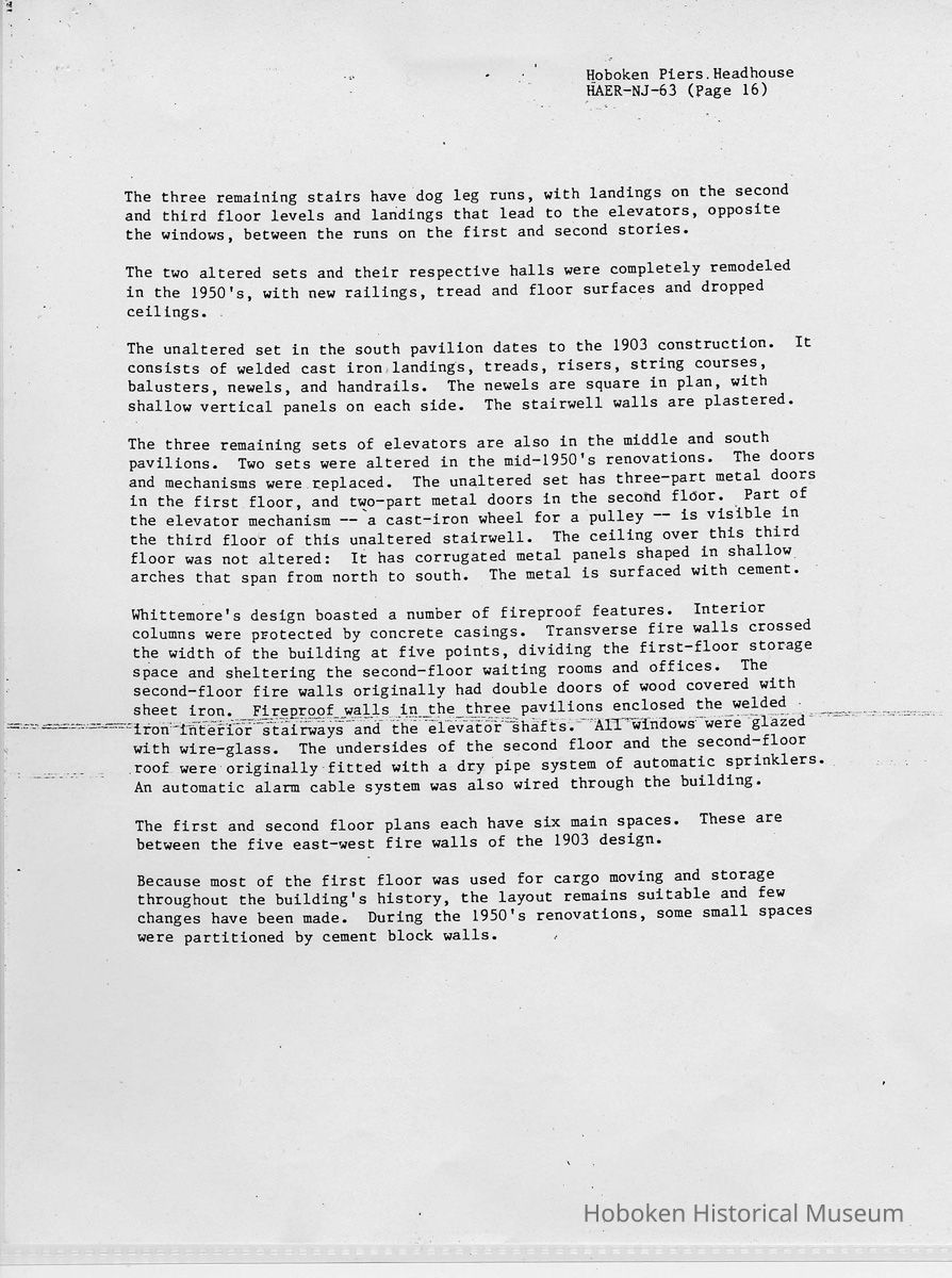 Report: Historic American Engineering Record: Hoboken Piers Headhouse. HAER - NJ - 63. Ca. 1986.