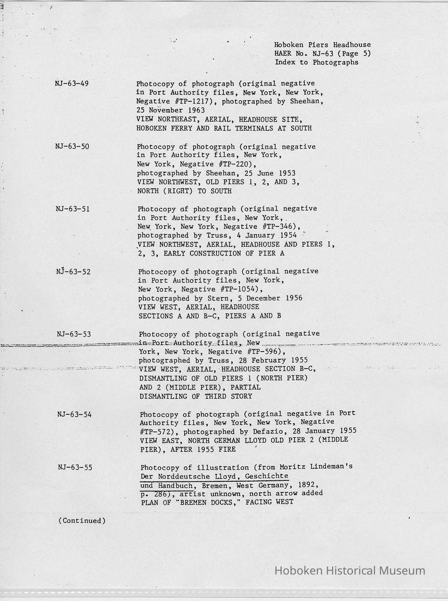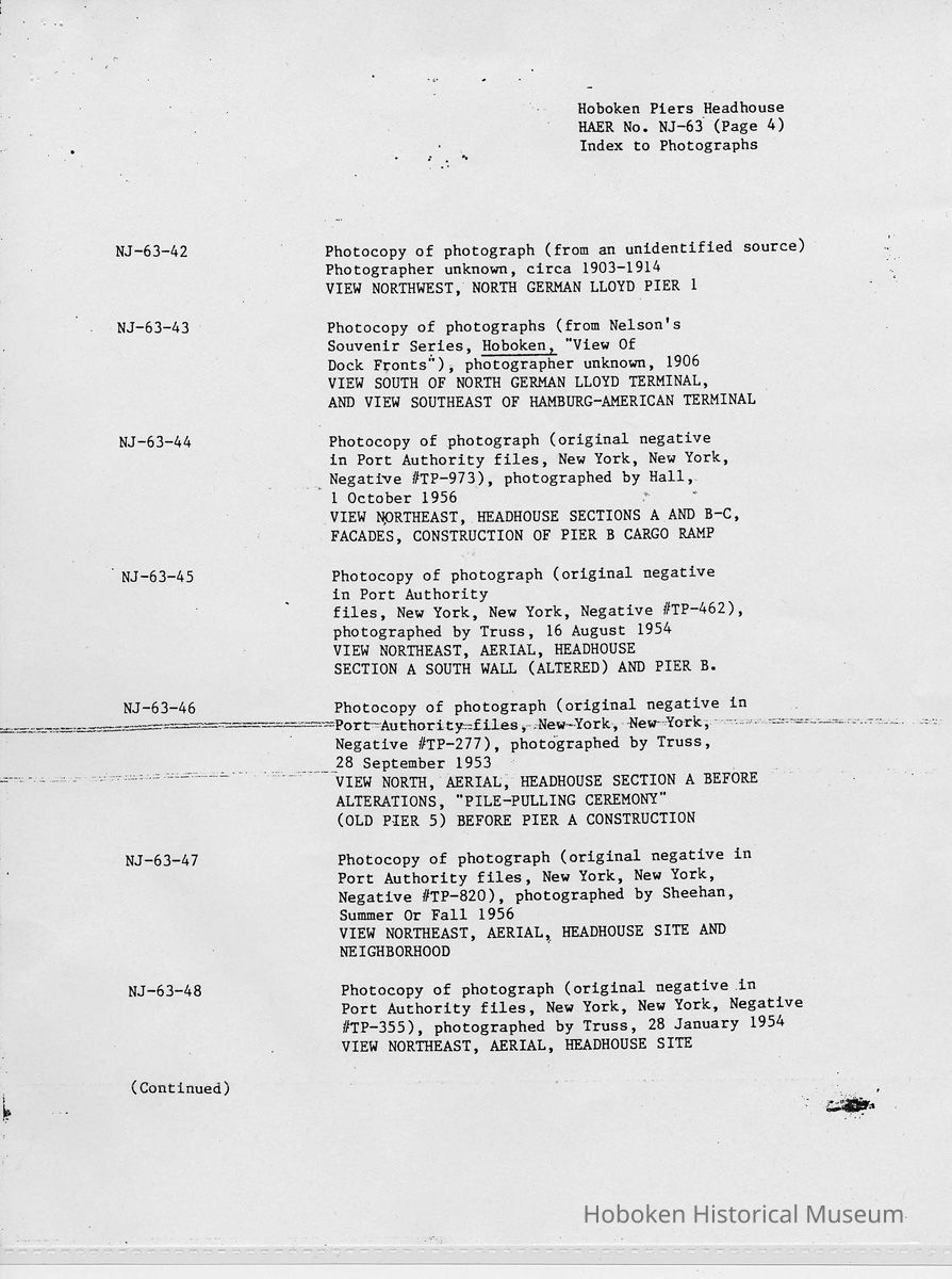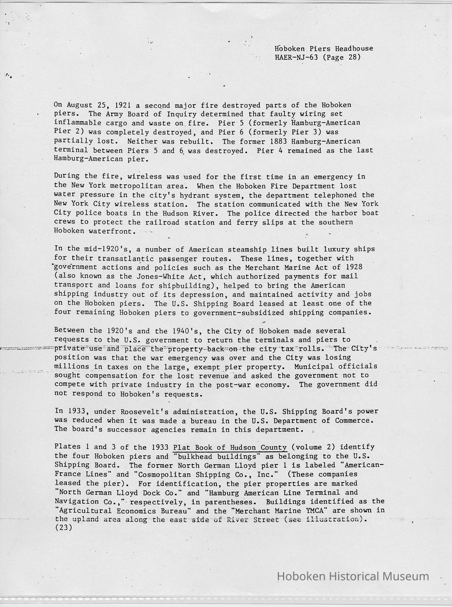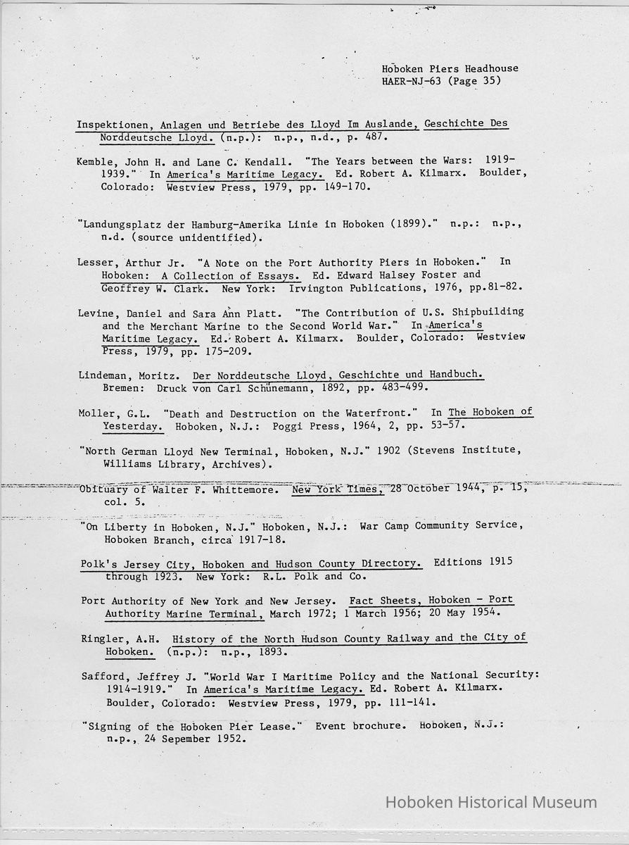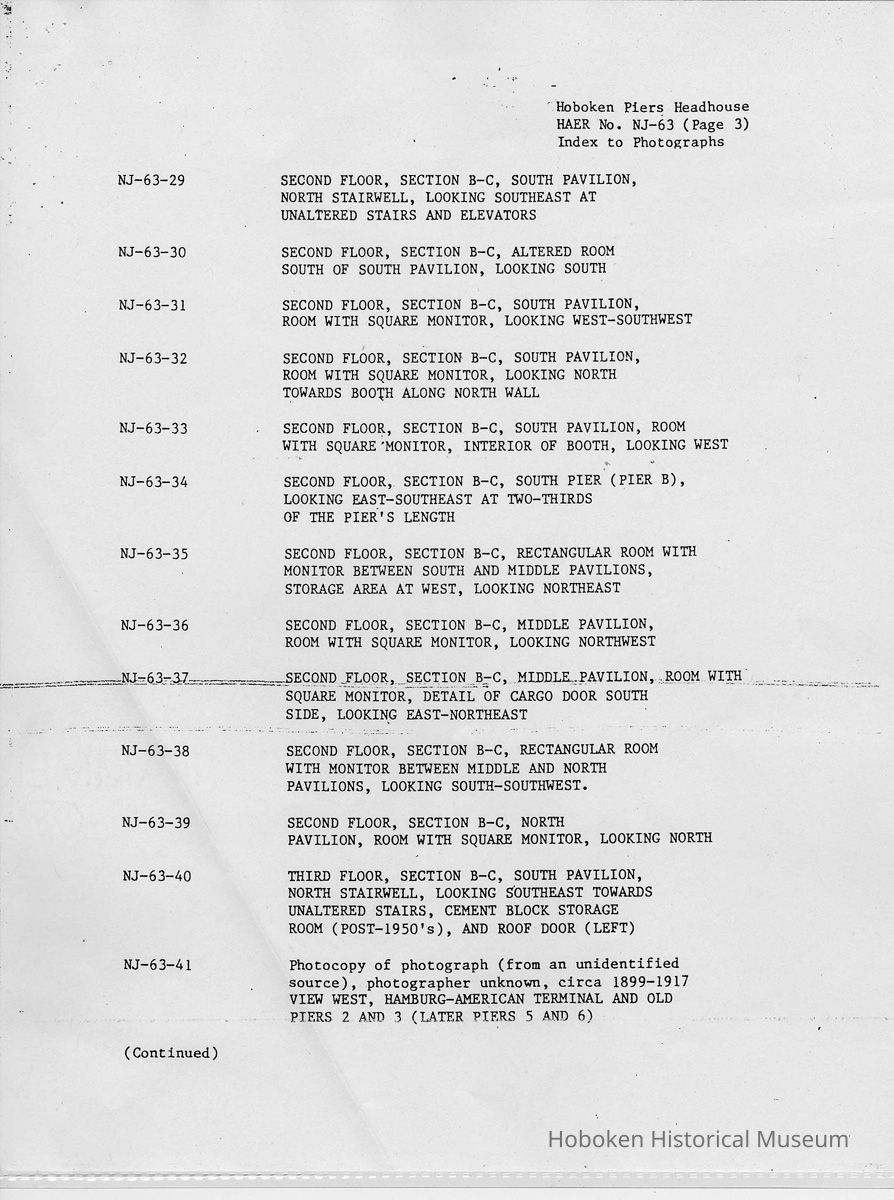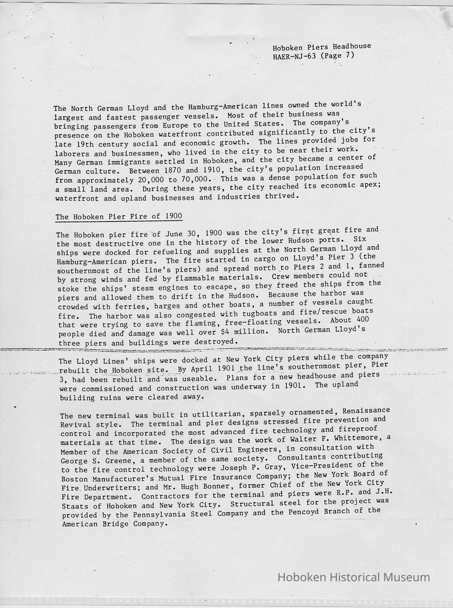 Report: Historic American Engineering Record: Hoboken Piers Headhouse. HAER - NJ - 63. Ca. 1986.