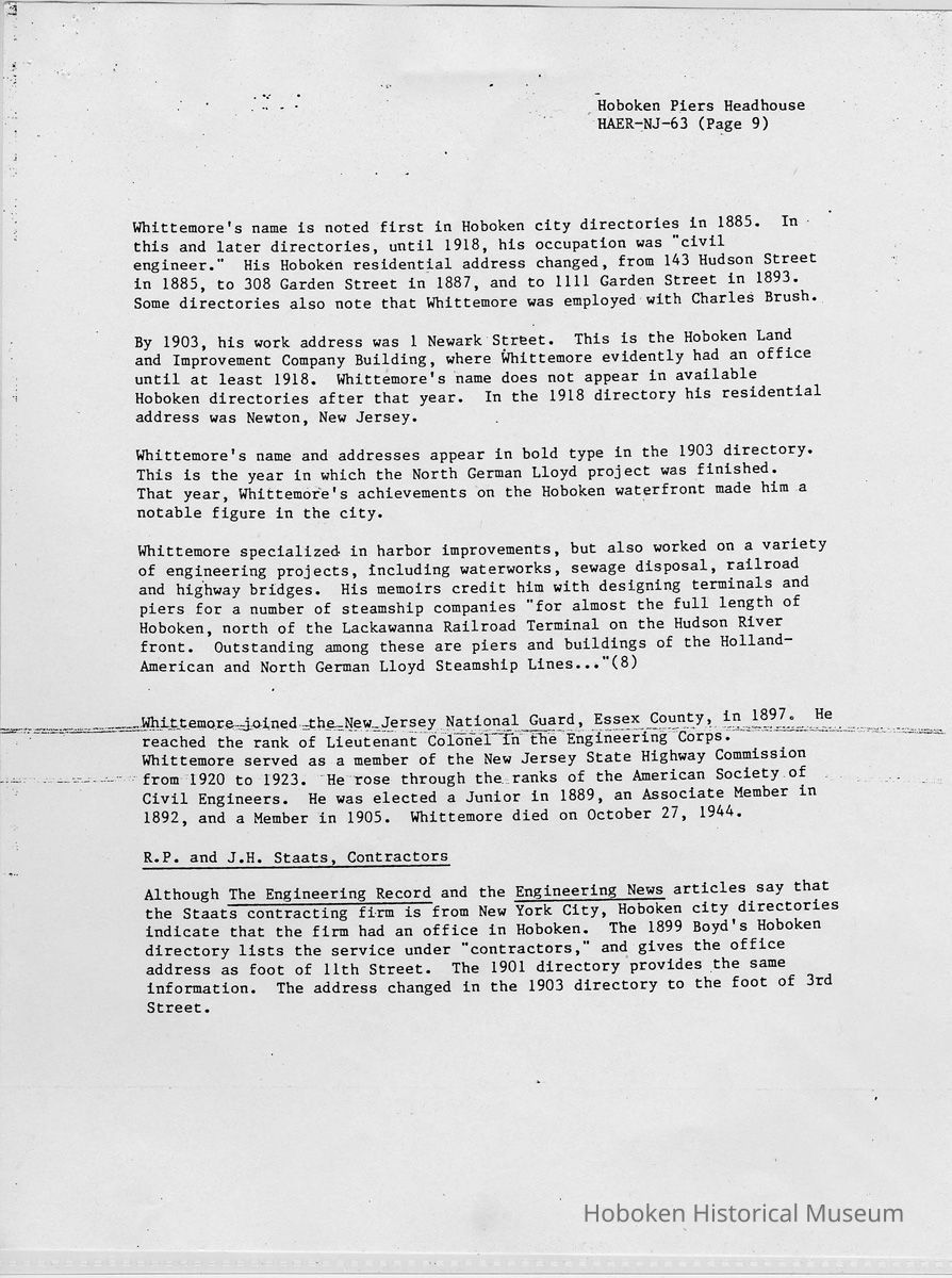 Report: Historic American Engineering Record: Hoboken Piers Headhouse.