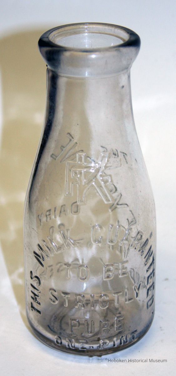 Bottle, milk: The Keystone Dairy Co., New York, Brooklyn, Hoboken, N.J. 1 pint. N.d., ca. 1950-1960.