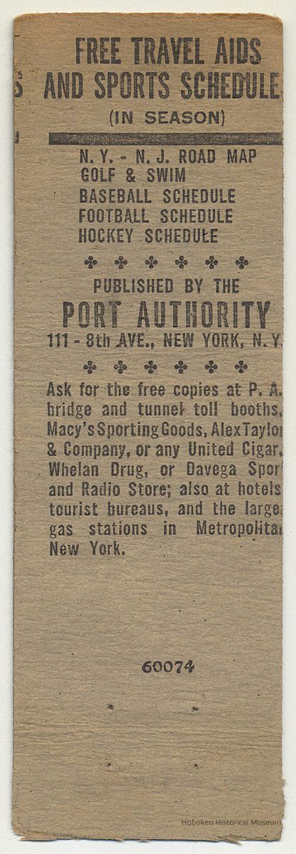 Ask for free copies at P.A. bridge and tunnel toll booths, Macy's Sporting Goods, Alex Taylor & Company, or any United Cigar, Whelan Drug, or Davega Sports and Radio Store; also at hotels, tourist bureaus, and the larger gas stations in Metropolitan New York.