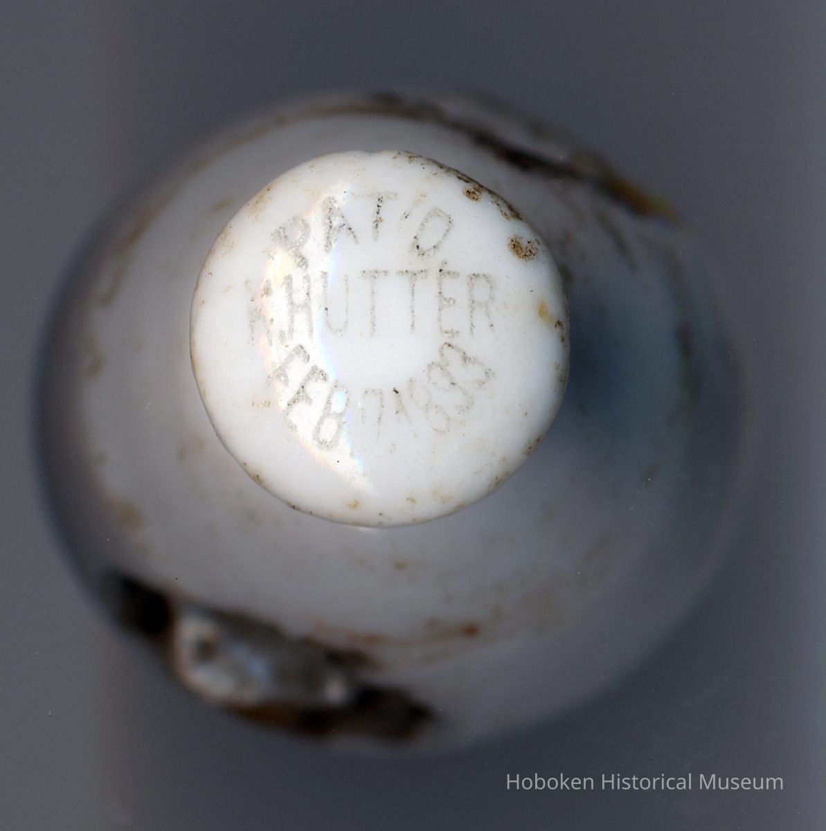 Stopper, beer bottle, ceramic: Chas. Weinacht, Hoboken, N.J. N.d., ca. 1894-1910.