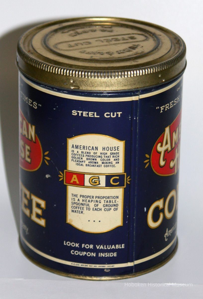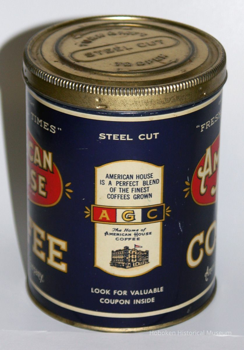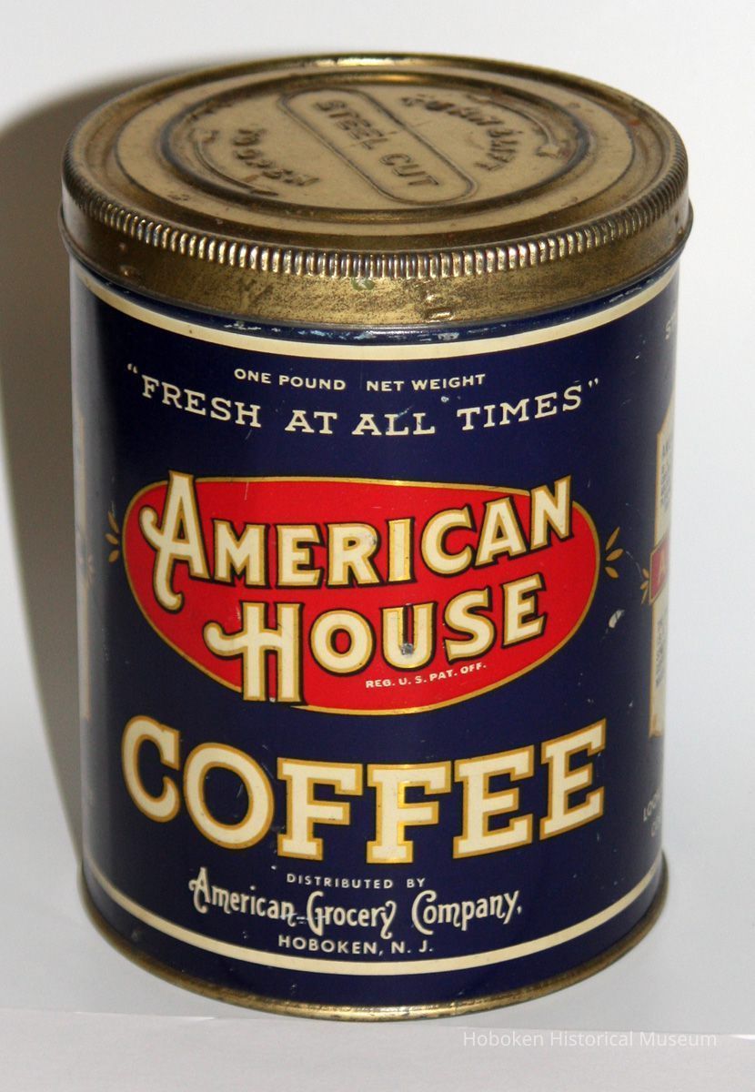 Can: American House Coffee. Distributed by American Grocery Company, Hoboken, N.J. 1 lb. can. N.d., ca. 1927-1940.