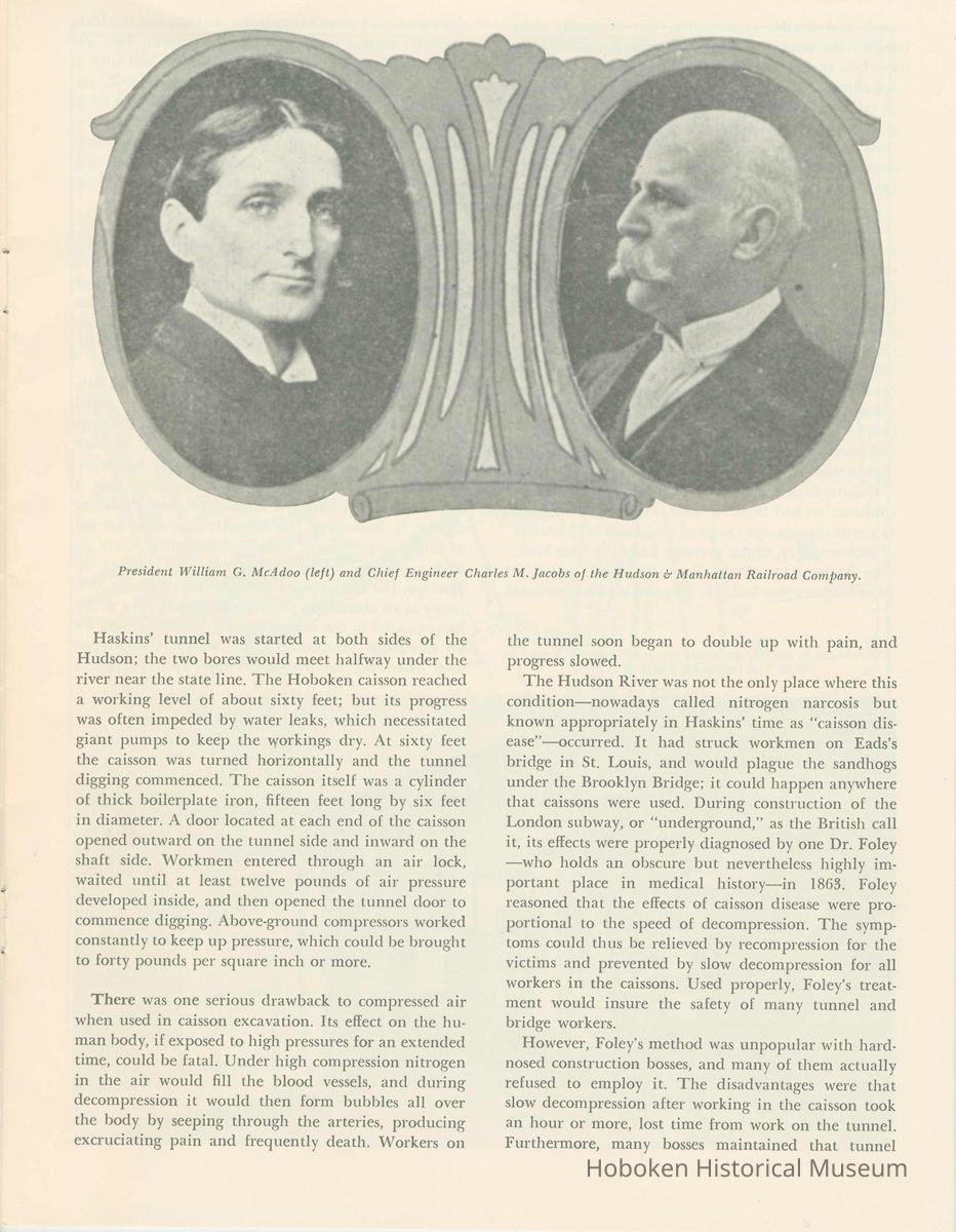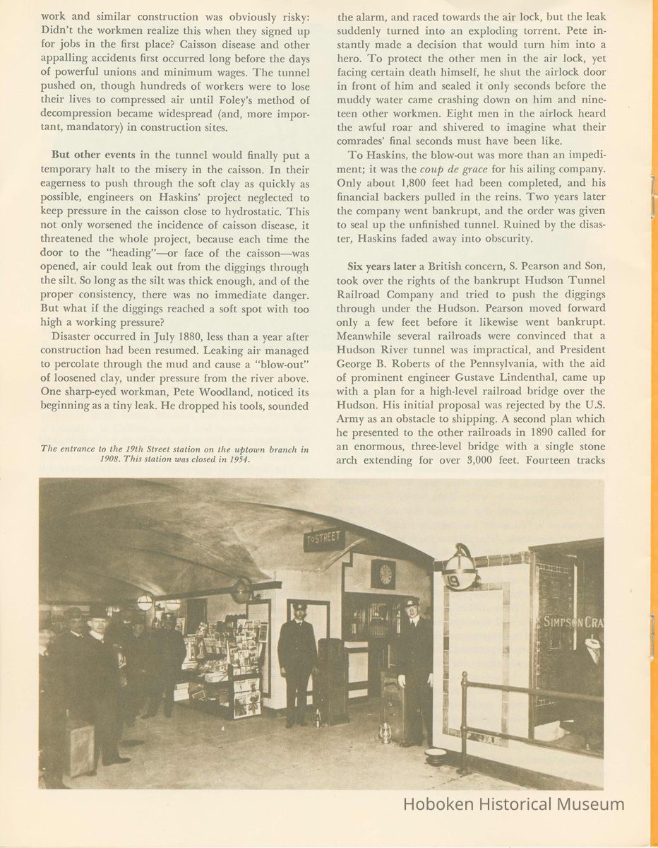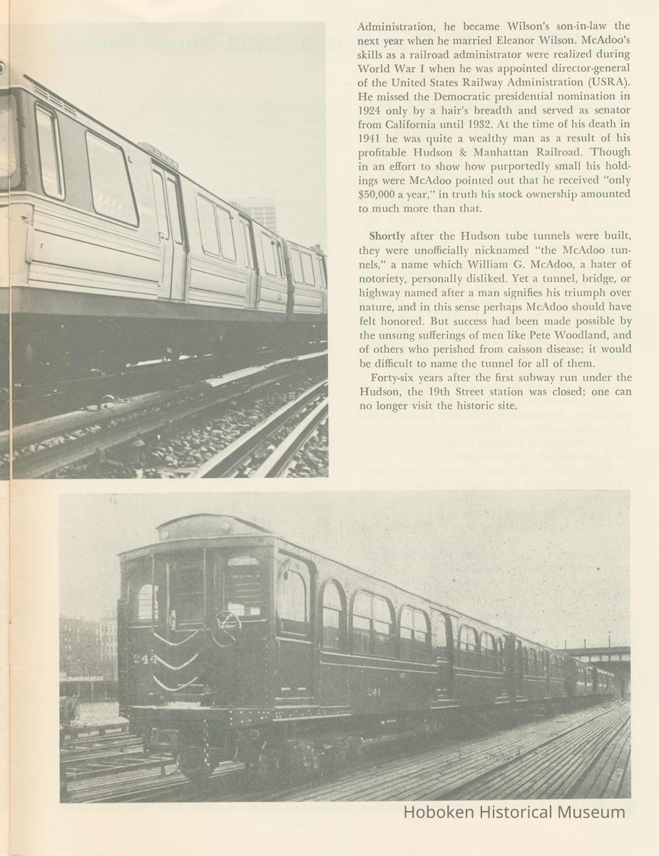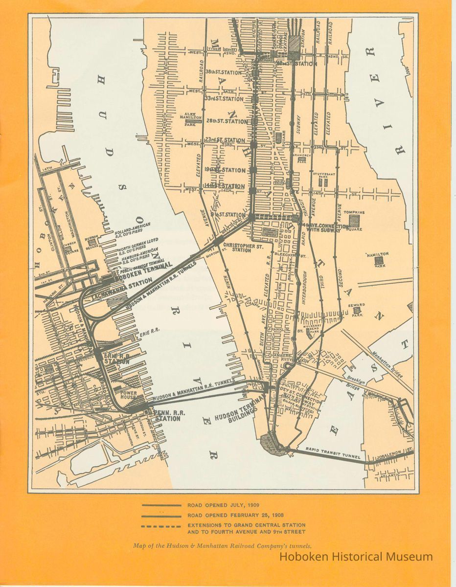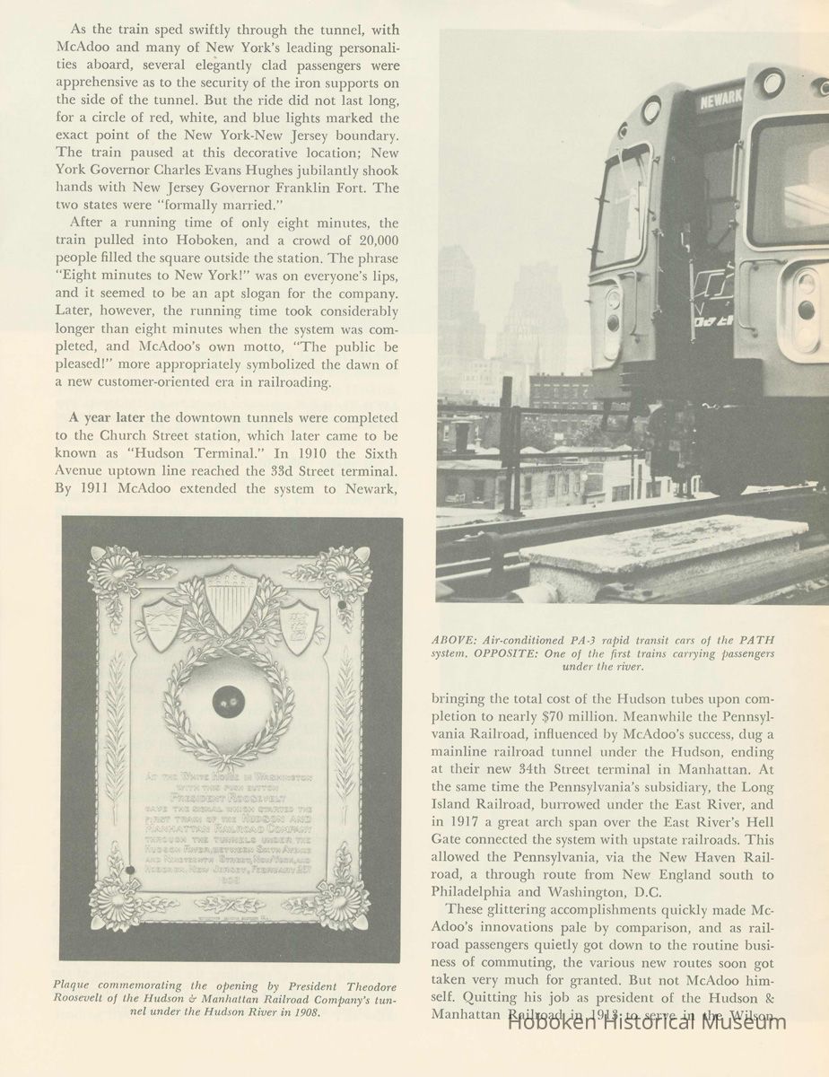 Eight Minutes to New York. The Story of the Hudson & Manhattan Tubes. Digital images of reprint from American History Illustrated, issued in August, 1974 by the Port Authority Trans-Hudson Corporation. Original was a ca. 8" x 11" 16-page pamphlet with photos and map. Museum does not own the original. Images courtesy of Terry Kennedy. Images are archived.