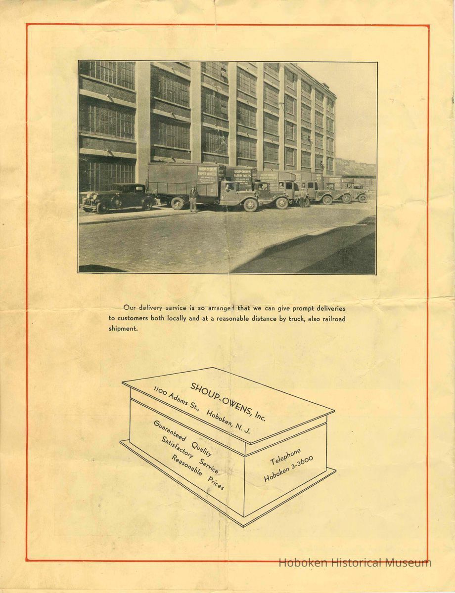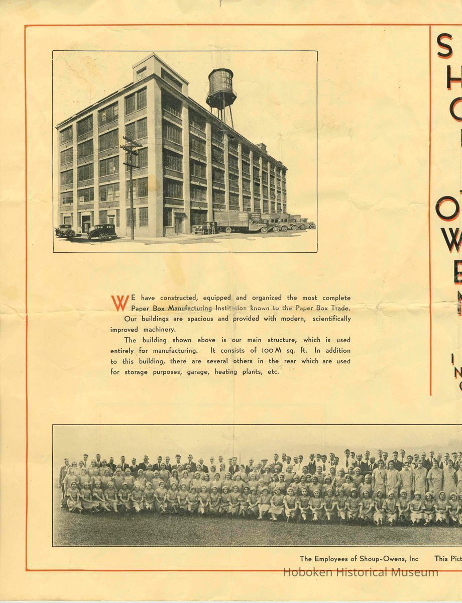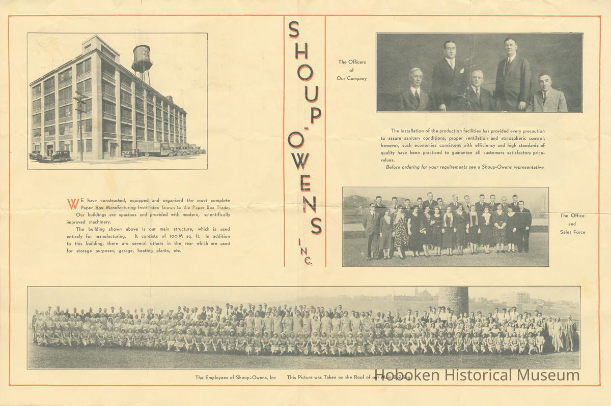 Brochure for Shoup-Owens, Inc., box manufacturer at 1100 Adams St., Hoboken, no date, ca. 1930-40.