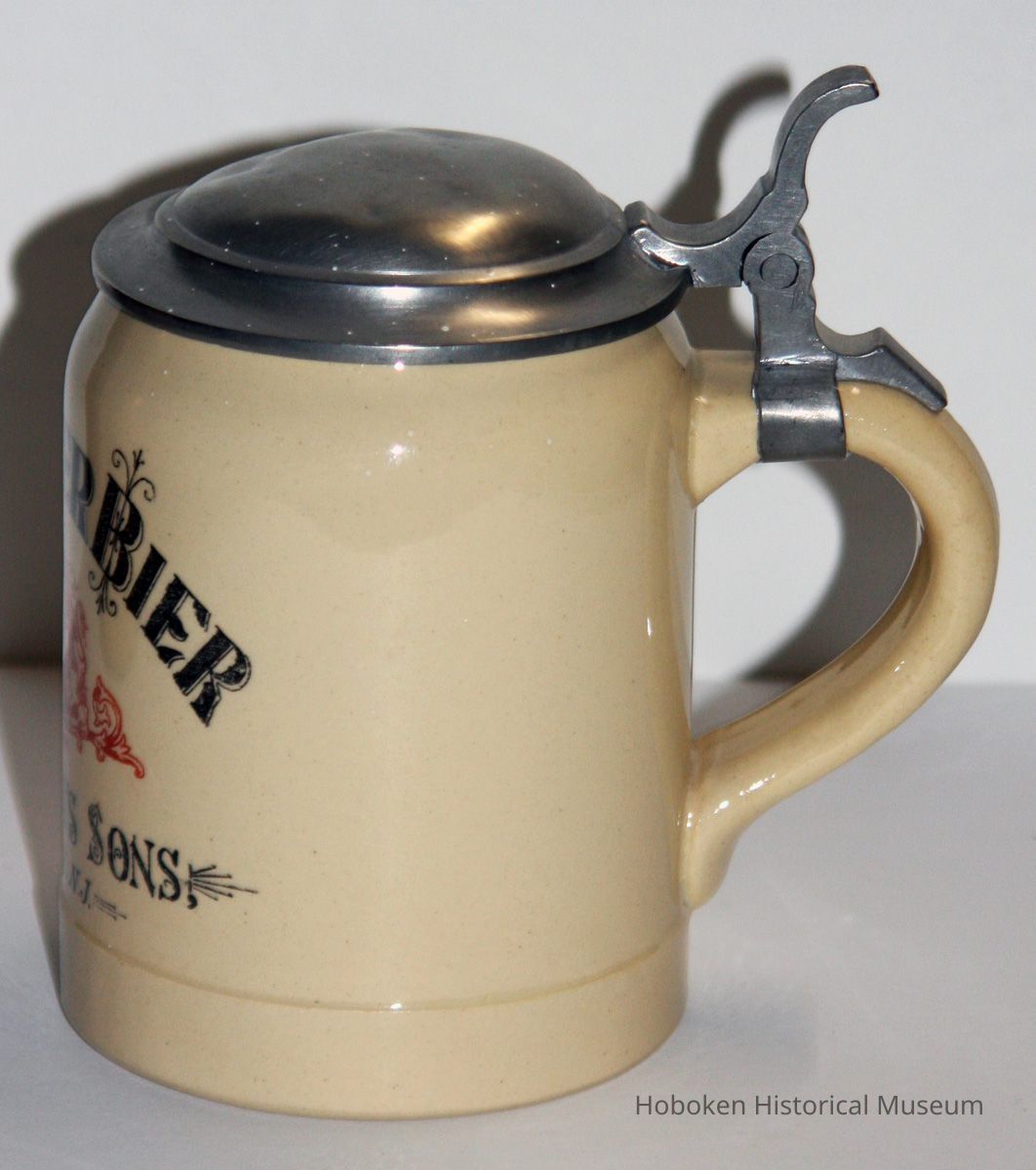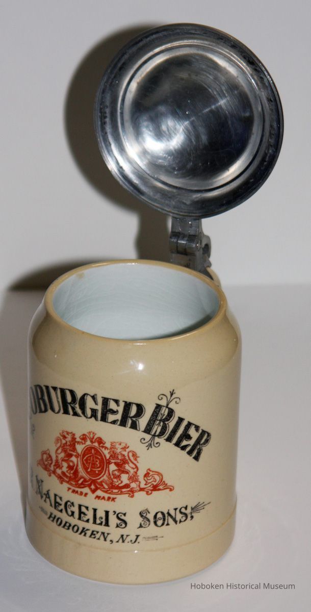 Stein with lid: Coburger Bier. R. Naegeli's Sons. Hoboken, N.J. N.d., ca.1890-1914.