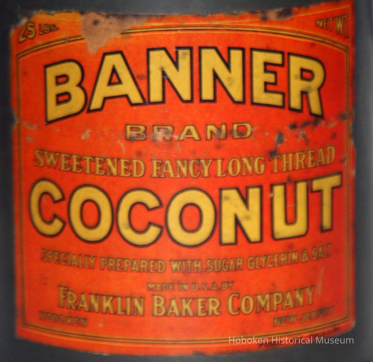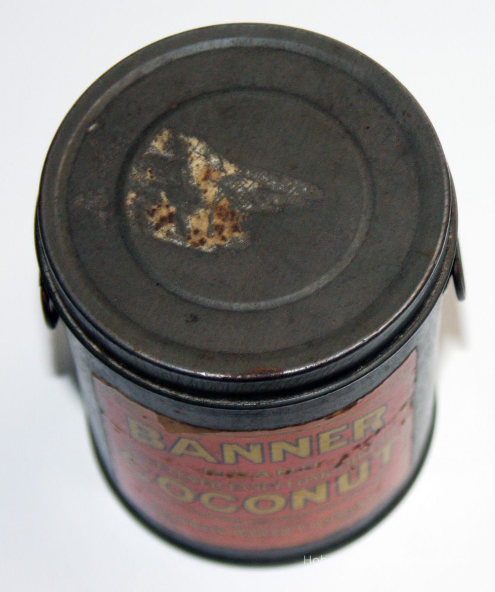 Can, sample: Banner Brand Coconut, 25 Pounds (actual ca. 4oz.); Franklin Baker, Hoboken, n.d., ca. 1925-1940.