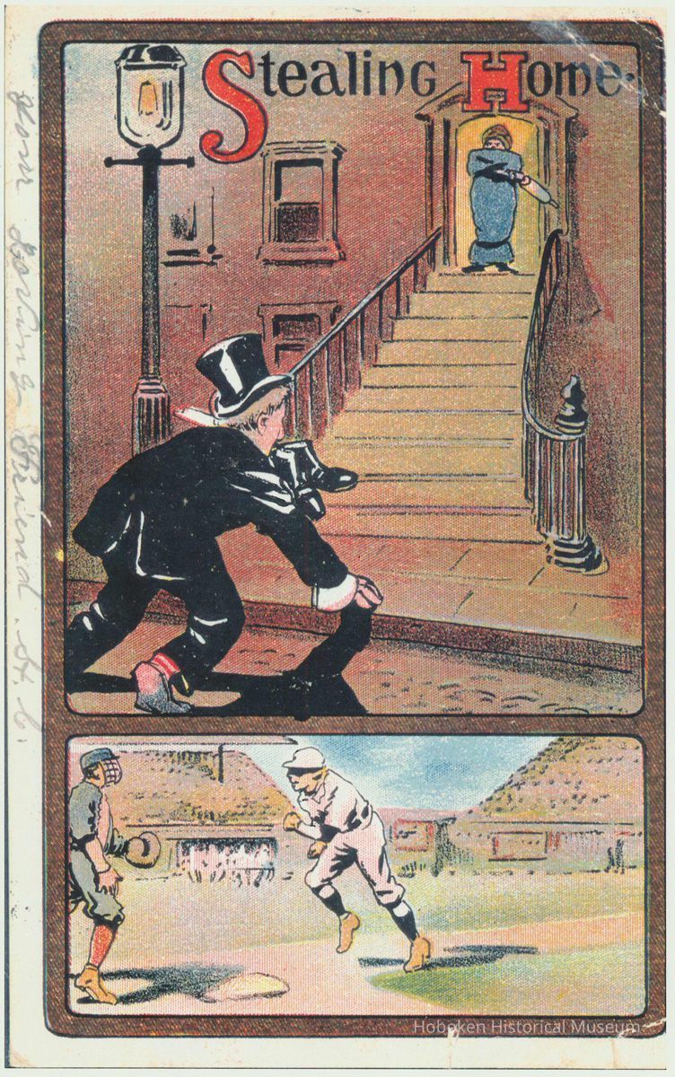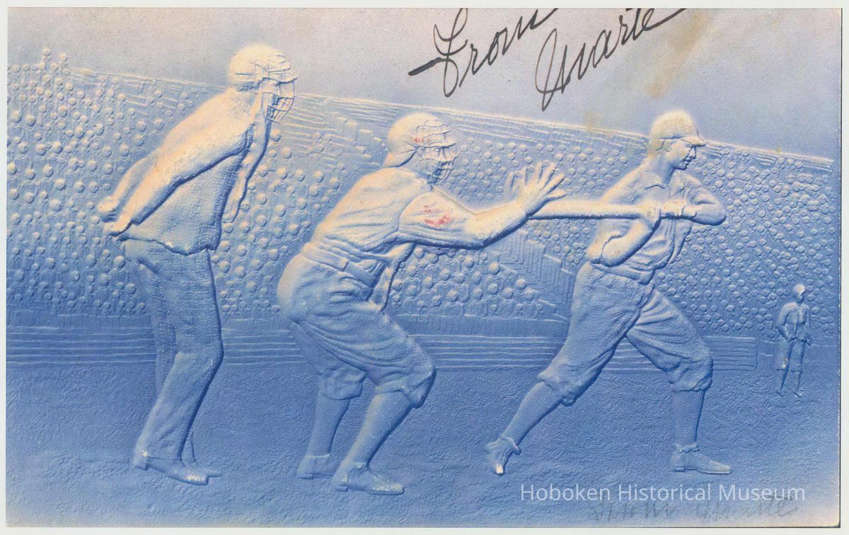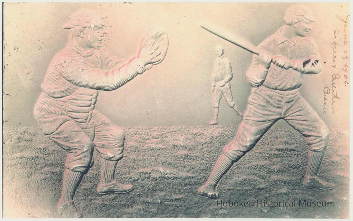 A match game was played on June 19, 1846 at Elysian Fields, Hoboken, and which has been commemorated as the first game with modern rules. These postcards are part of the commemorative heritage of Hoboken and baseball.