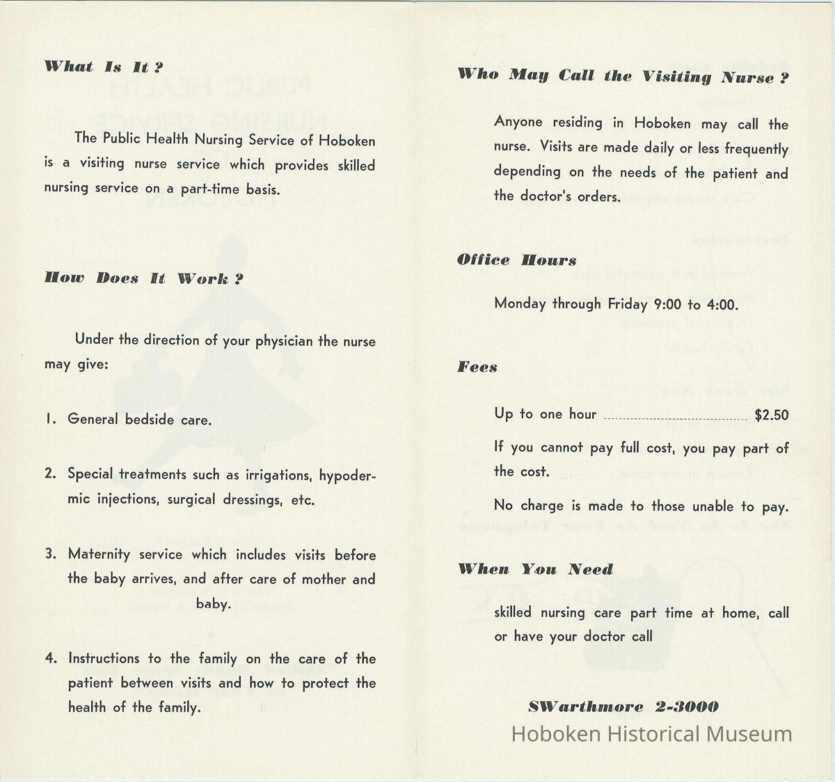 Brochure: Public Health Service of Hoboken, no date, ca. 1955-1960.