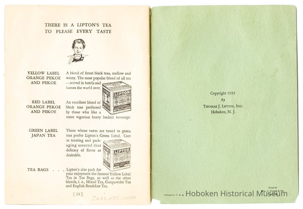 Early Create Date: 1935 Date(s): 1935 Publication Notes: Thomas J. Lipton Co. 1935 Hoboken, N.J.