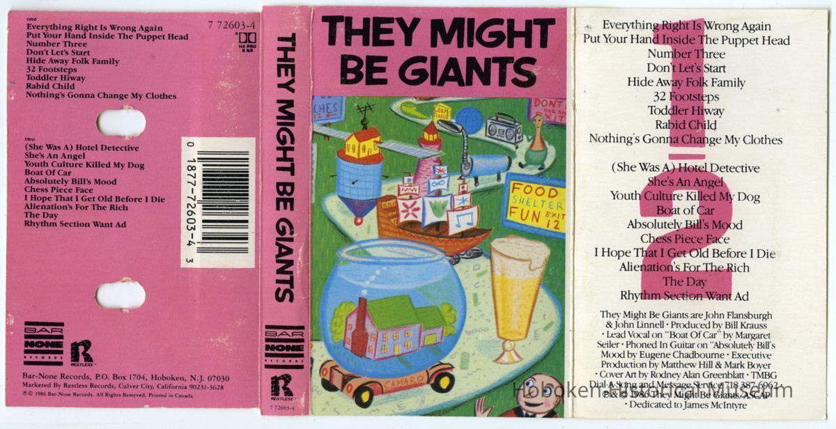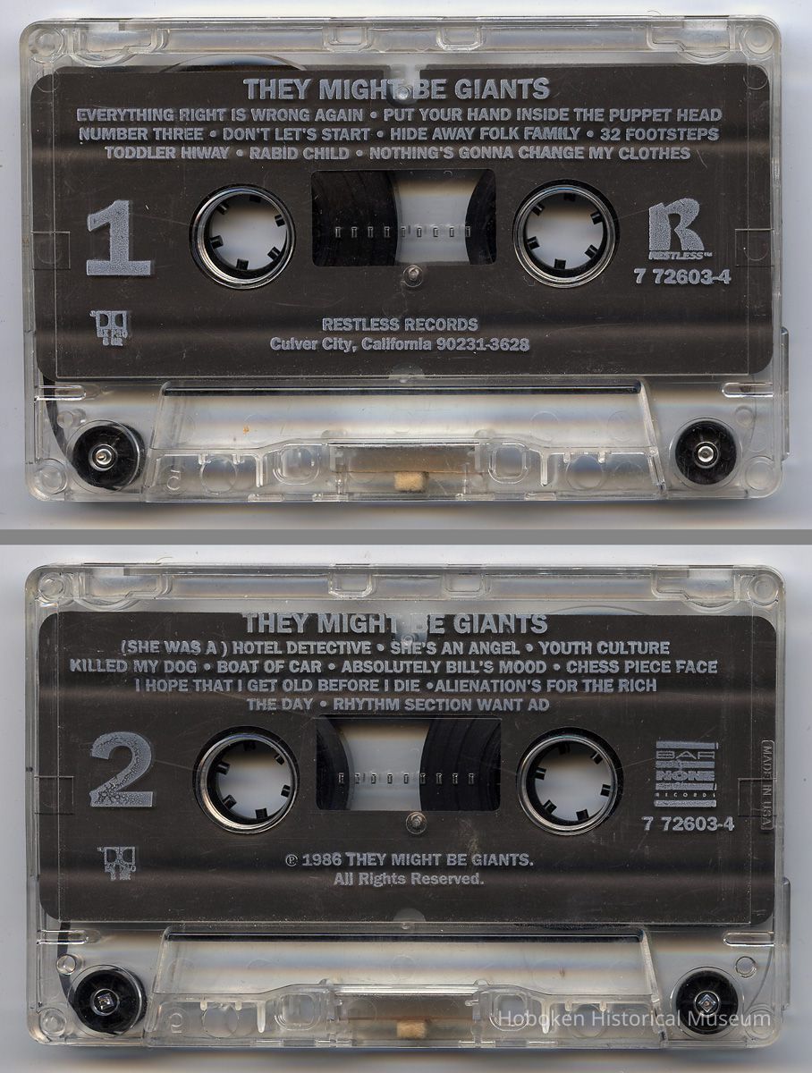 Audio cassette tape: They Might Be Giants. Debut album. Bar/None Records, Hoboken, N.J.; Restless, Culver City, CA. 1987 issue.