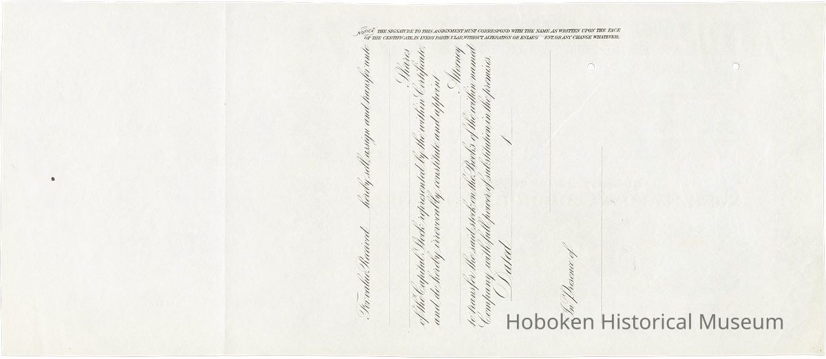 Stock Certificate: Jersey City, Hoboken And Paterson Street Railway Company.