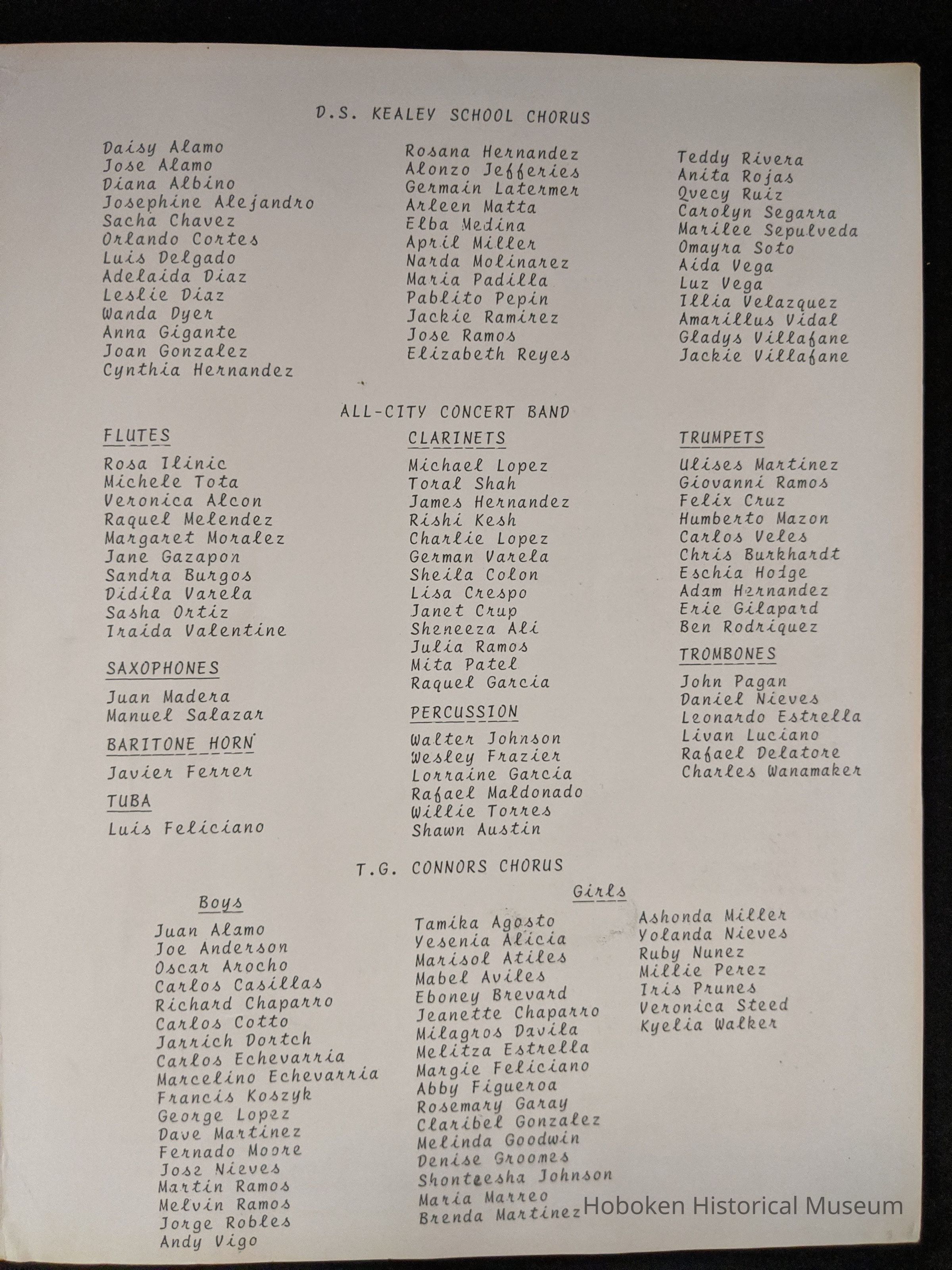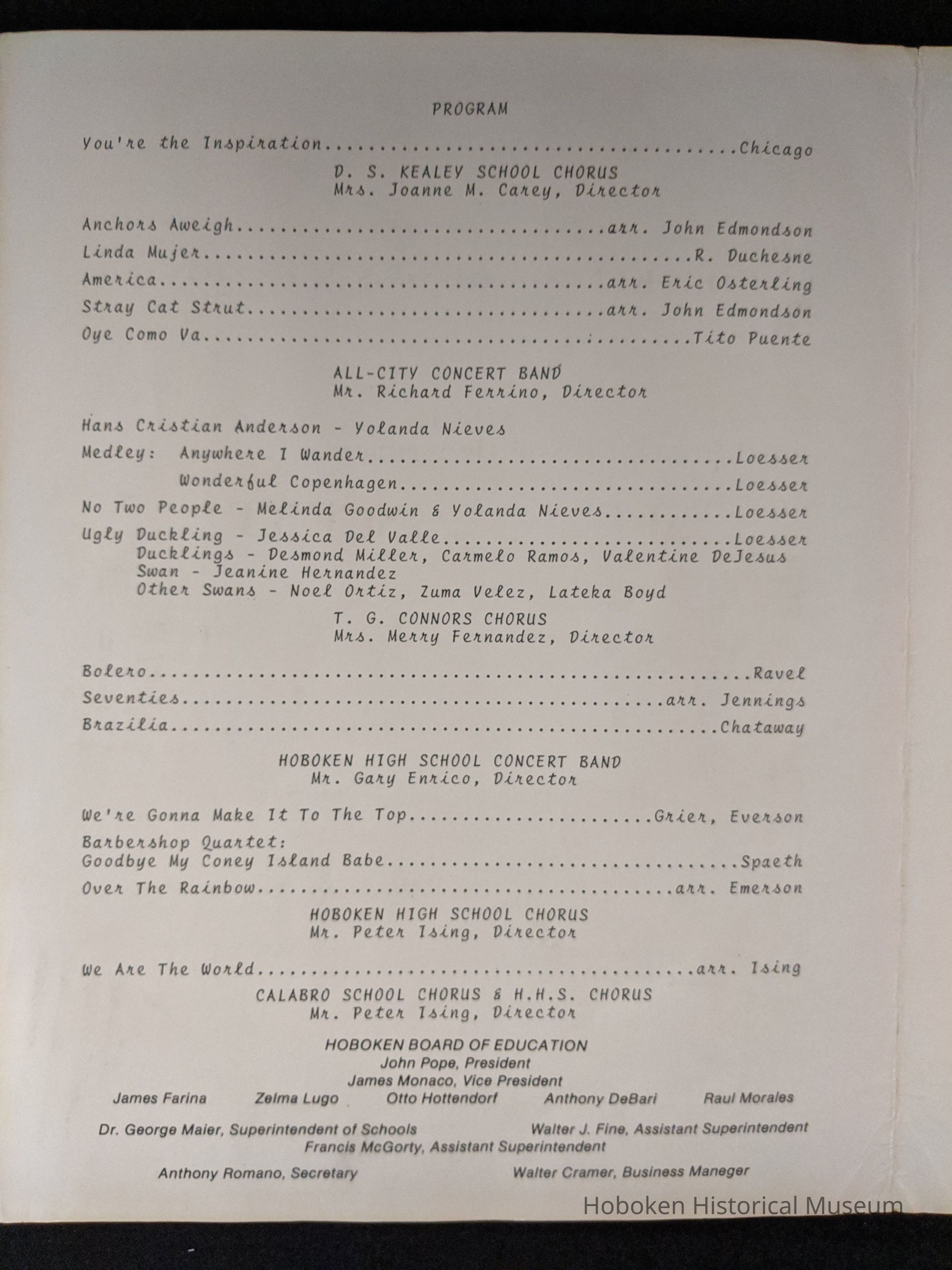Spring Concert Program, Hoboken Board of Education, All-City Music Department, Hoboken High School Auditorium. Spring Concert Program, Hoboken Board of Education, All-City Music Department, Hoboken High School Auditorium.