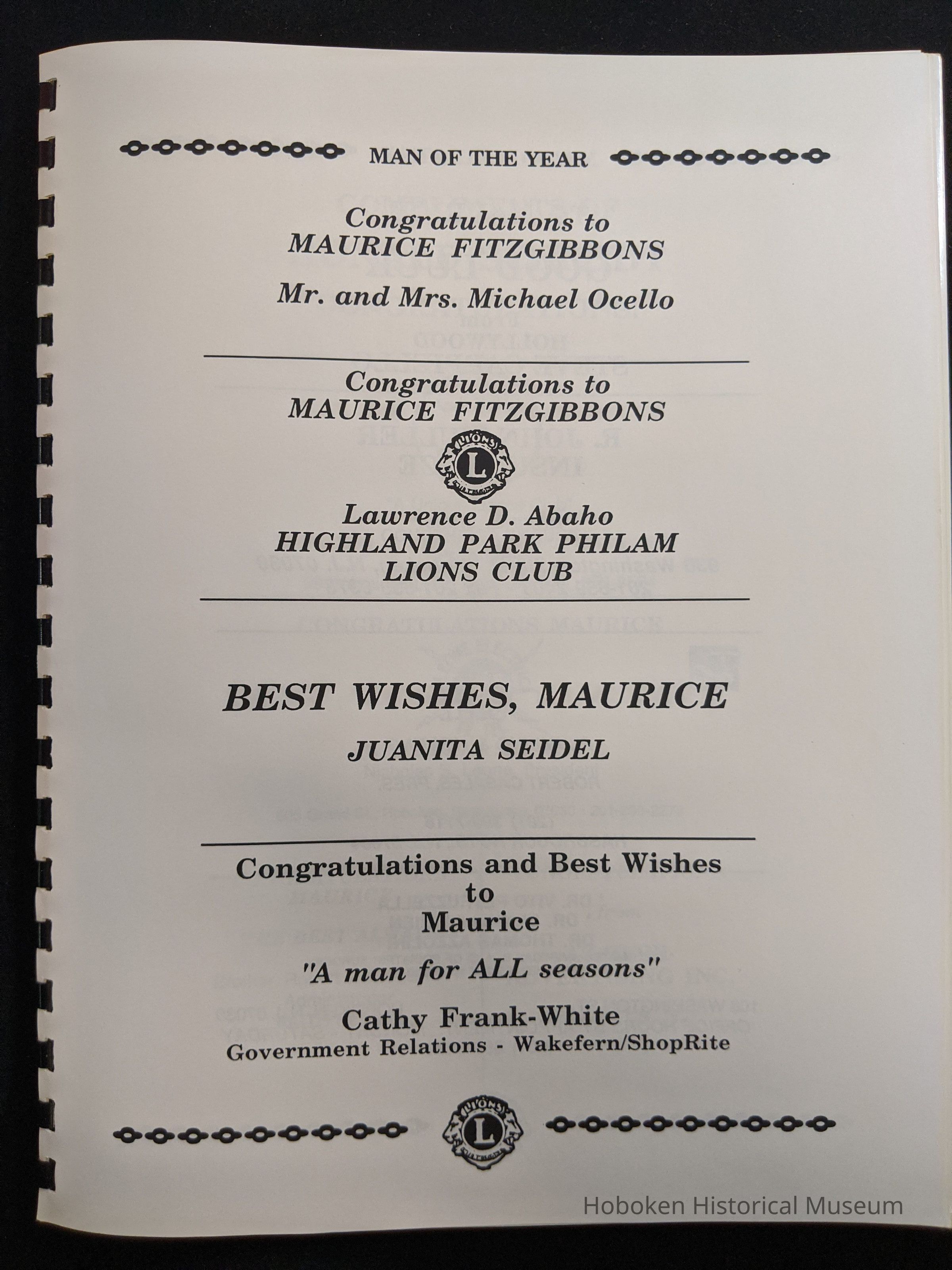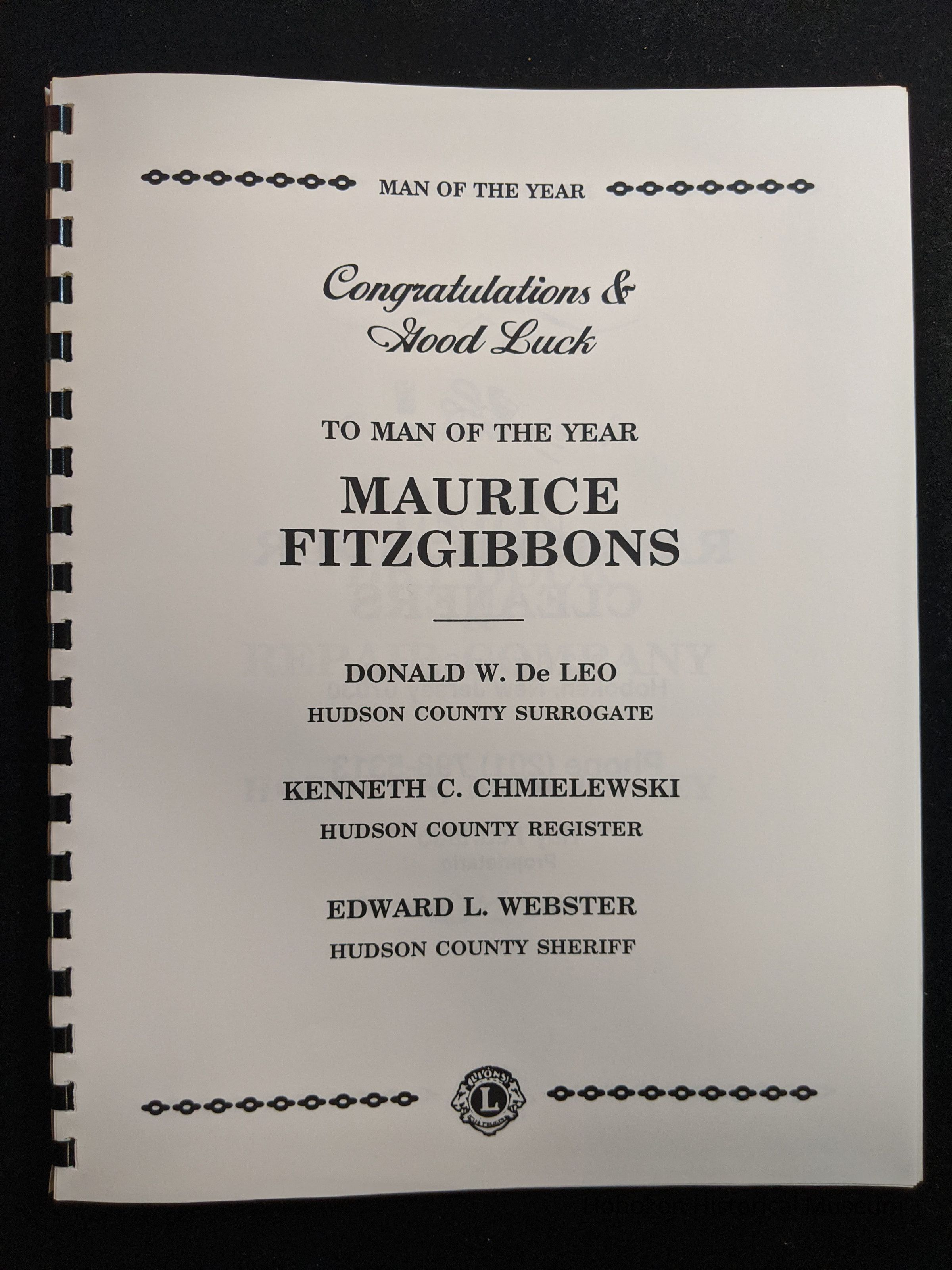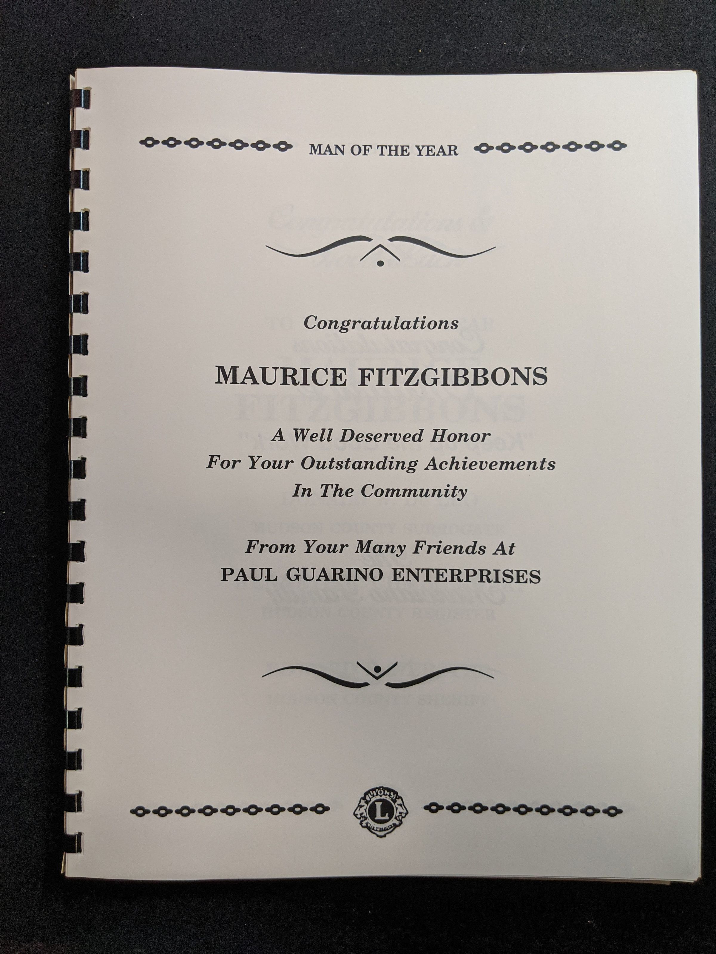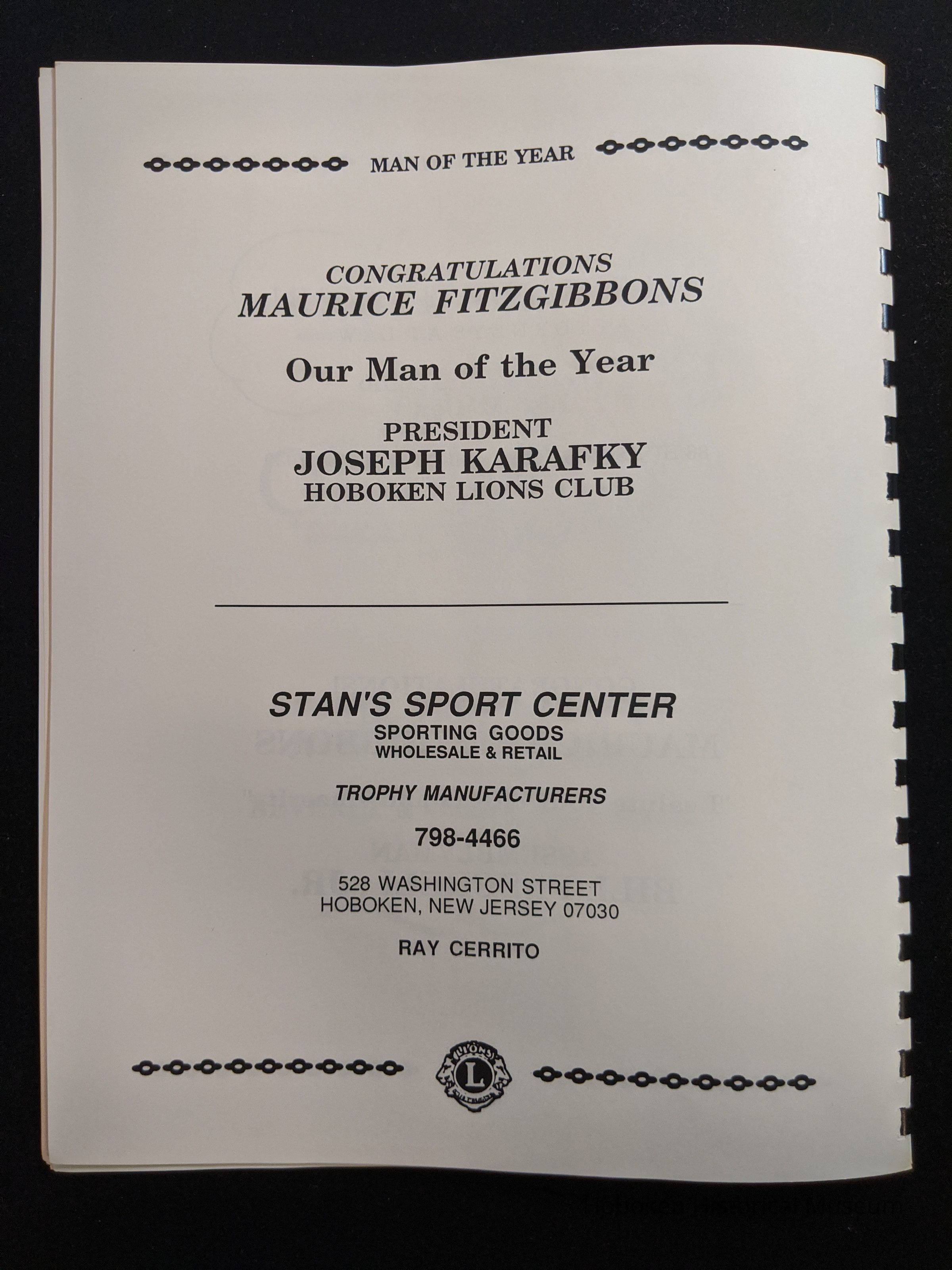 Hoboken Lions Club bound Man of the Year program honoring Maurice Fitzgibbons
