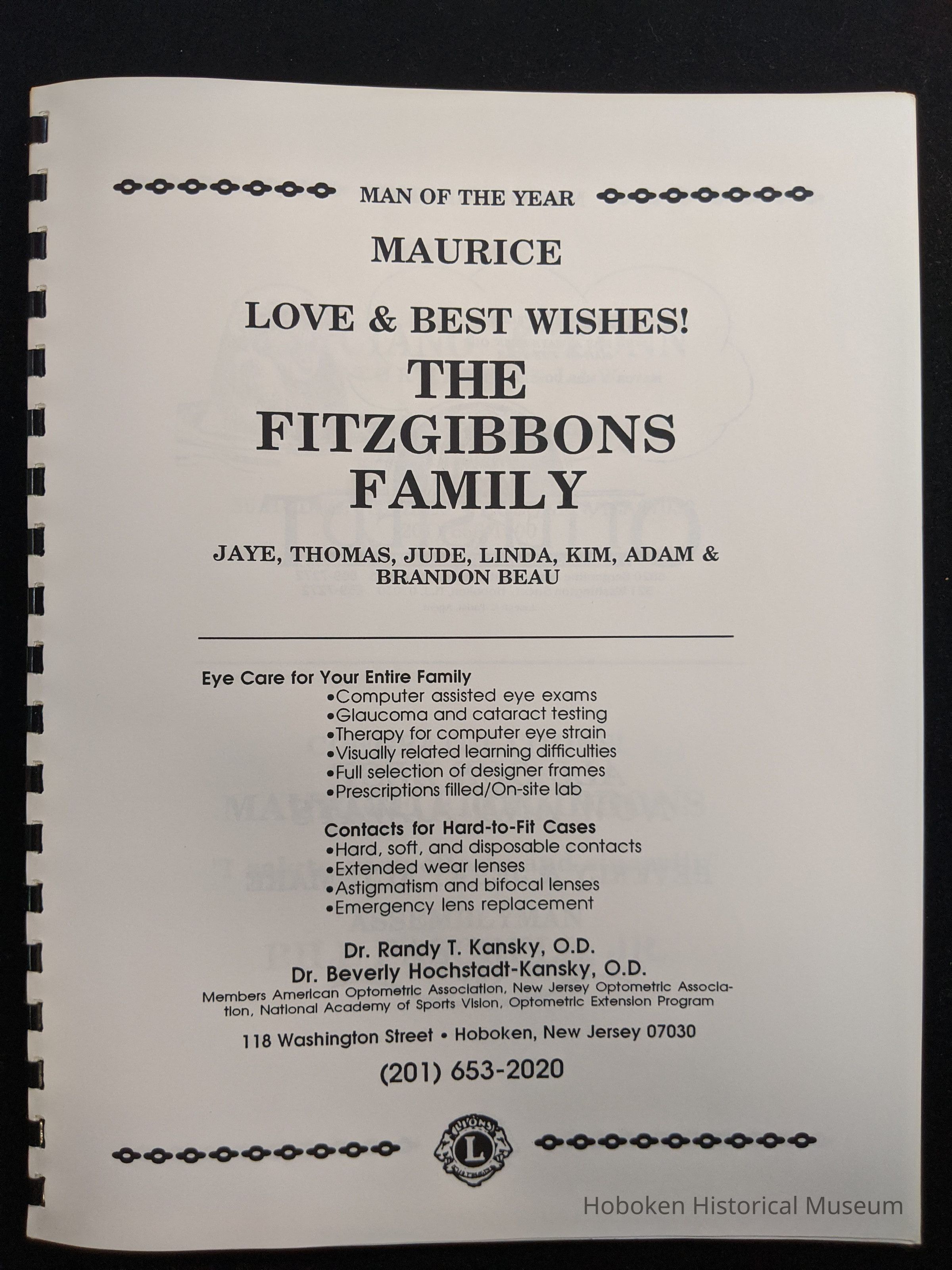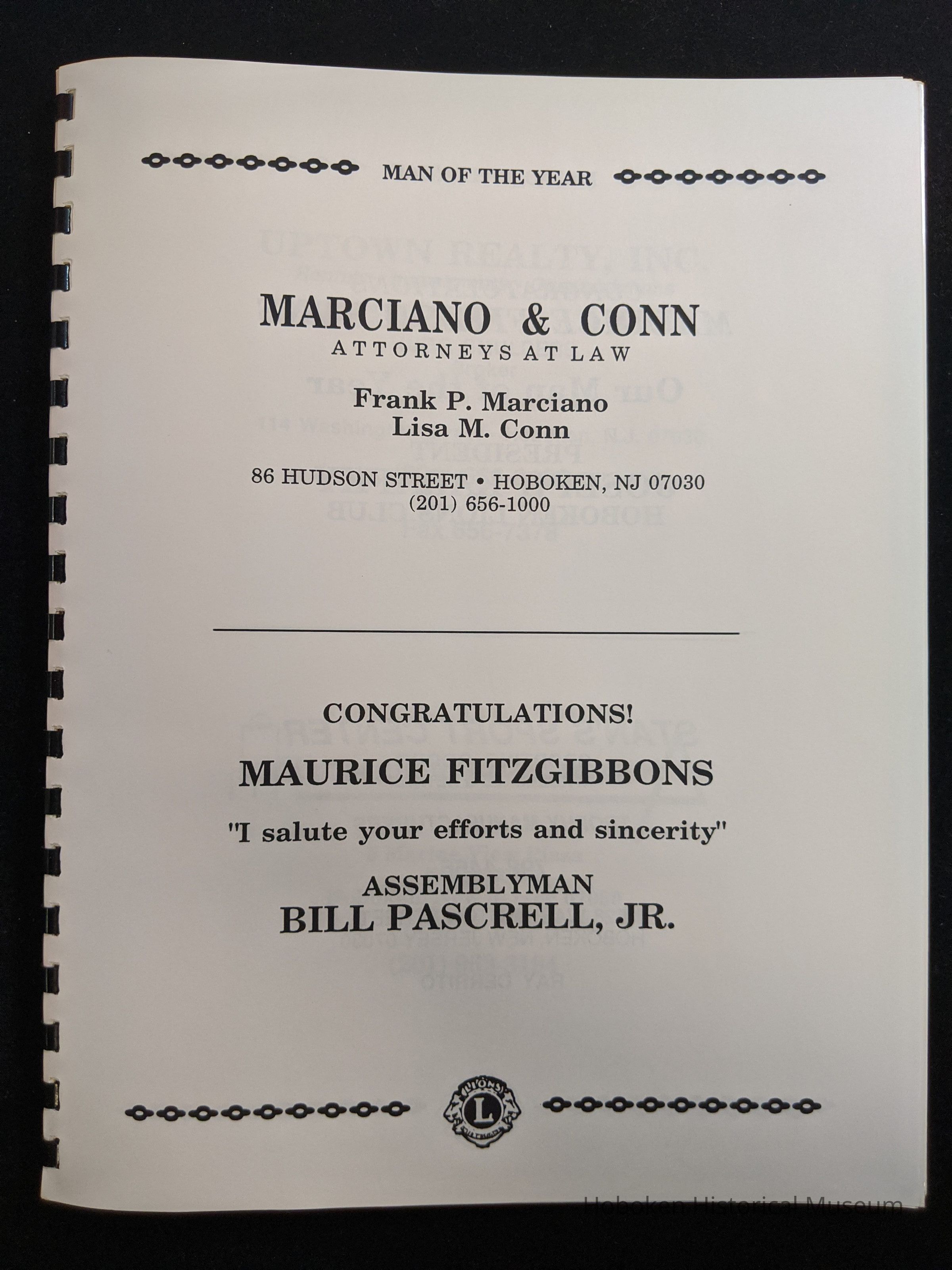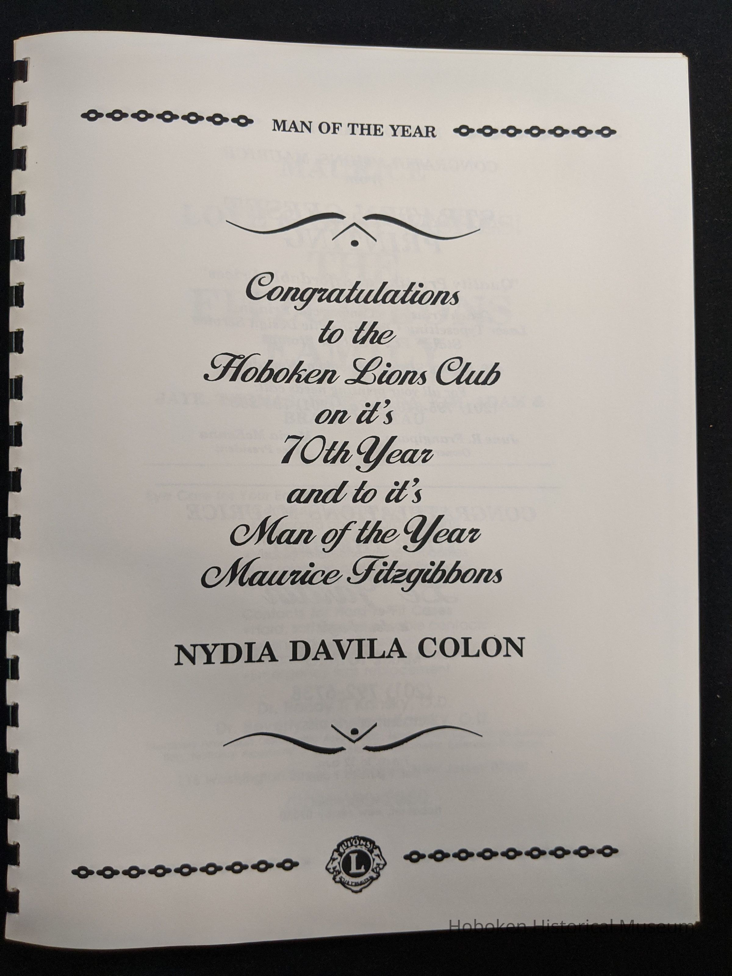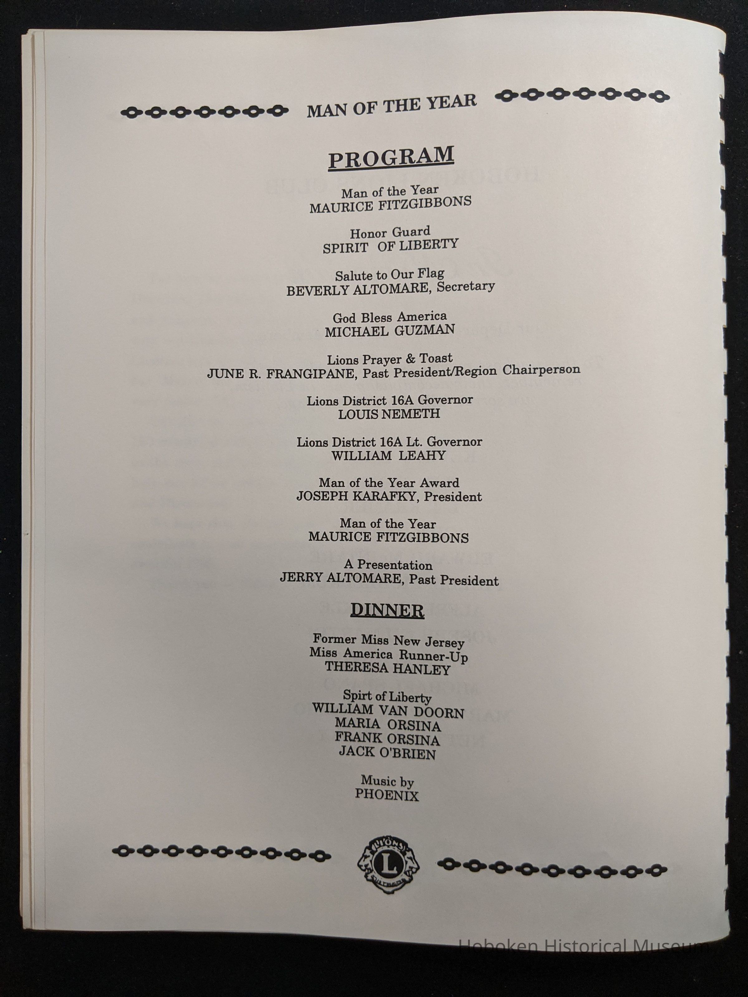Hoboken Lions Club bound Man of the Year program honoring Maurice Fitzgibbons