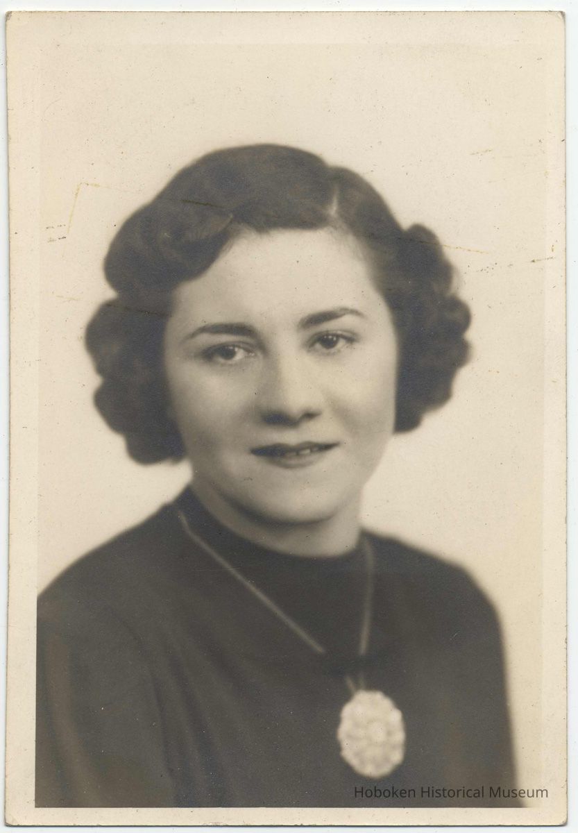 B+W studio photo of Mildred Marion "Molly" Pescatore used as her engagement notice photo, Hoboken, [1938].