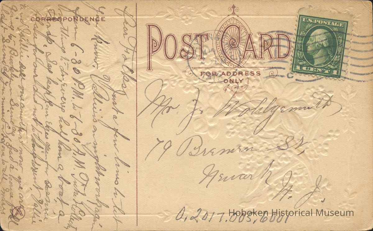Color Postcard: "Souvenir from Bayonne, NJ", 1908