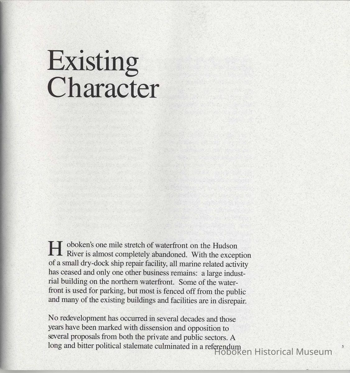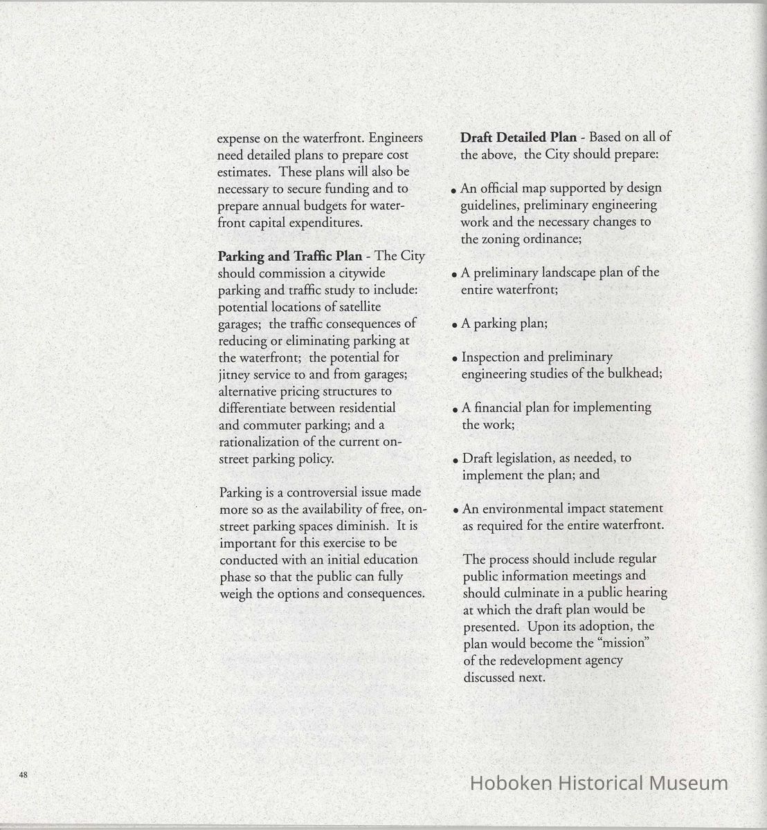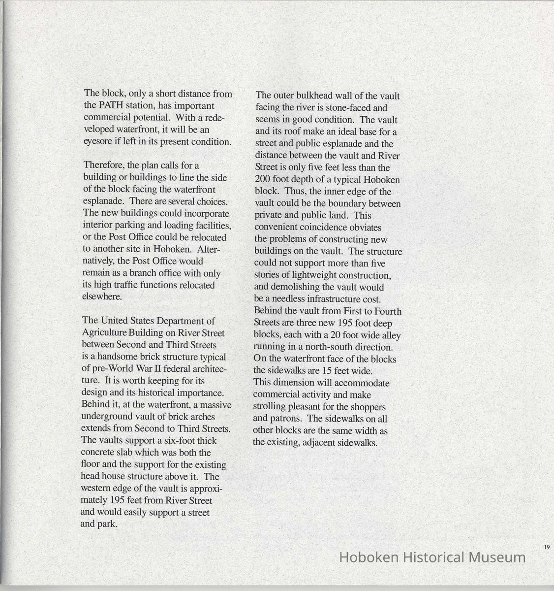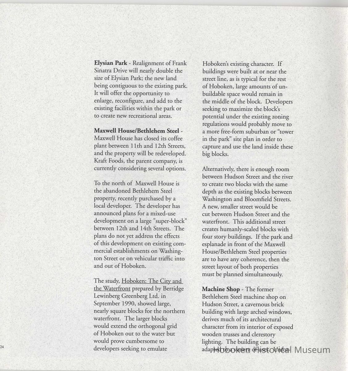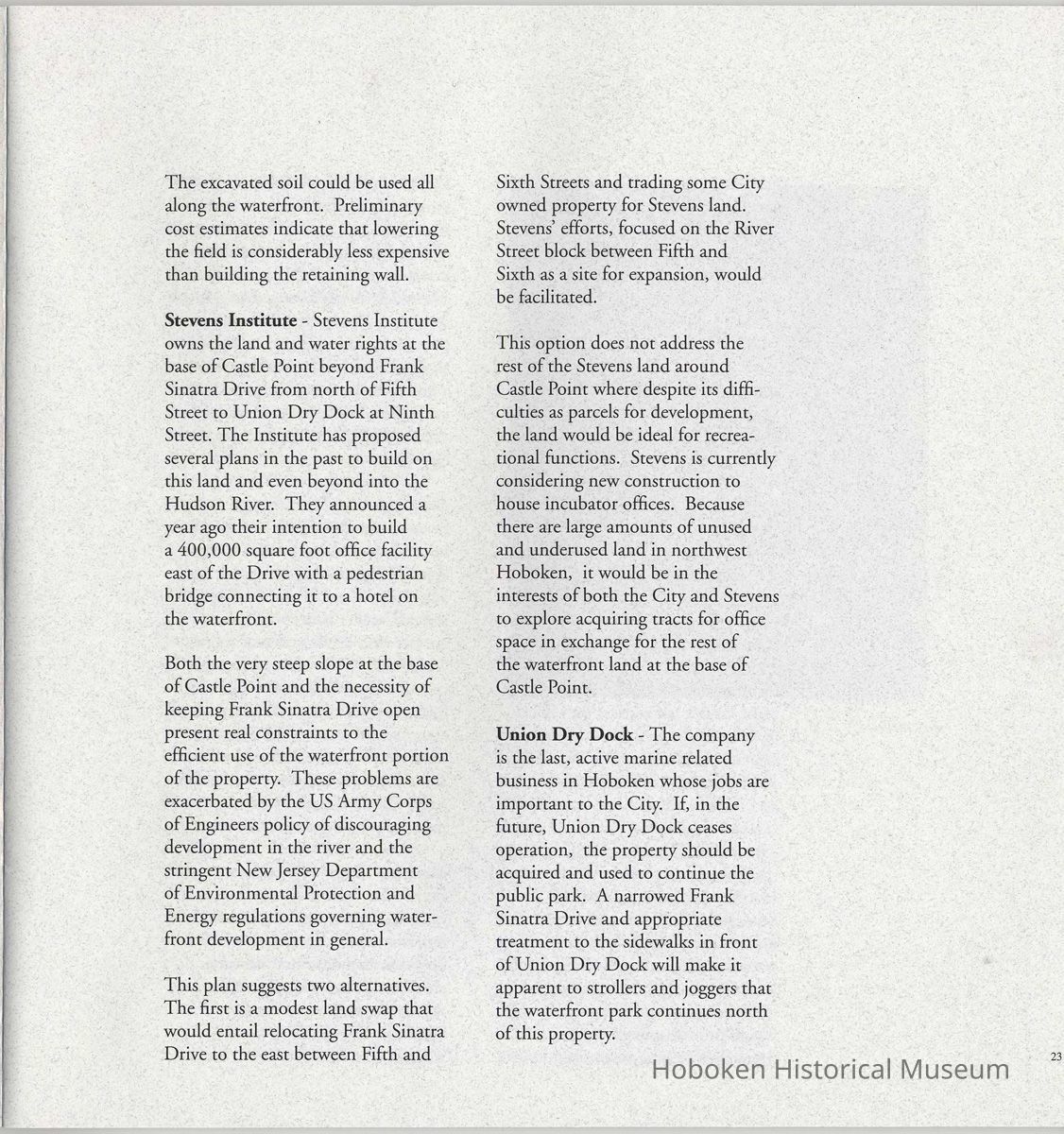 Booklet: A Plan for the Hoboken Waterfront. Coalition for a Better Waterfront. Hoboken, no date, [1993]. 9-1/2" high x 9-1/4" wide. 56 pp., illustrated with photos, maps, drawings. 2 copies