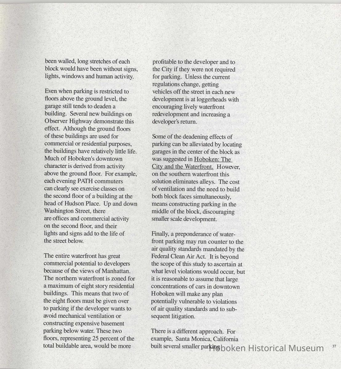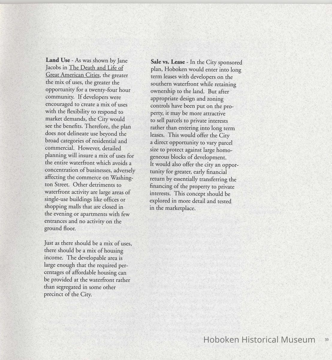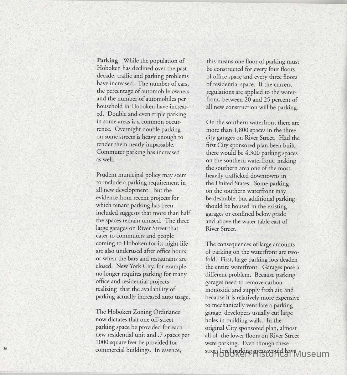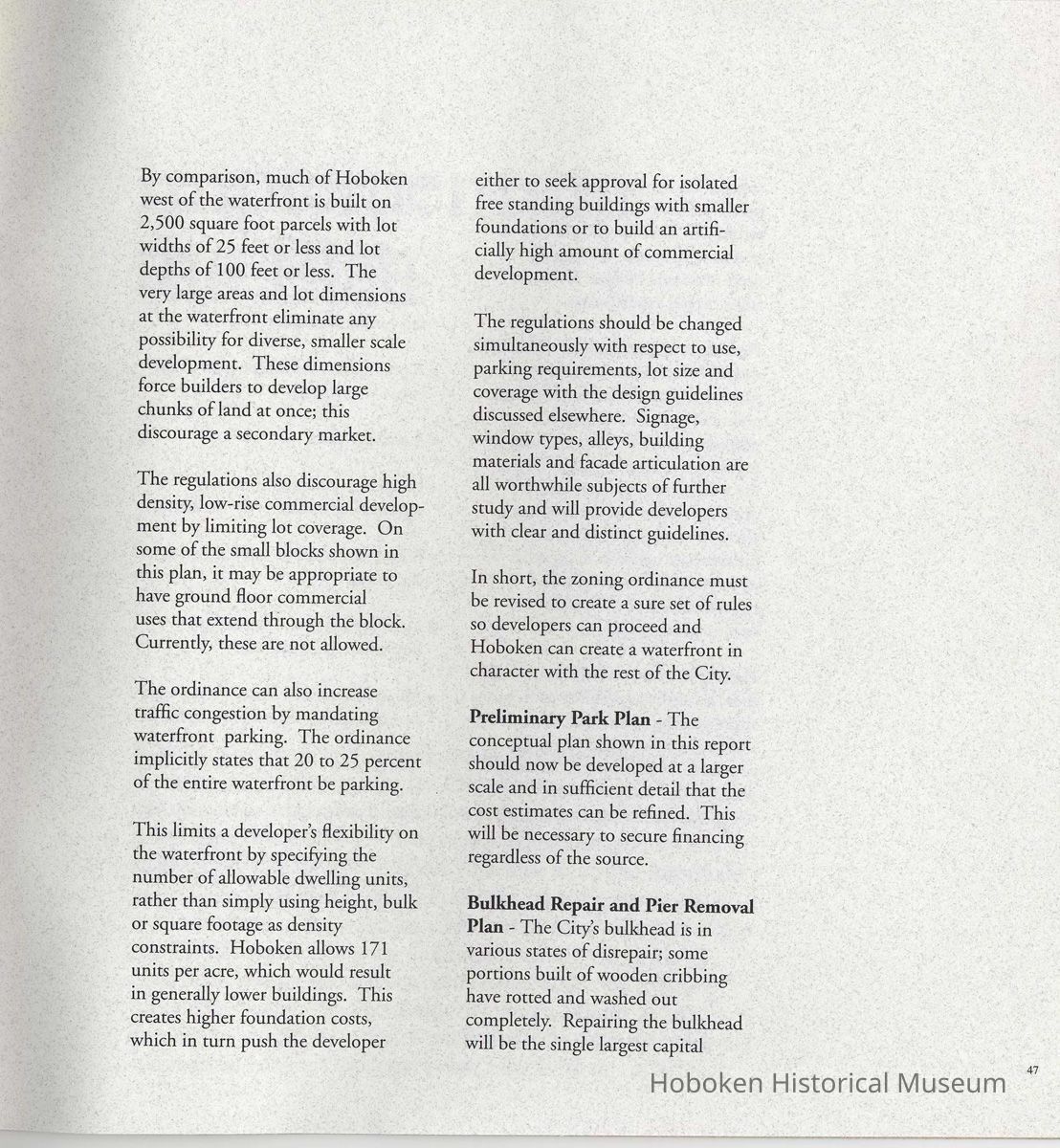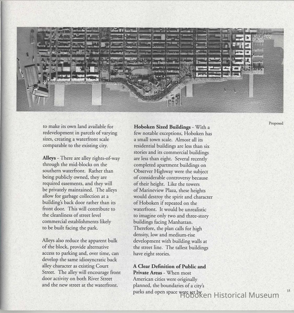 Booklet: A Plan for the Hoboken Waterfront. Coalition for a Better Waterfront. Hoboken, no date, [1993]. 9-1/2" high x 9-1/4" wide. 56 pp., illustrated with photos, maps, drawings. 2 copies