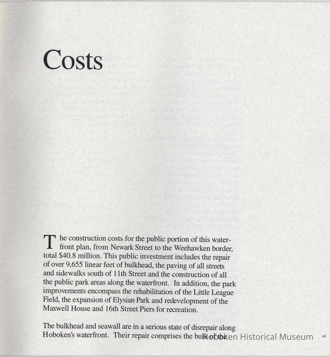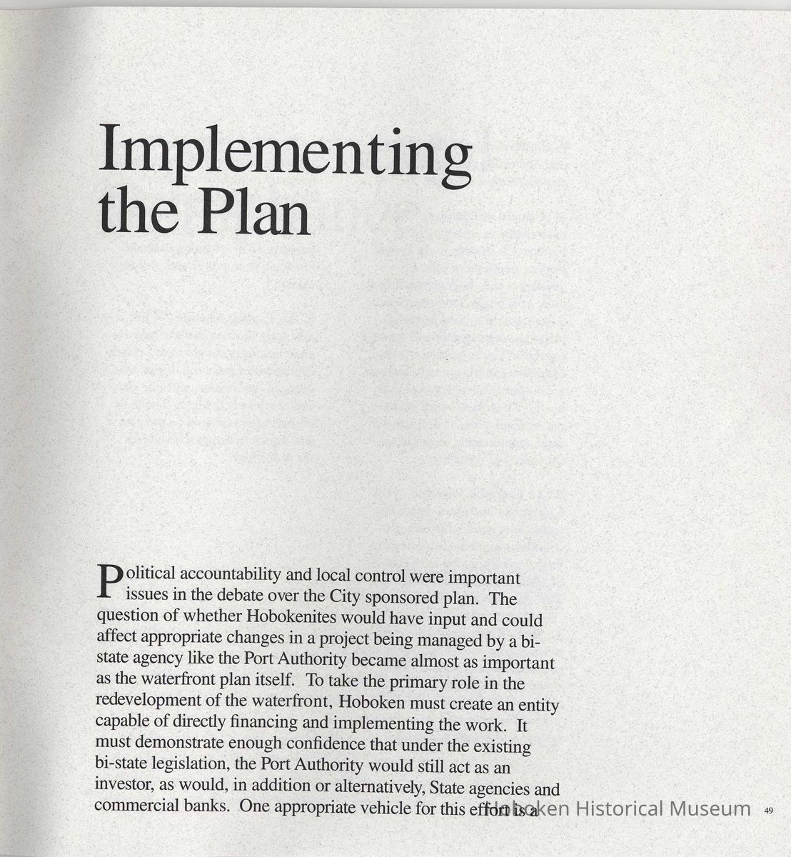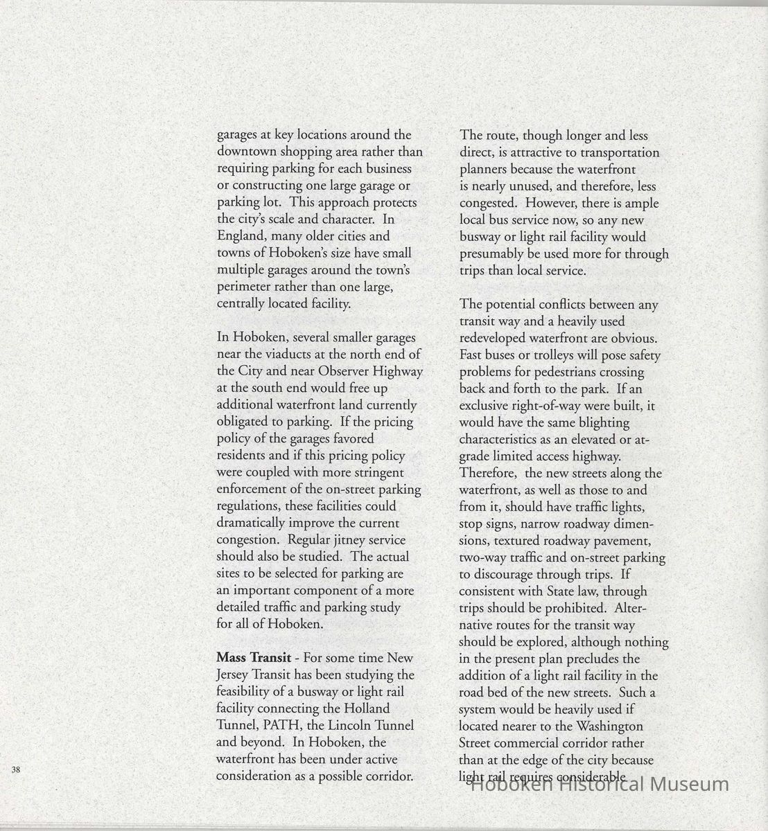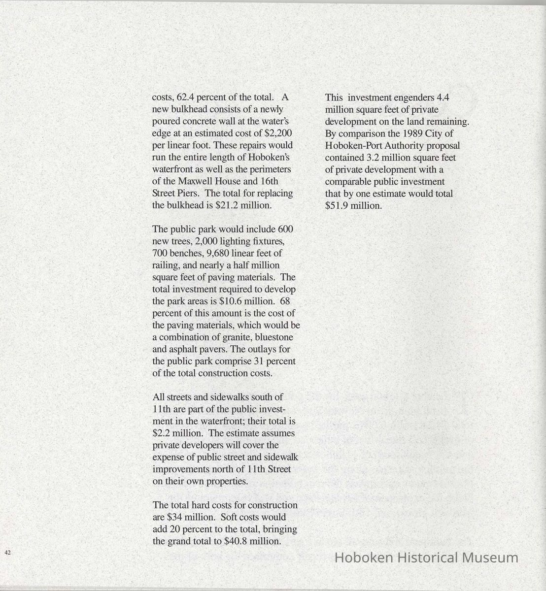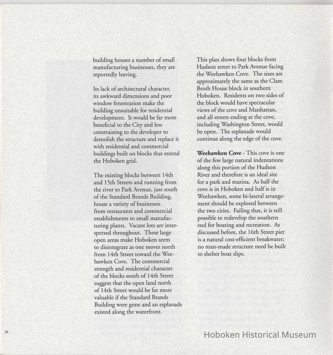 Booklet: A Plan for the Hoboken Waterfront. Coalition for a Better Waterfront. Hoboken, no date, [1993]. 9-1/2" high x 9-1/4" wide. 56 pp., illustrated with photos, maps, drawings. 2 copies