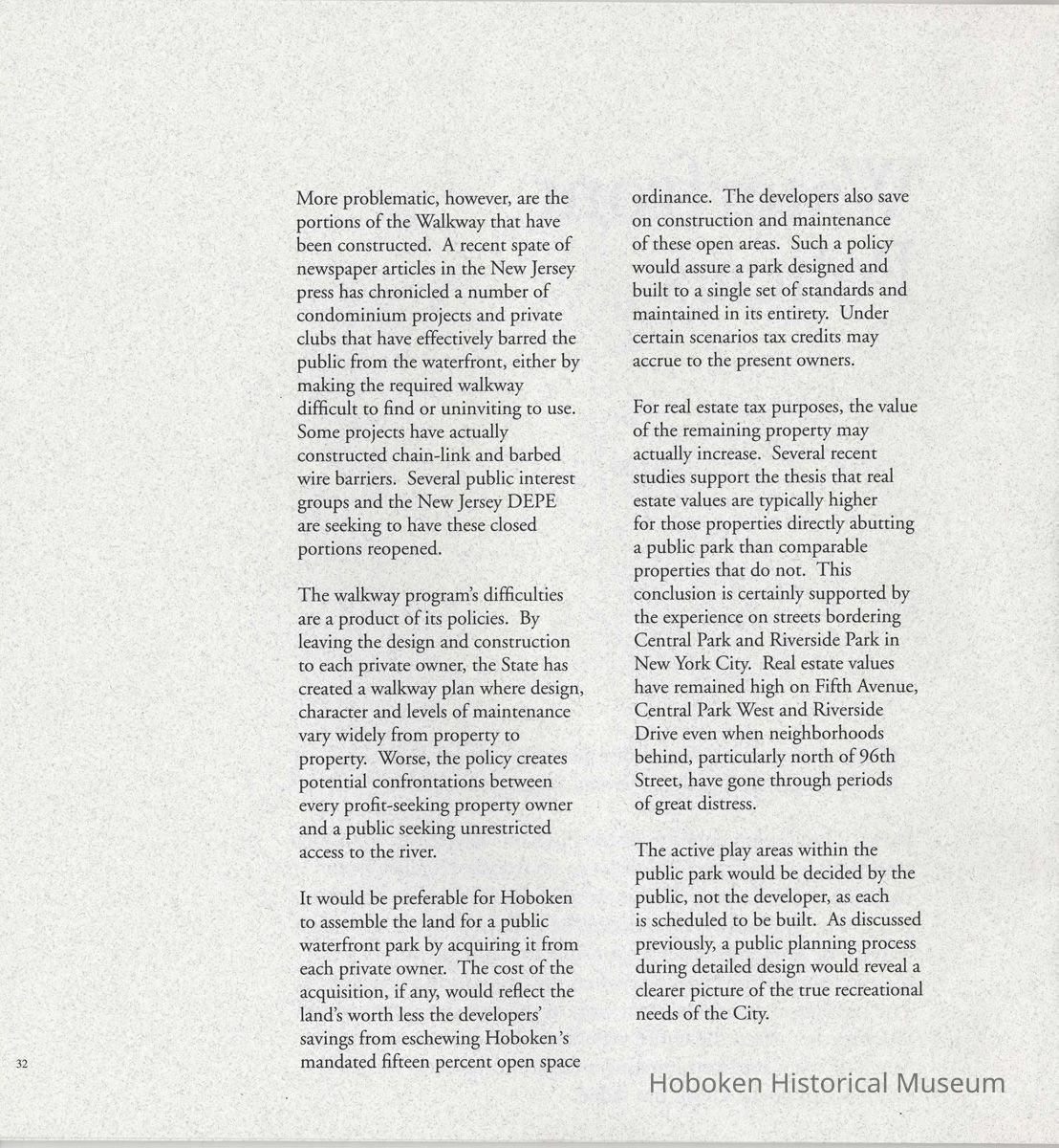 Booklet: A Plan for the Hoboken Waterfront. Coalition for a Better Waterfront. Hoboken, no date, [1993].