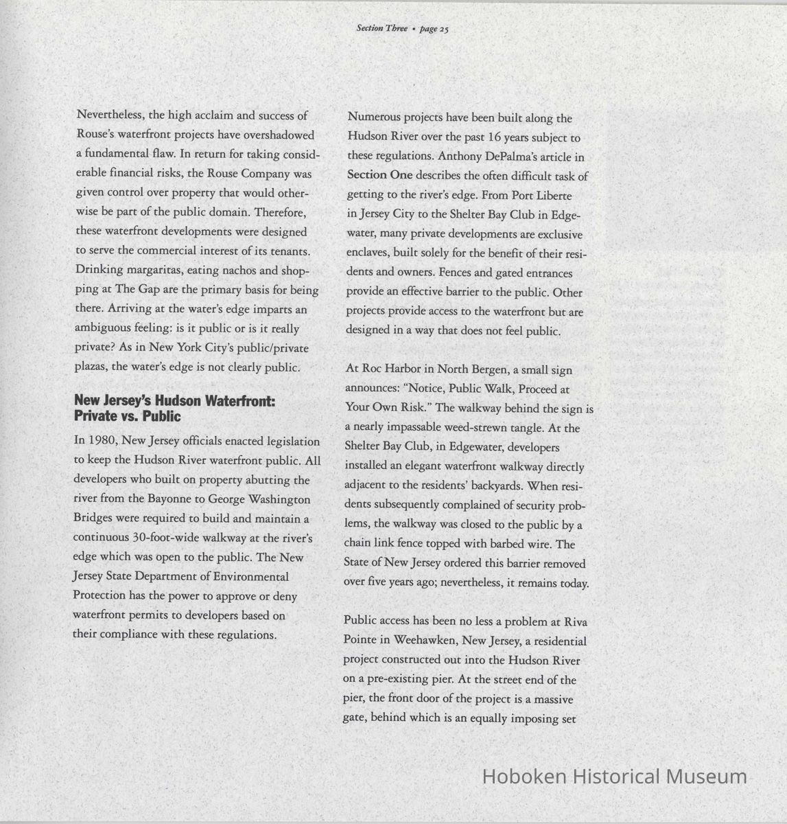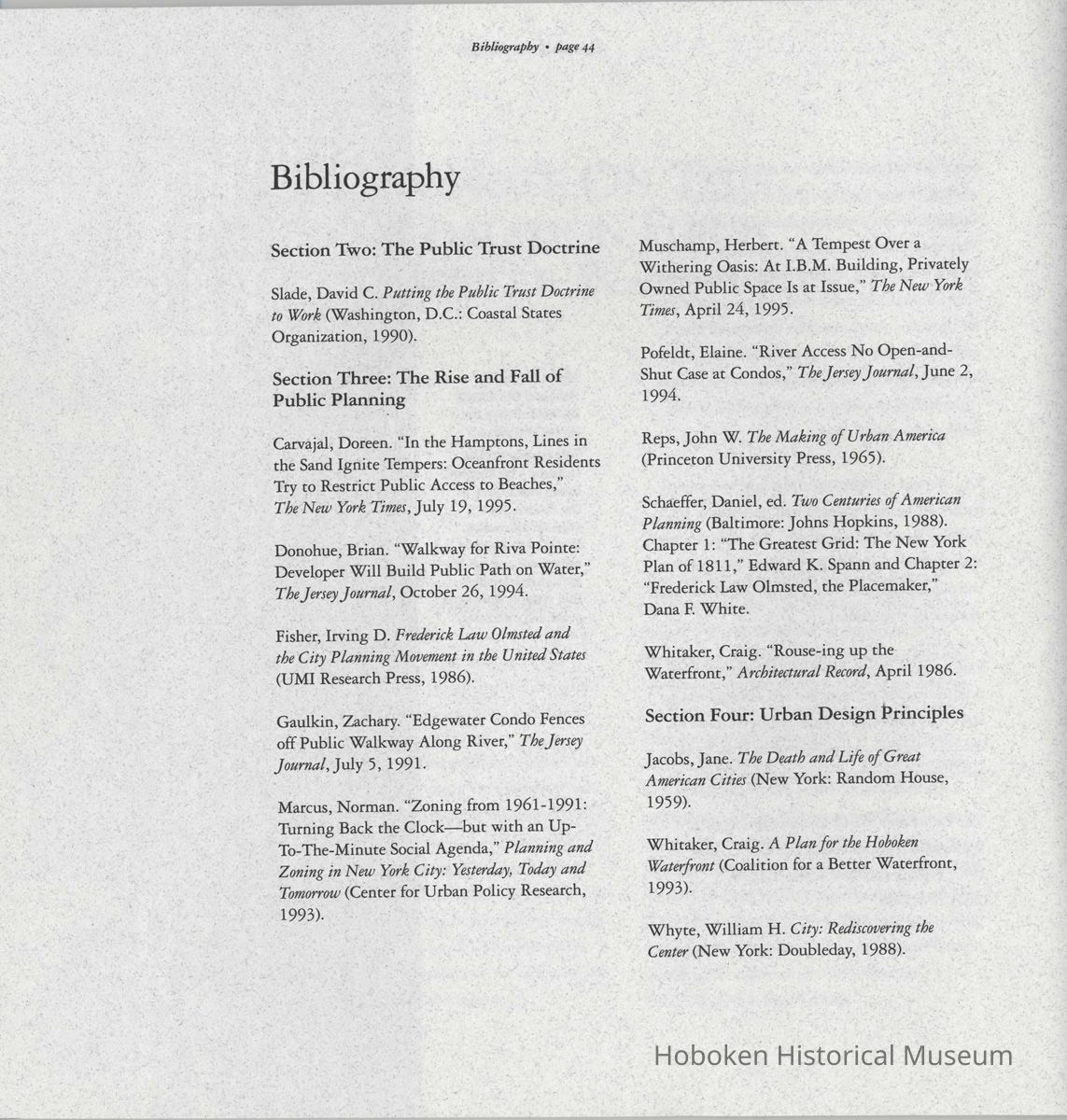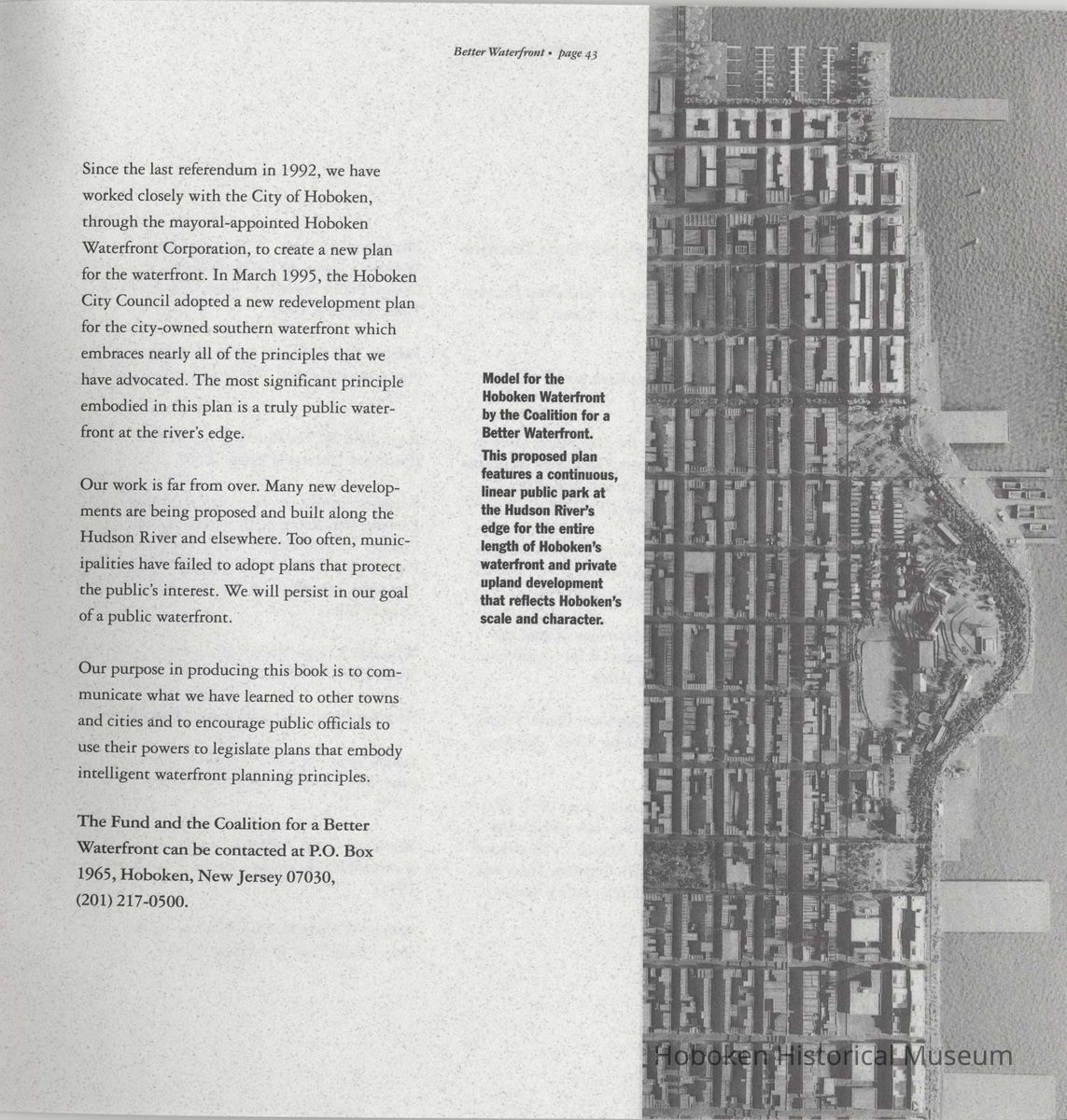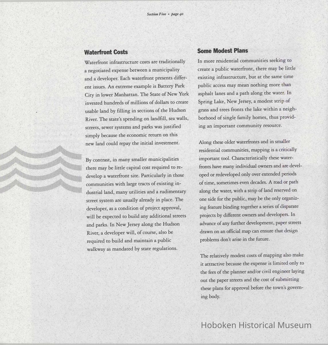 Booklet: Reclaiming the Waterfront. A Planning Guide for Waterfront Municipalities. Fund for a Better Waterfront. [Hoboken]: August, 1996.
