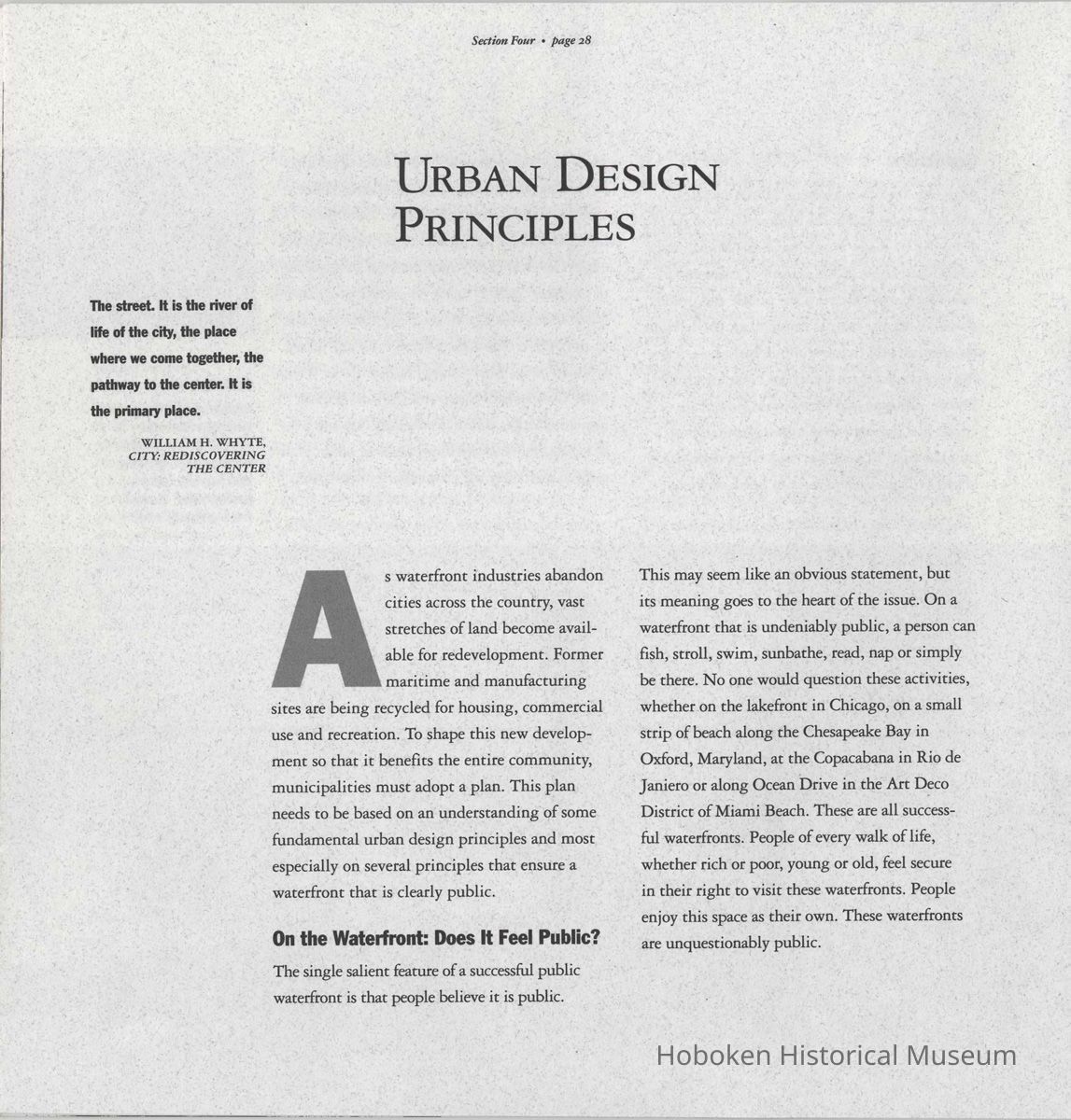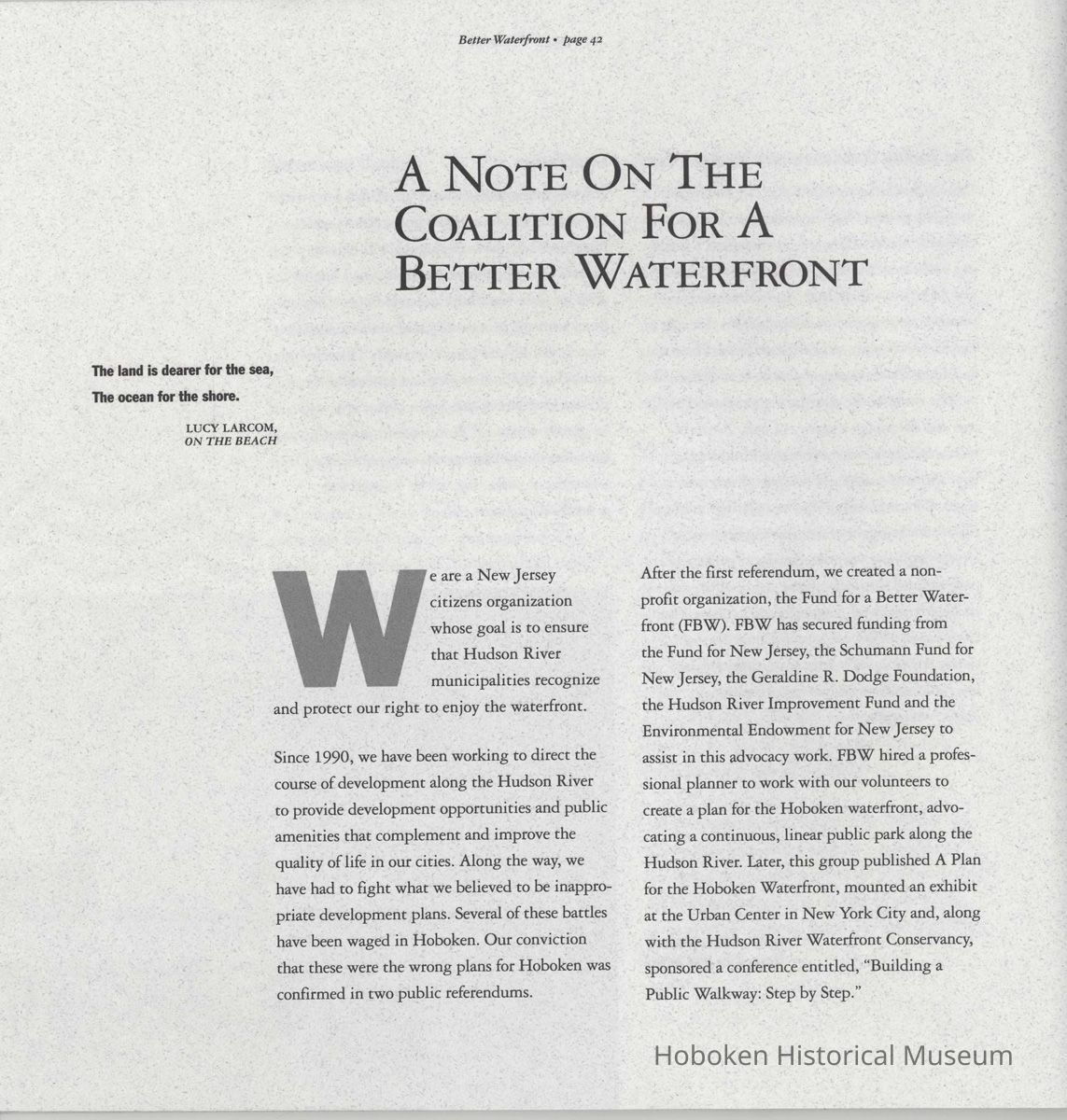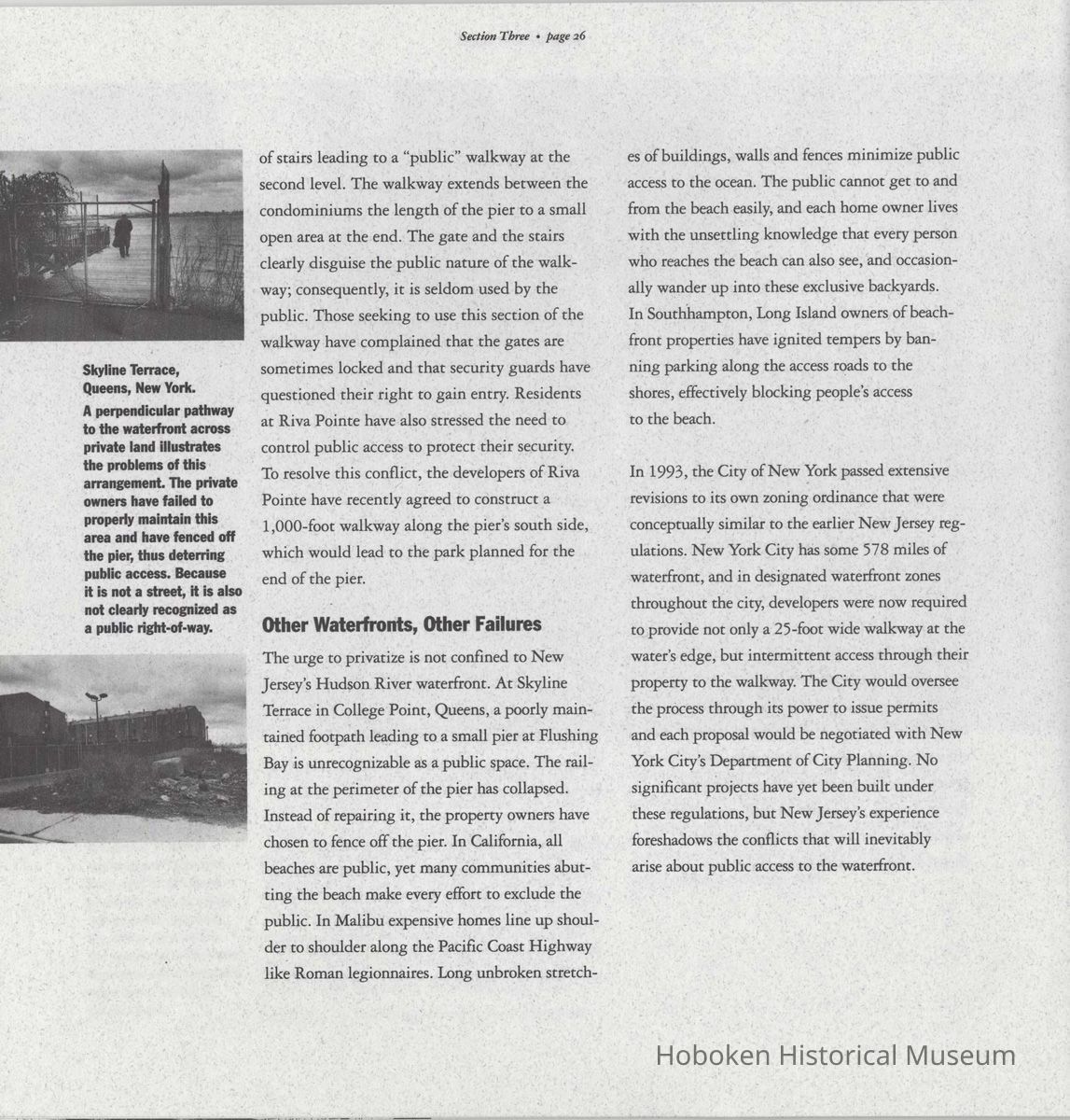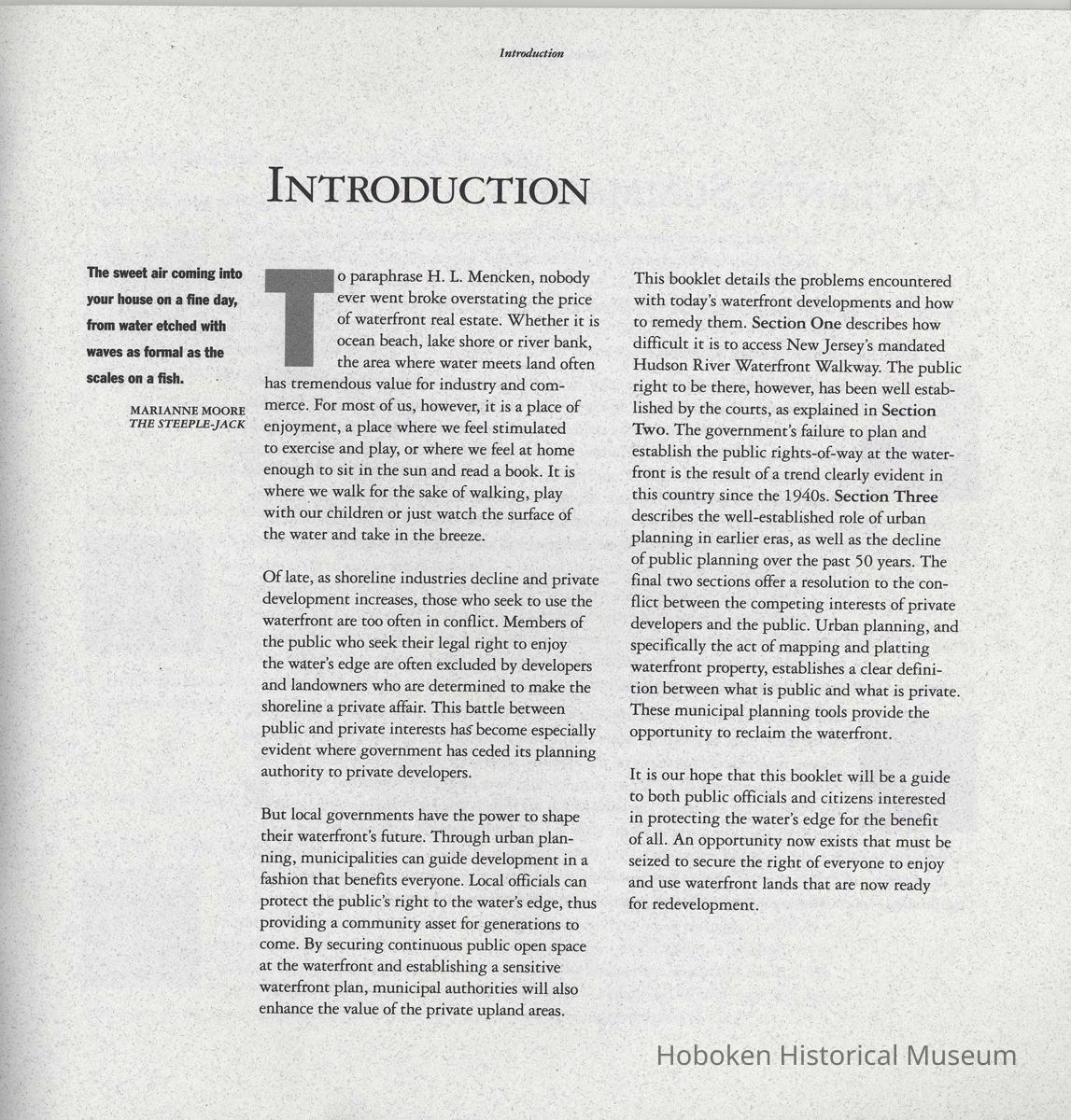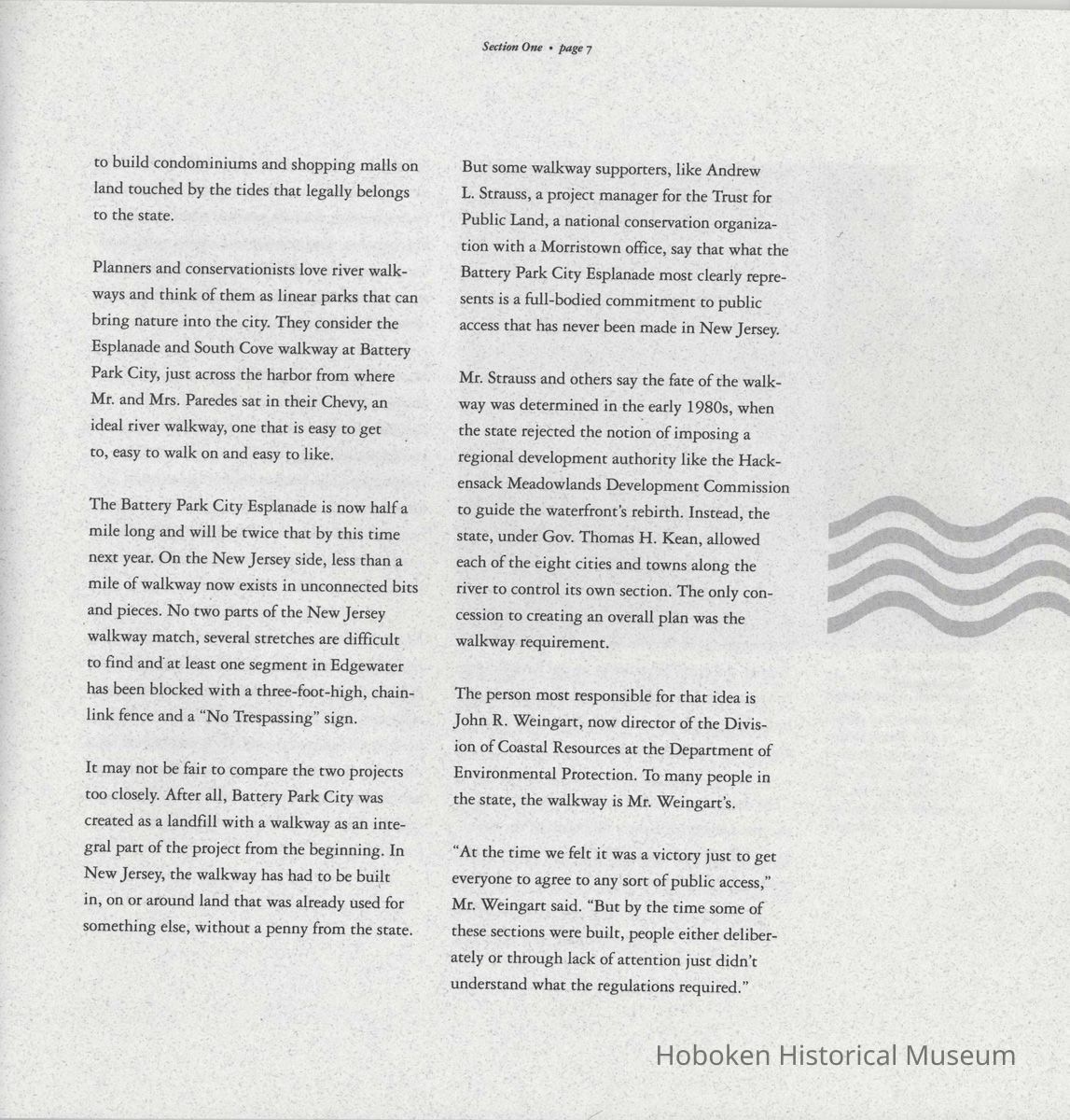 Booklet: Reclaiming the Waterfront. A Planning Guide for Waterfront Municipalities. Fund for a Better Waterfront. [Hoboken]: August, 1996.