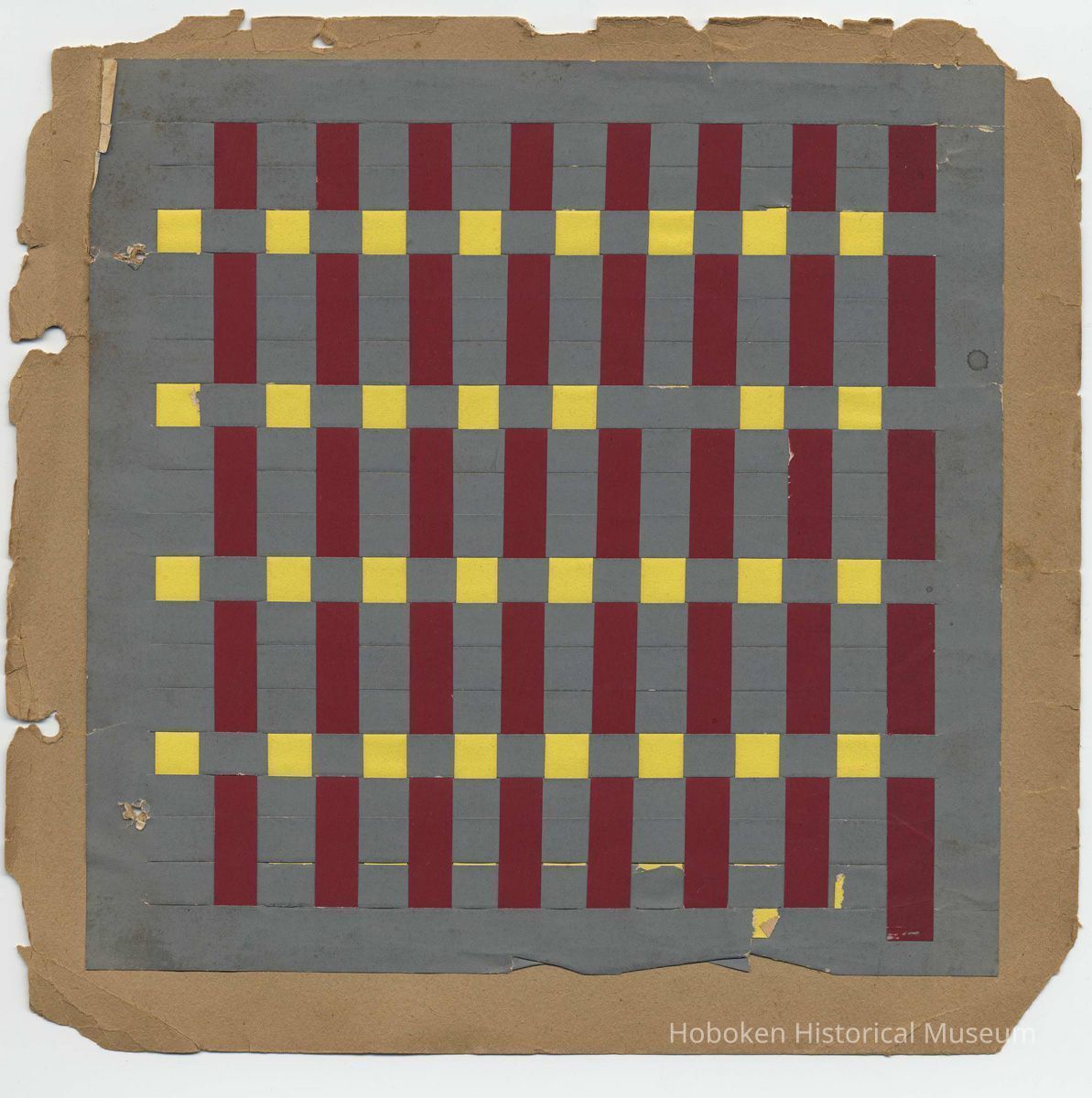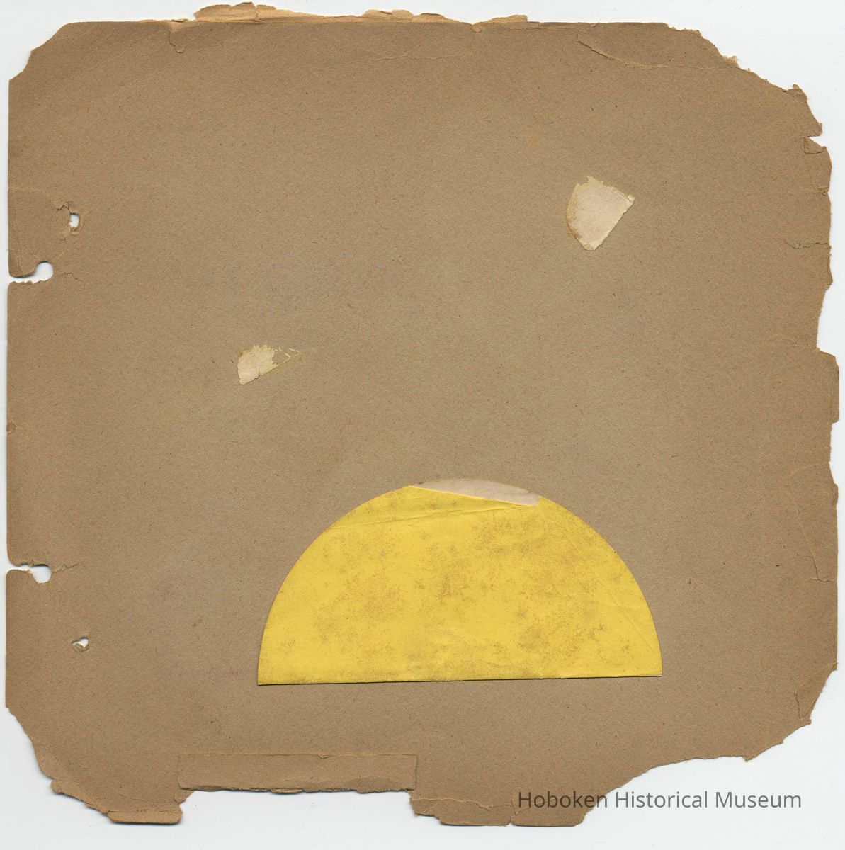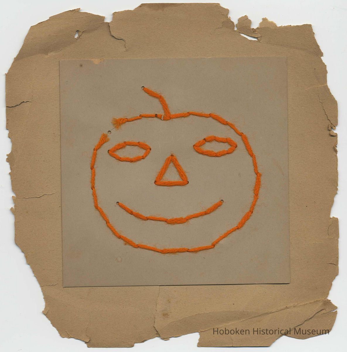 Twelve leaves (plus front cover), 8-1/4" high x 8" wide, with mounted examples of school work. Unbound: evidence of a former two-hole stab binding at the left margin, probably with string or yarn.