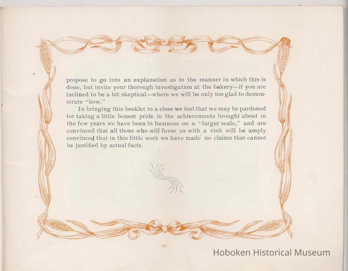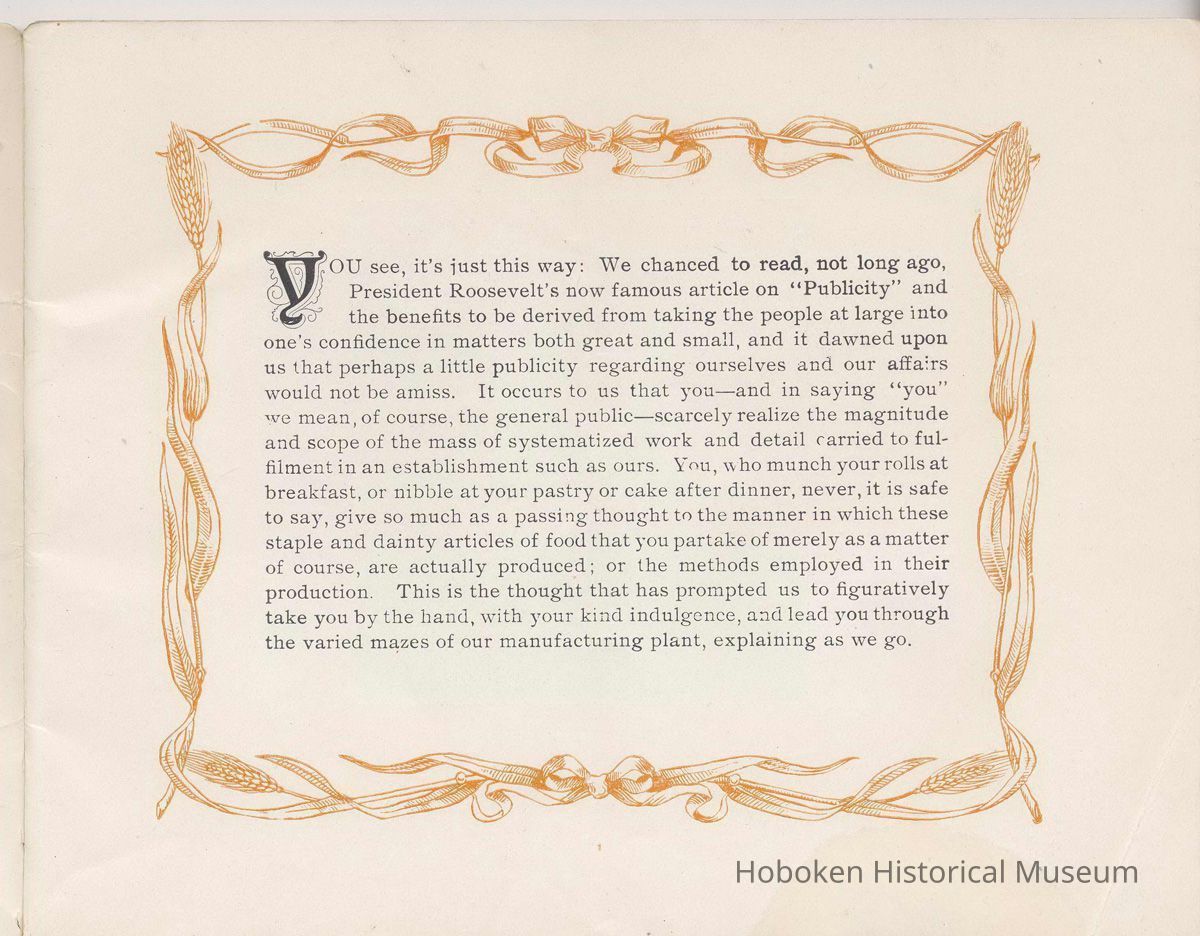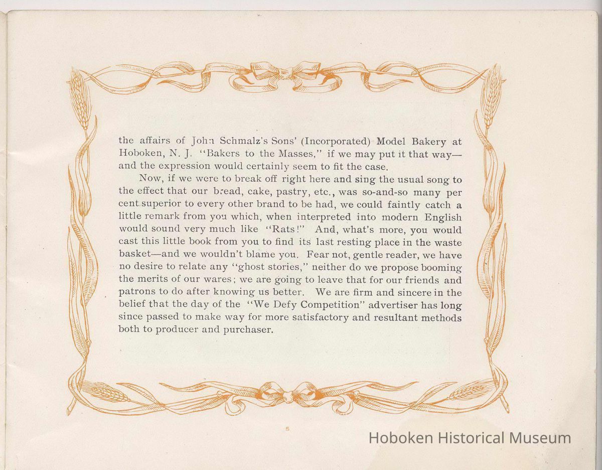 Booklet, Just A Minute, promotional publication of the John Schmalz's Sons' Model Bakery, Hoboken, no date, ca. 1901-09.