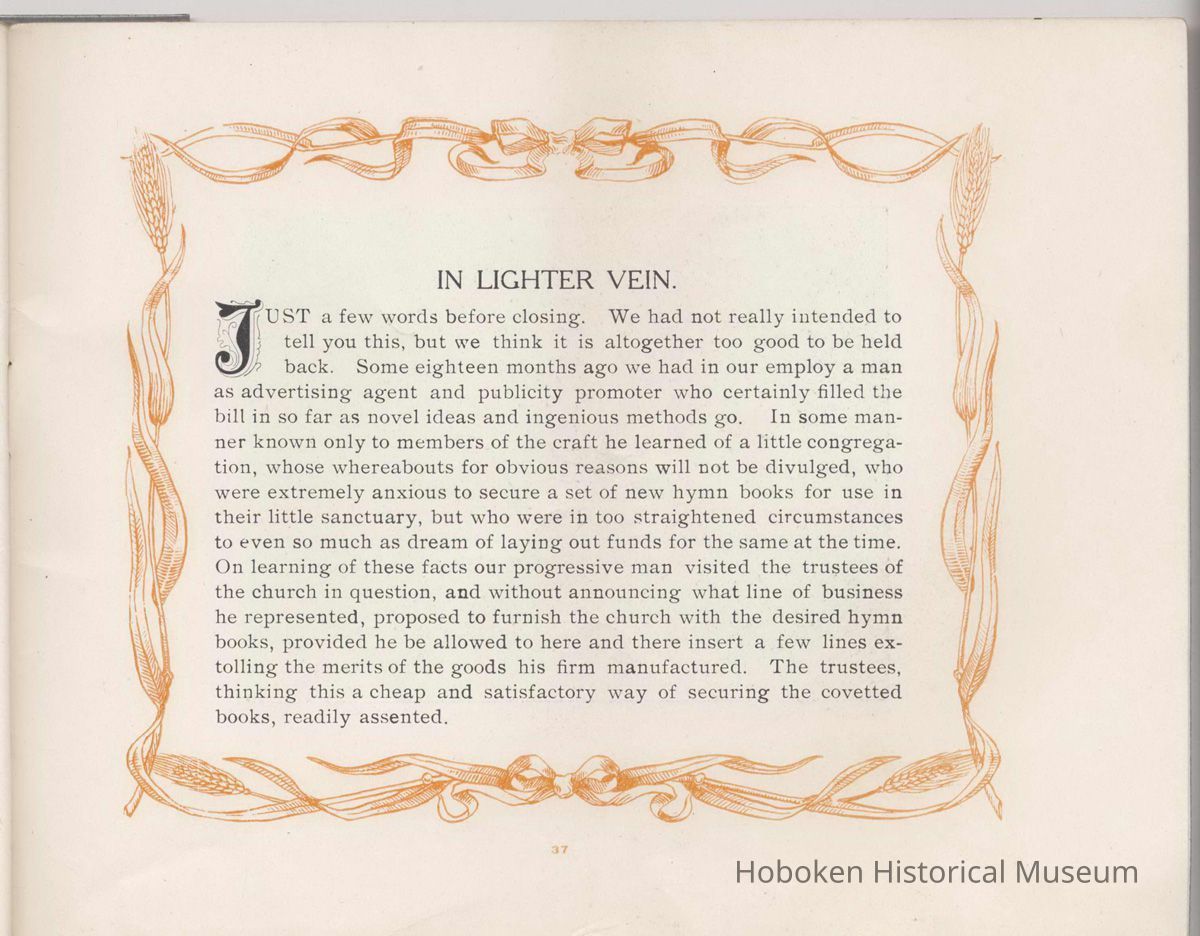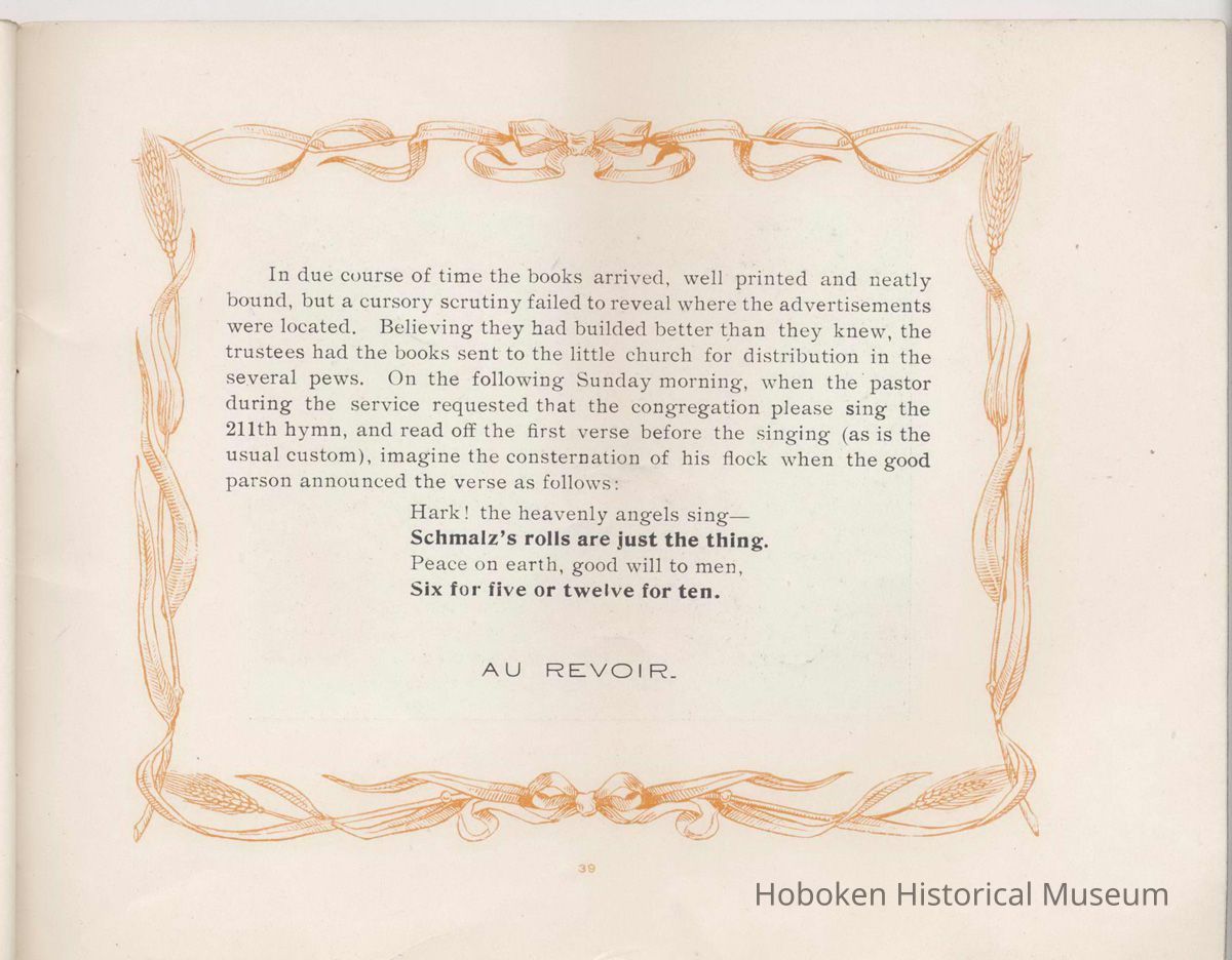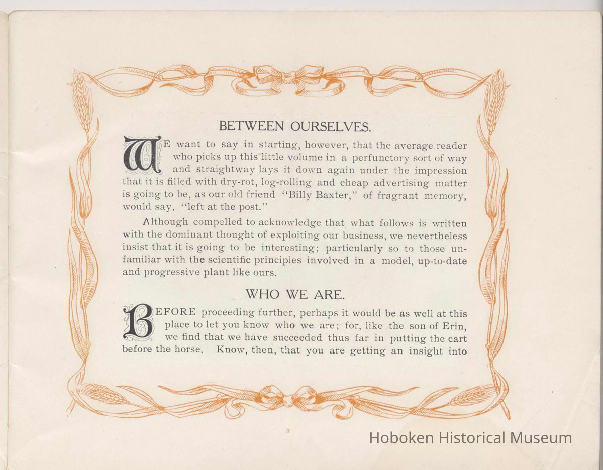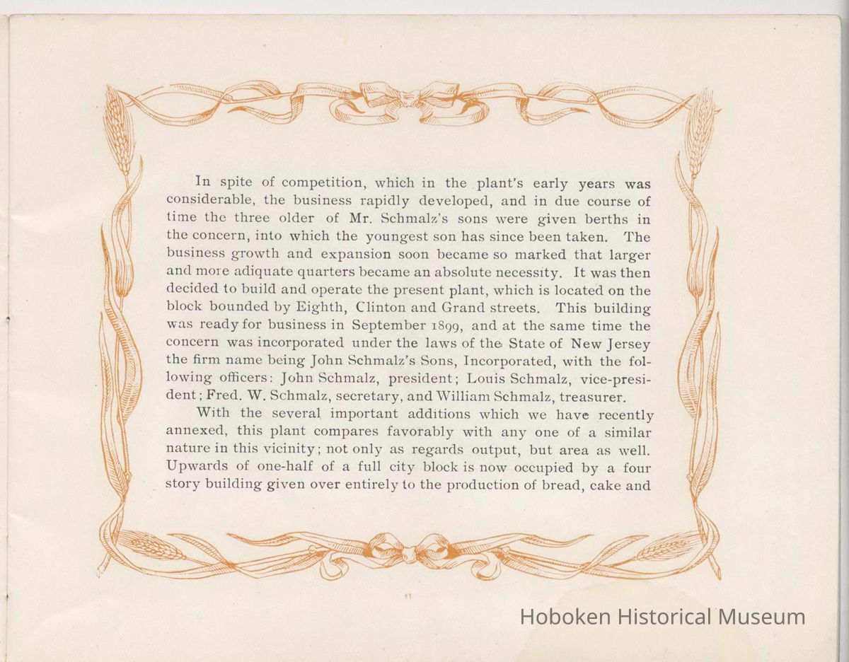 Booklet, Just A Minute, promotional publication of the John Schmalz's Sons' Model Bakery, Hoboken, no date, ca. 1901-09.