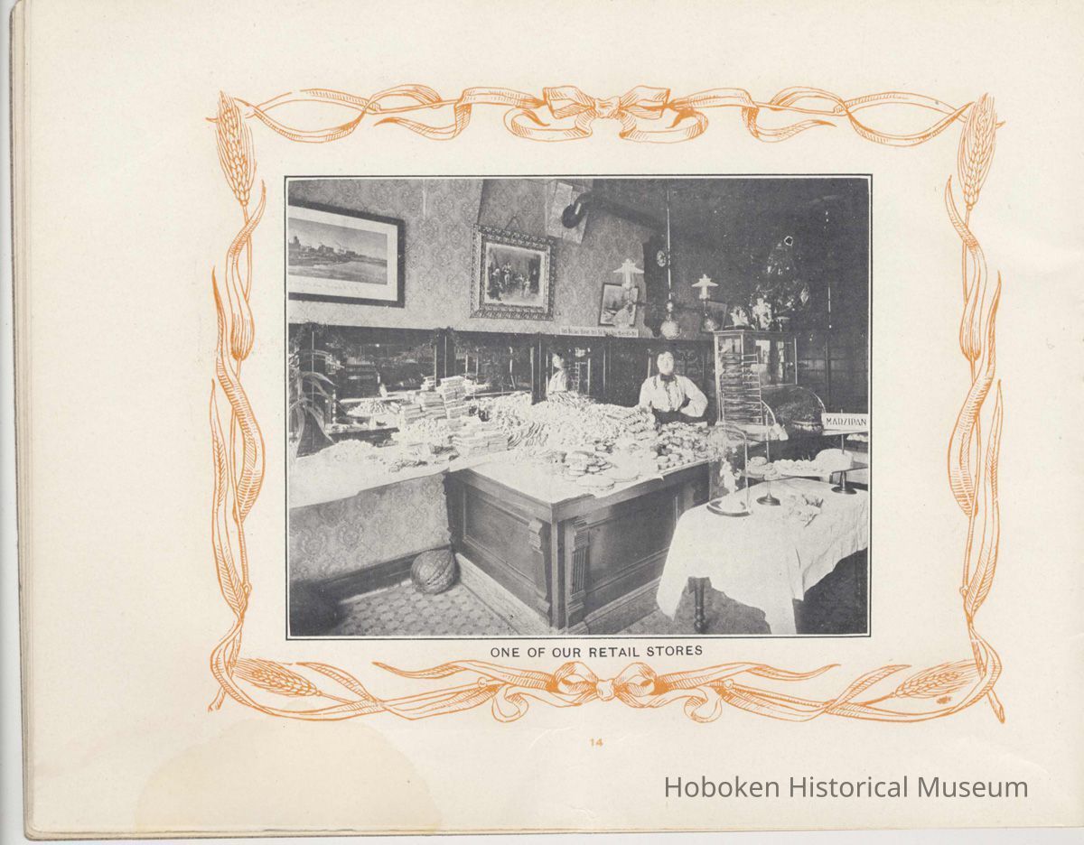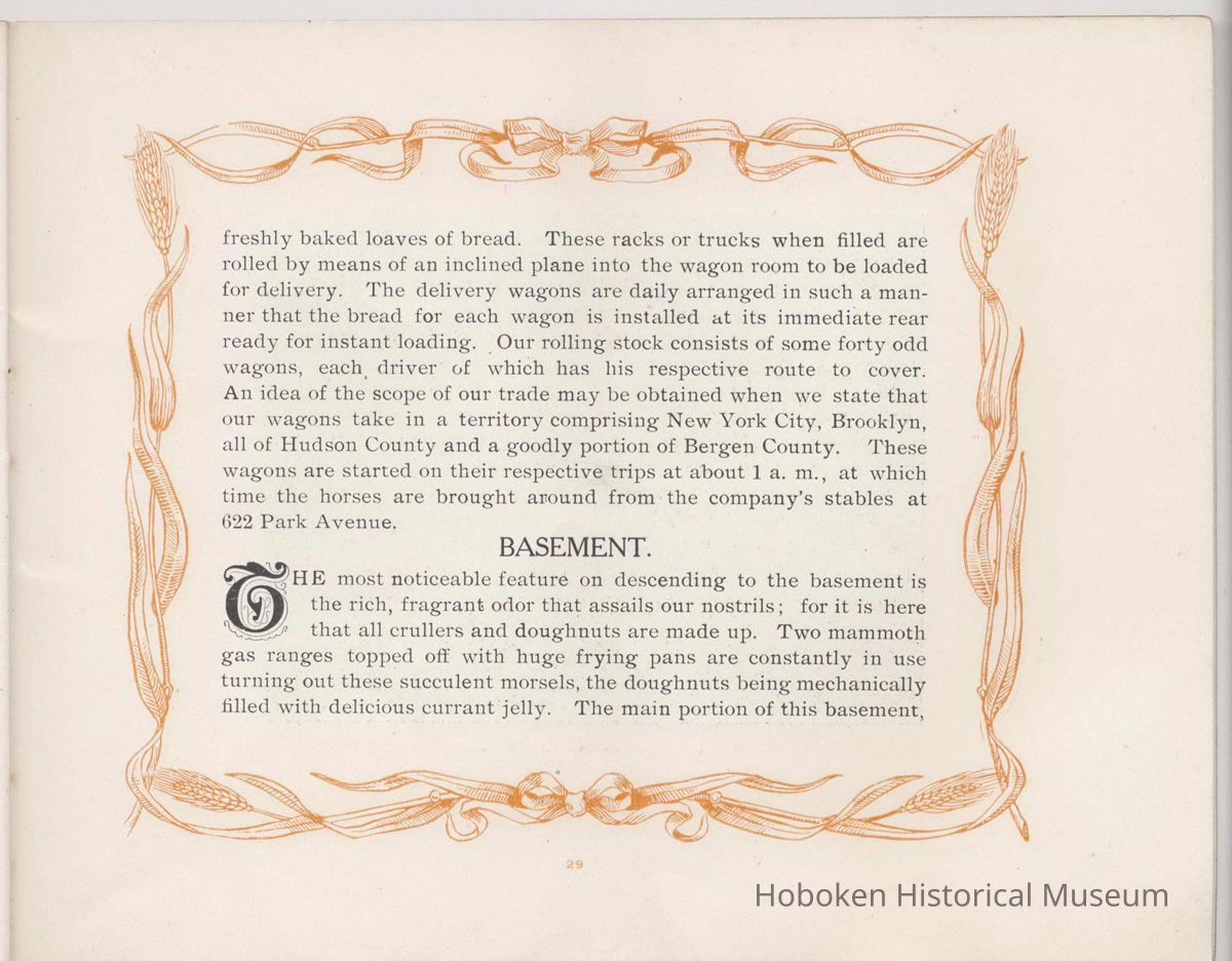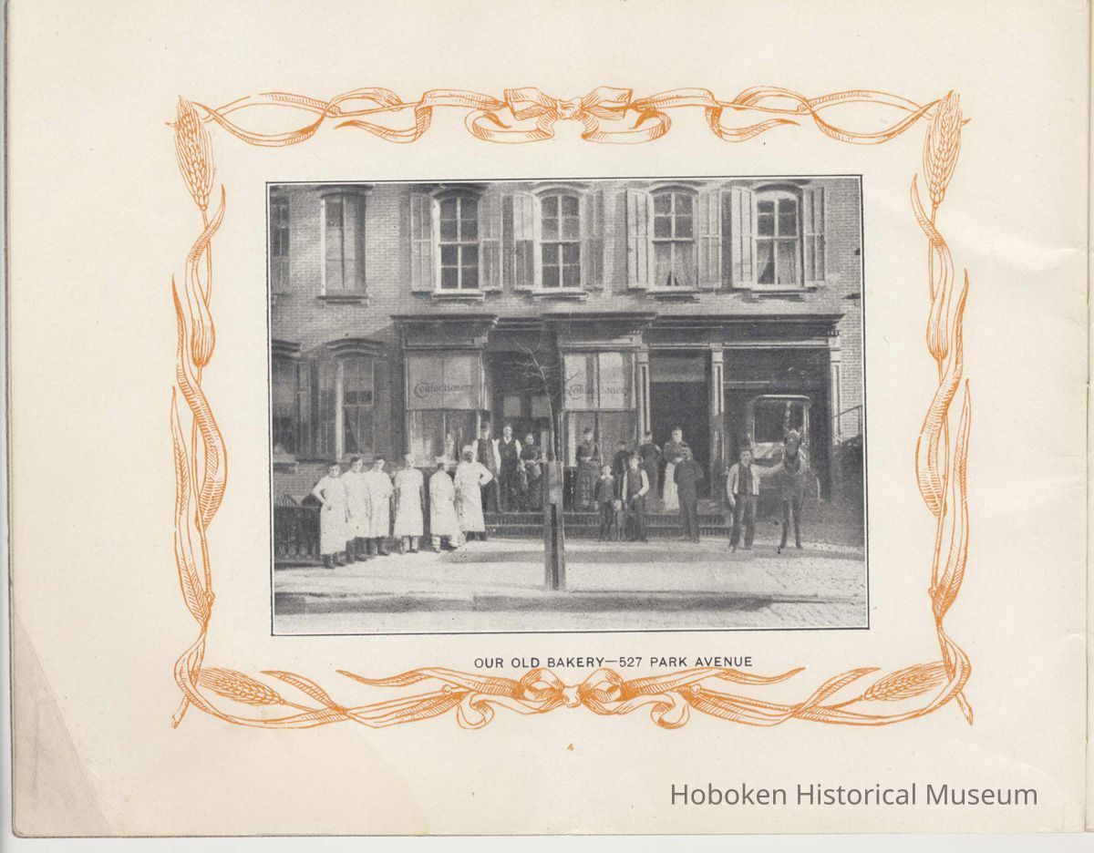 page 4: Our Old Bakery, 527 Park Avenue (exterior view of building with staff, horse carriage)