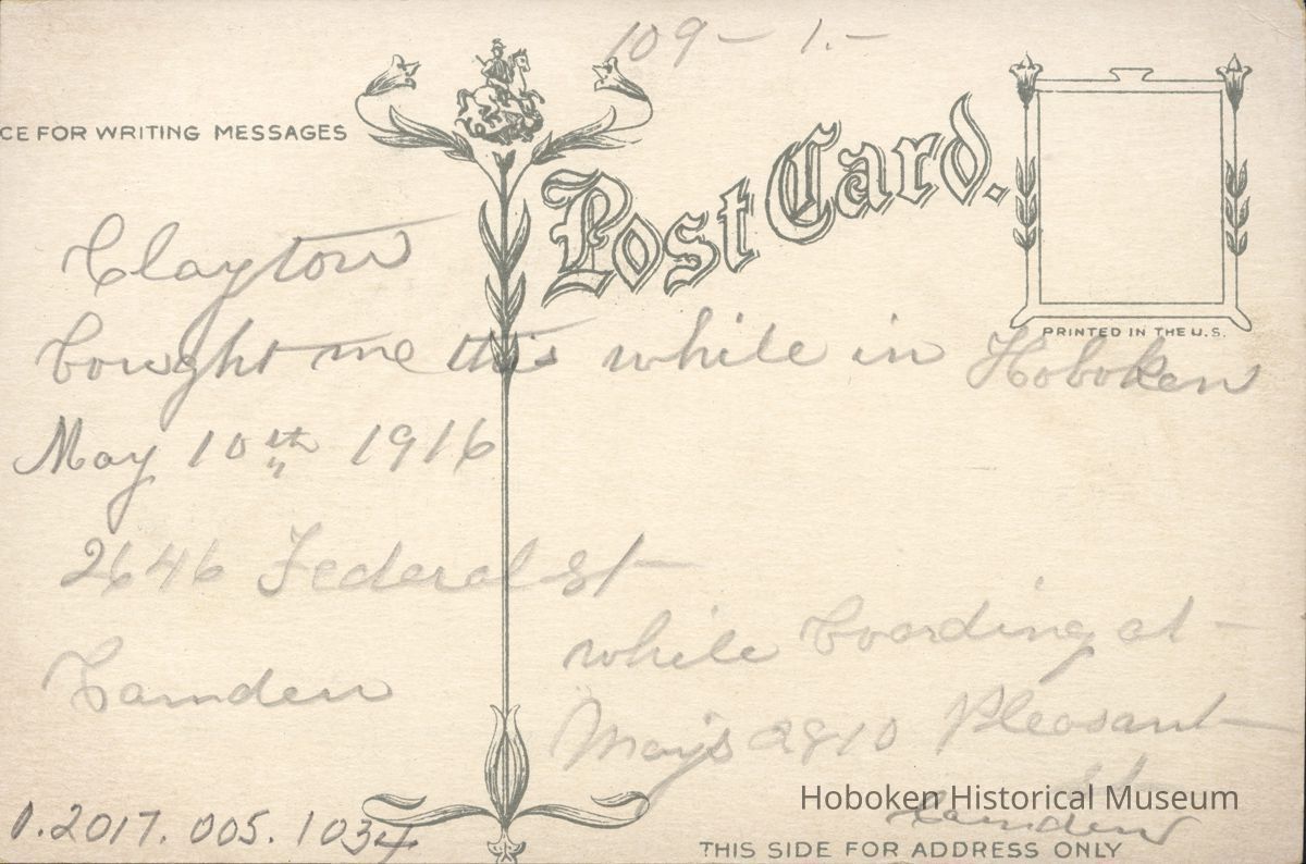 Color Postcard: Meyer's Hotel, Hoboken, NJ, 1916