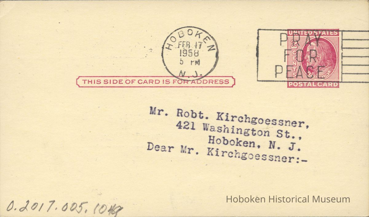 Hoboken Feb 17, 1958 5 PM N.J.