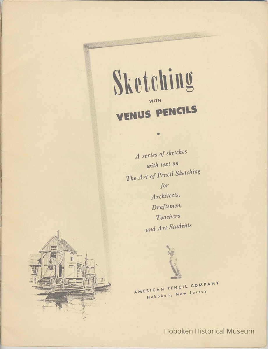 Book, Instructional: Sketching with Venus Pencils. Published by American Lead Pencil Co., Hoboken, N.J., copyright 1930. Softcover, 24 pp. plus covers, illustrated. Previous owner's name, A. A. Lang, in calligraphy at top of front cover.