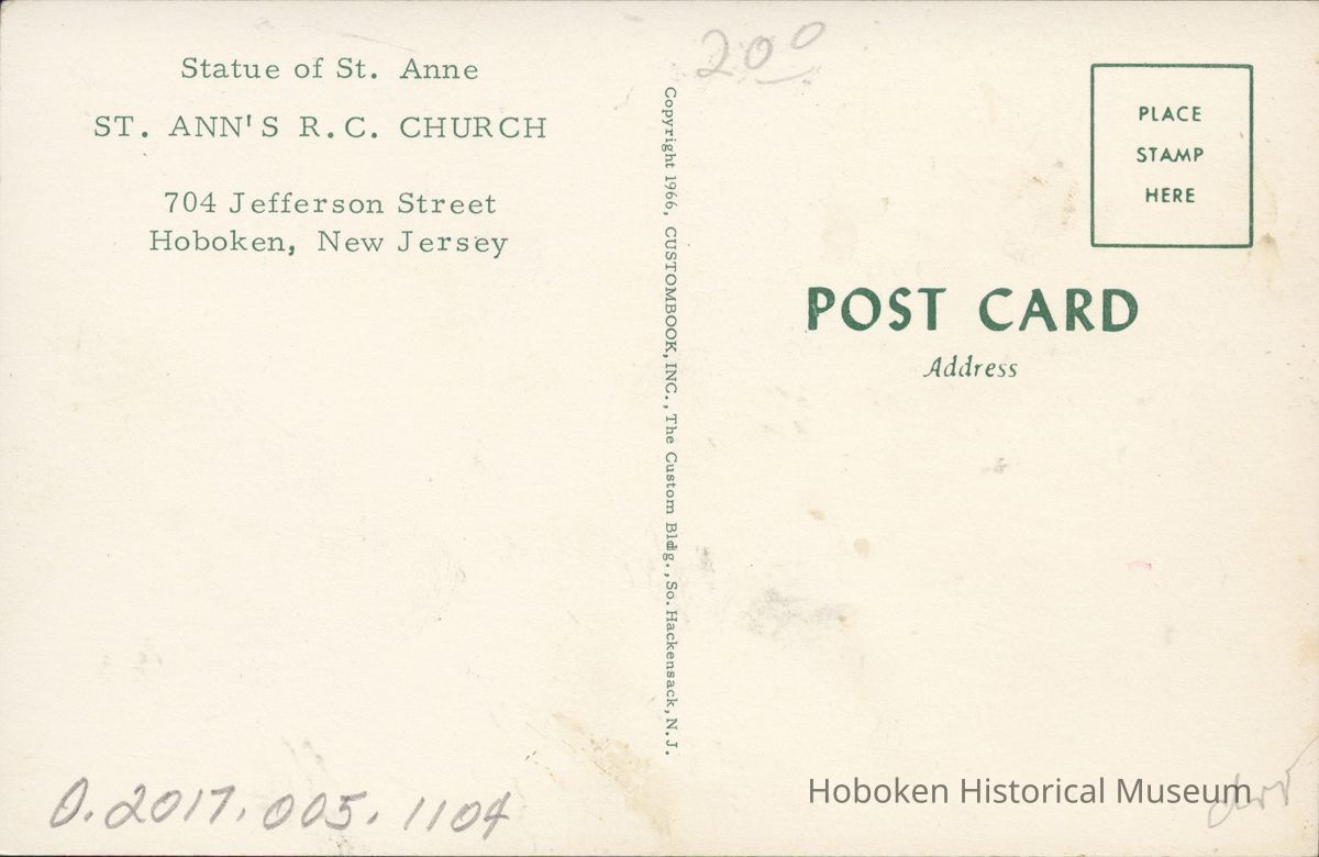 Color Postcard: Statue of St. Anne, St. Ann's R.C. Church, Hoboken, NJ
