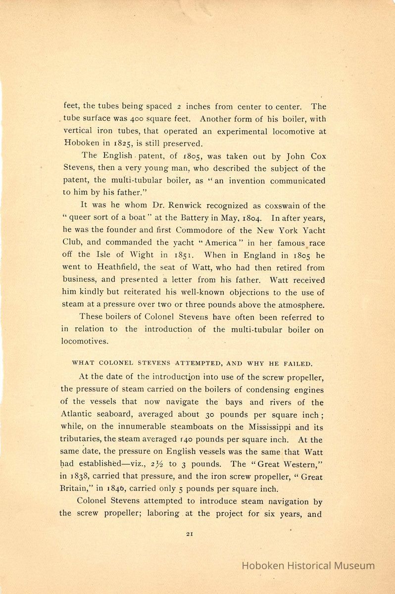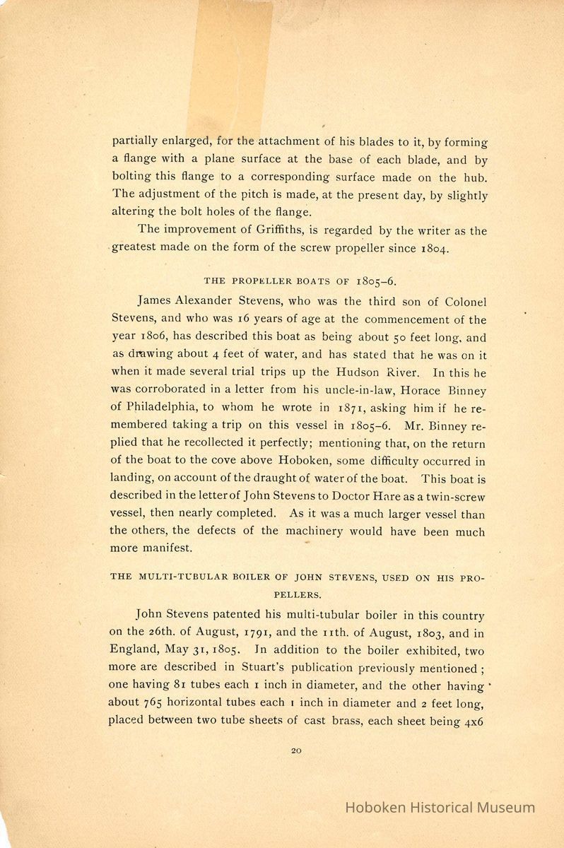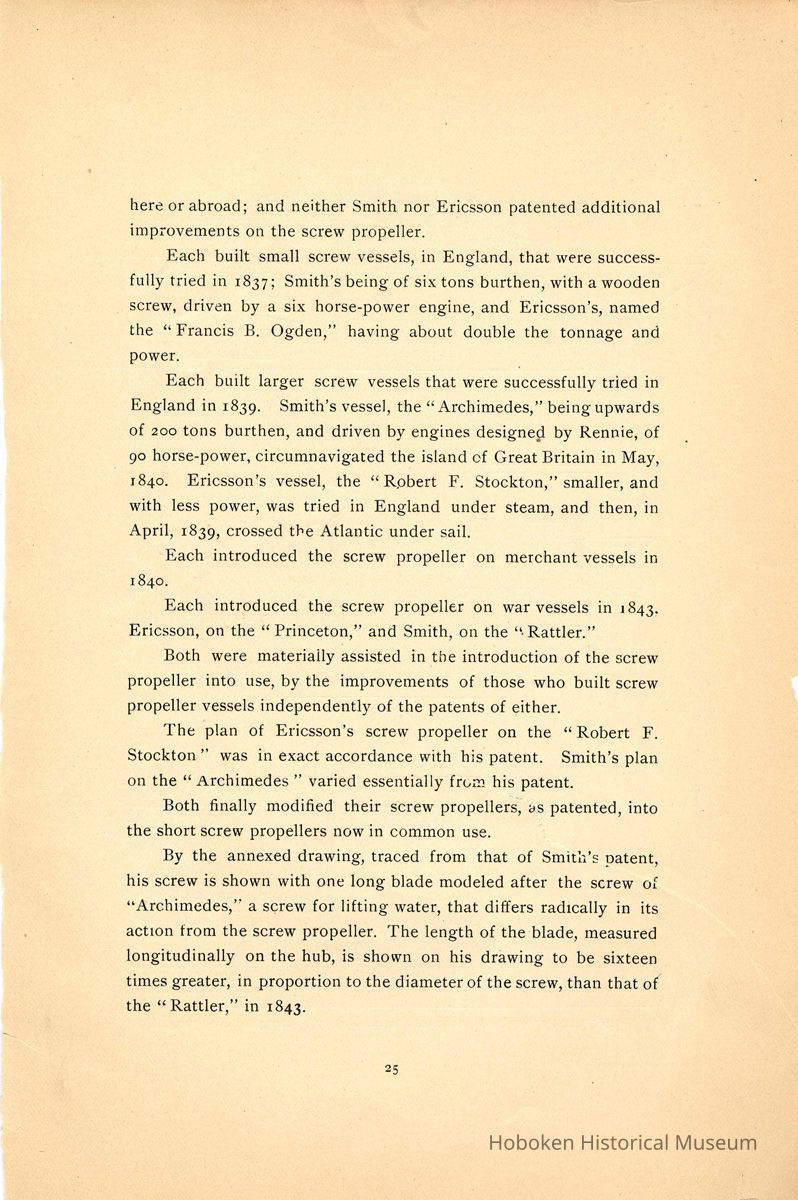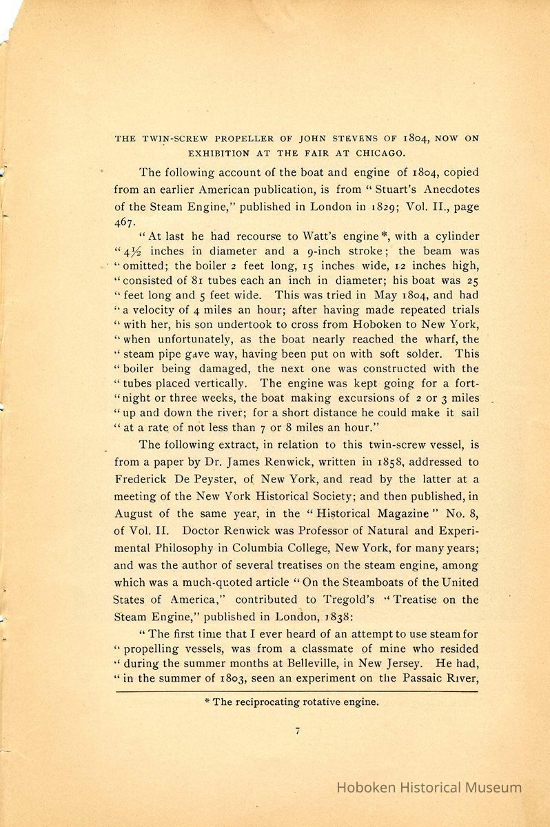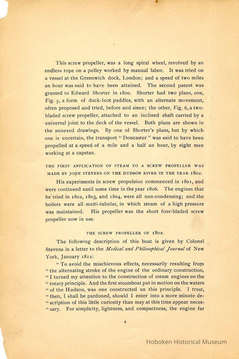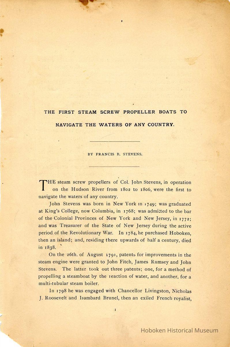 Booklet: The First Steam Screw Propeller Boats to Navigate the Waters of Any Country. By Francis B. Stevens. Reprint from The Stevens Indicator, Volume X., April, 1893.