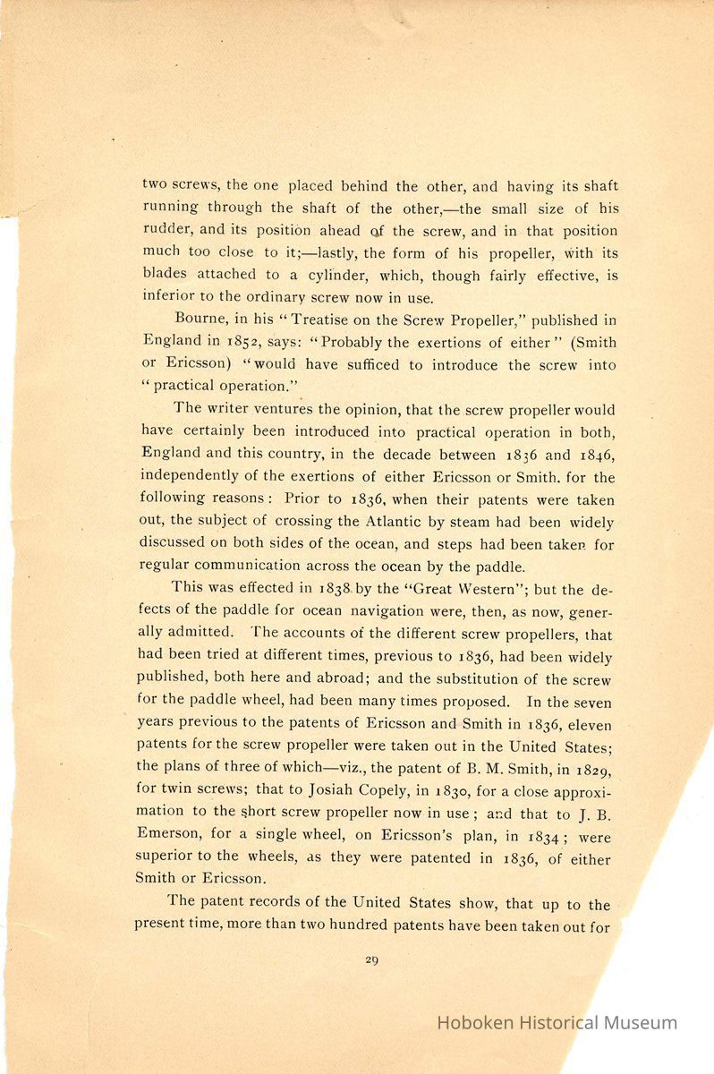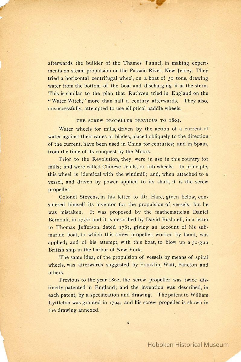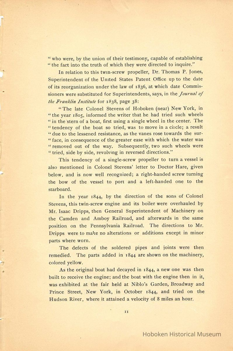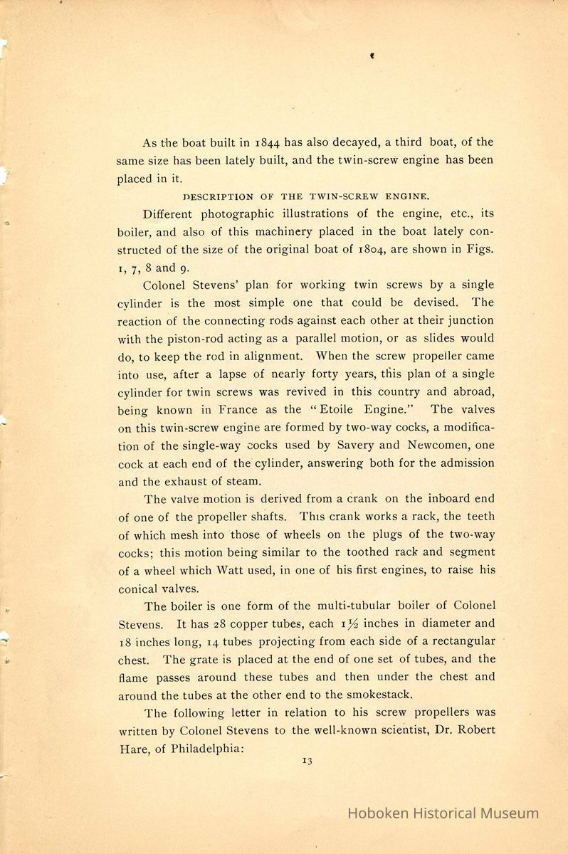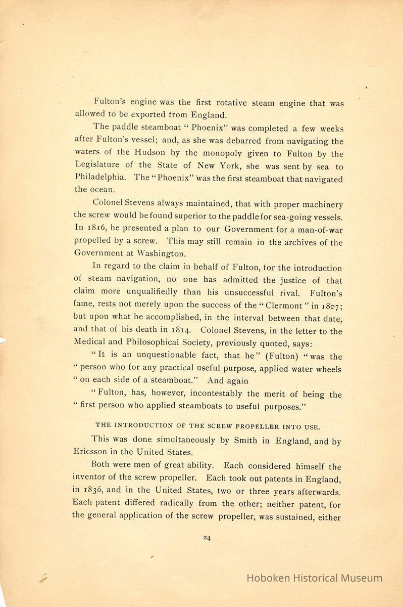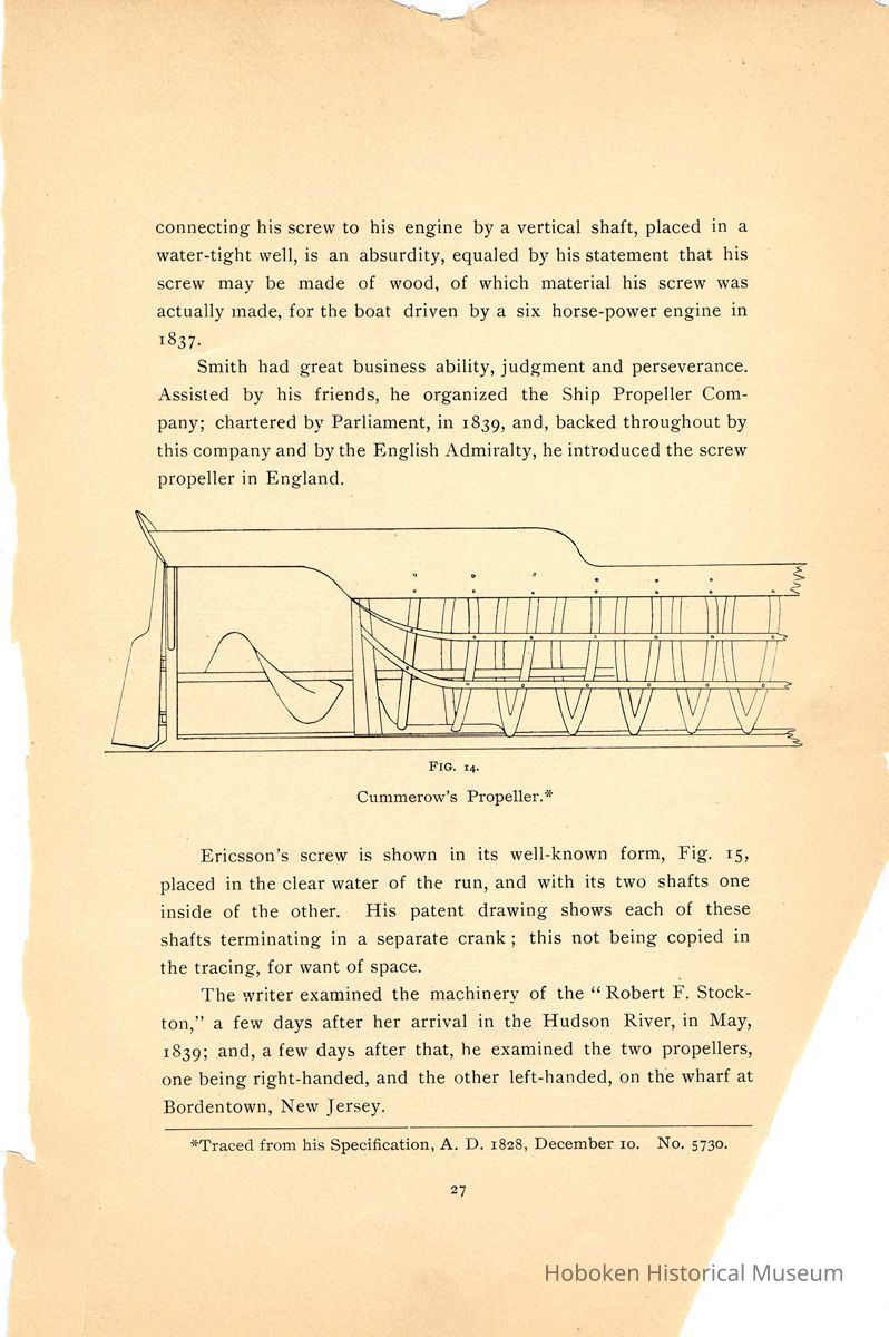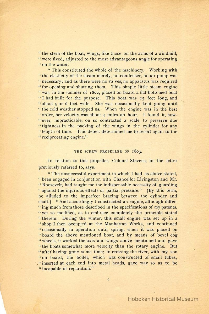 Booklet: The First Steam Screw Propeller Boats to Navigate the Waters of Any Country. By Francis B. Stevens. Reprint from The Stevens Indicator, Volume X., April, 1893.