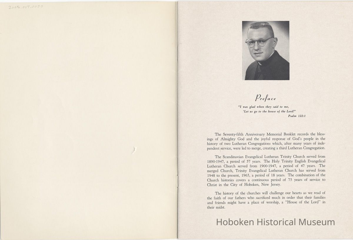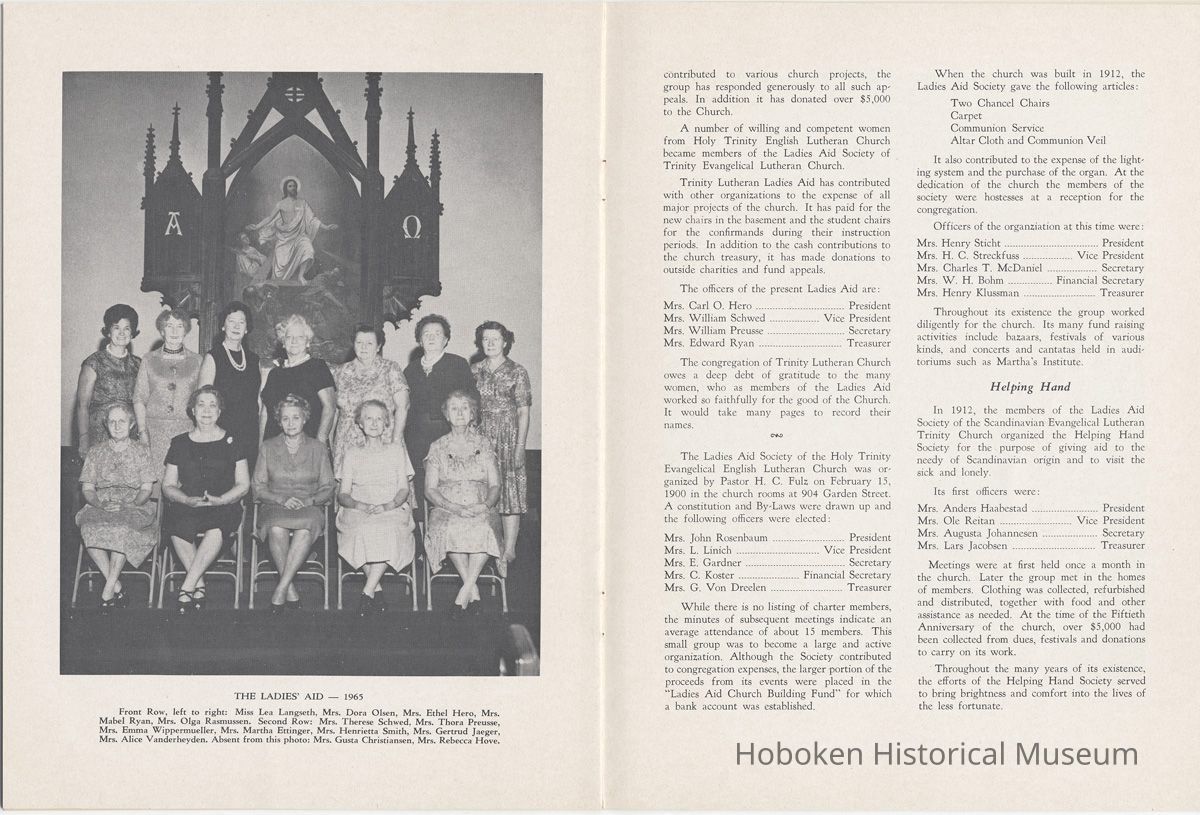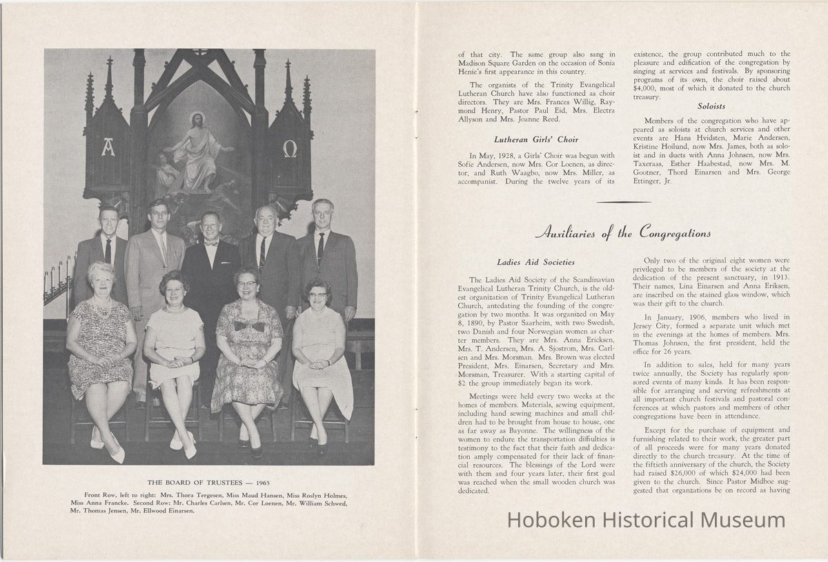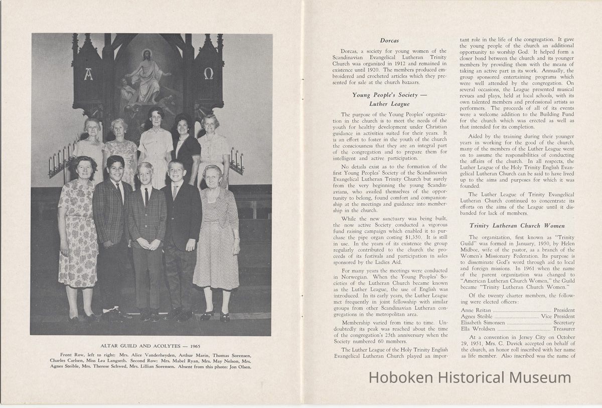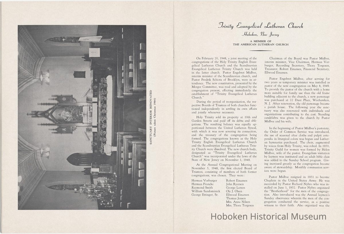 Booklet: Seventy-fifth Anniversary Memorial History of Trinity Evangelical Lutheran Church, Hoboken, 1965.