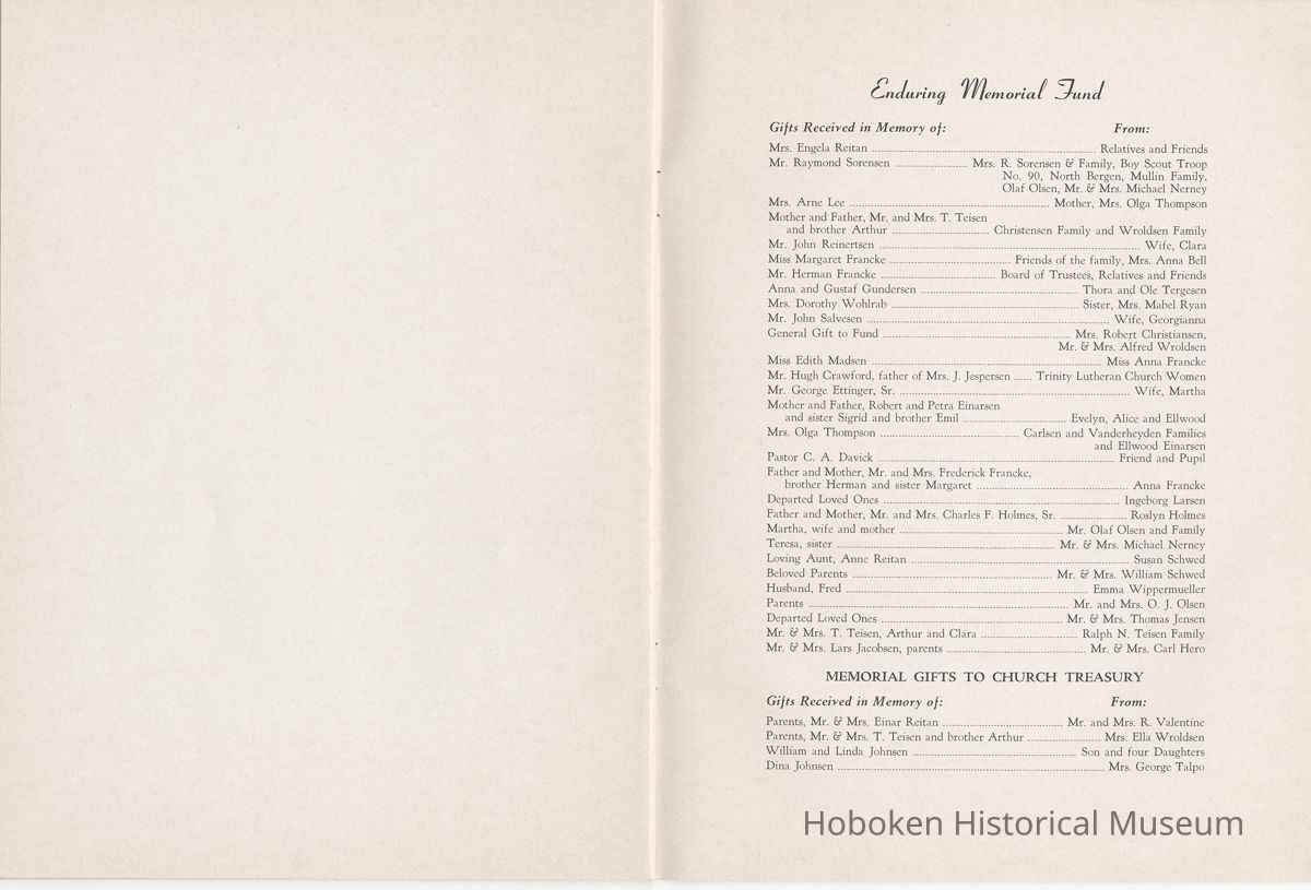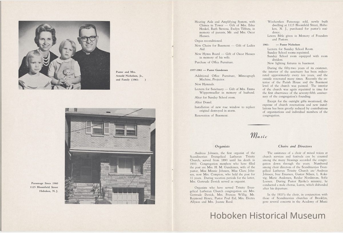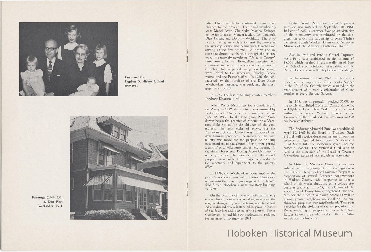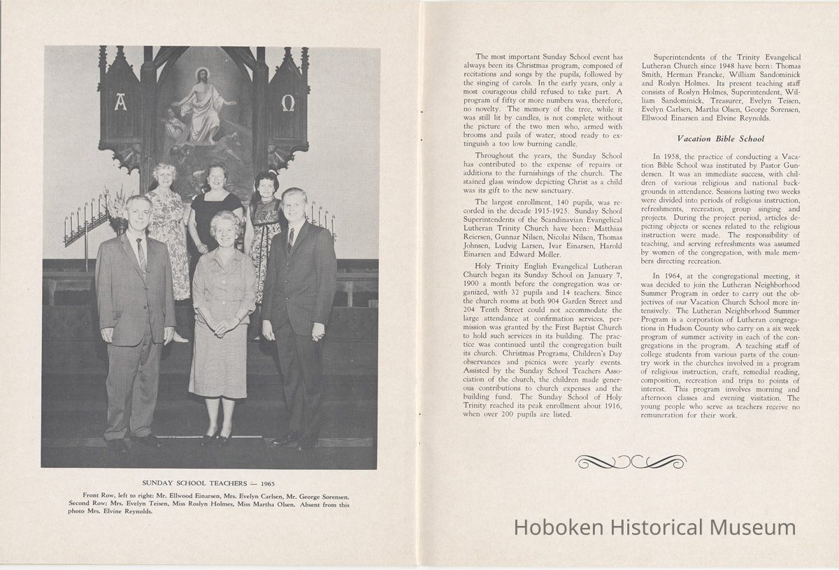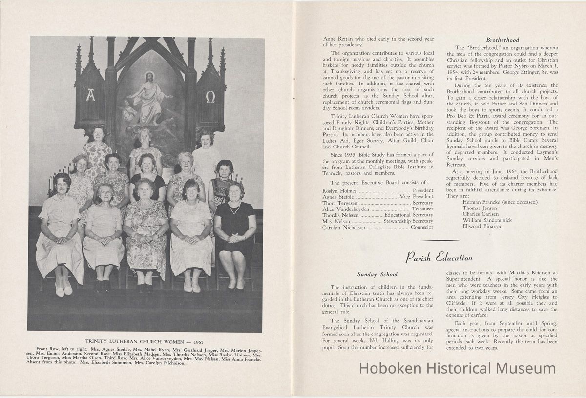 Booklet: Seventy-fifth Anniversary Memorial History of Trinity Evangelical Lutheran Church, Hoboken, 1965.